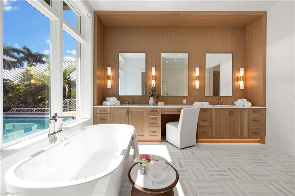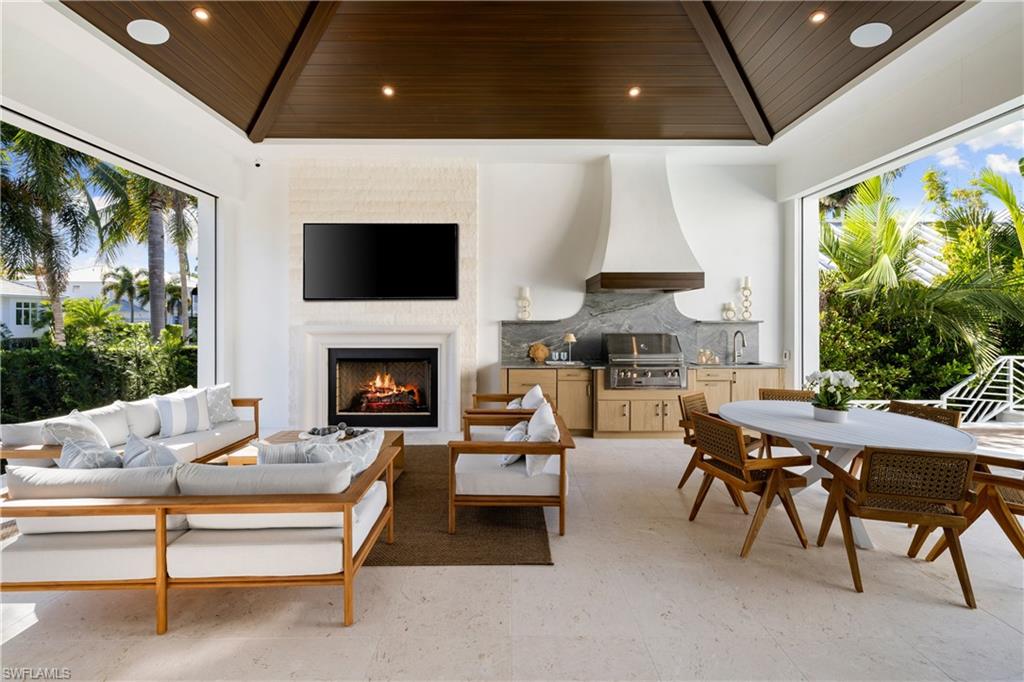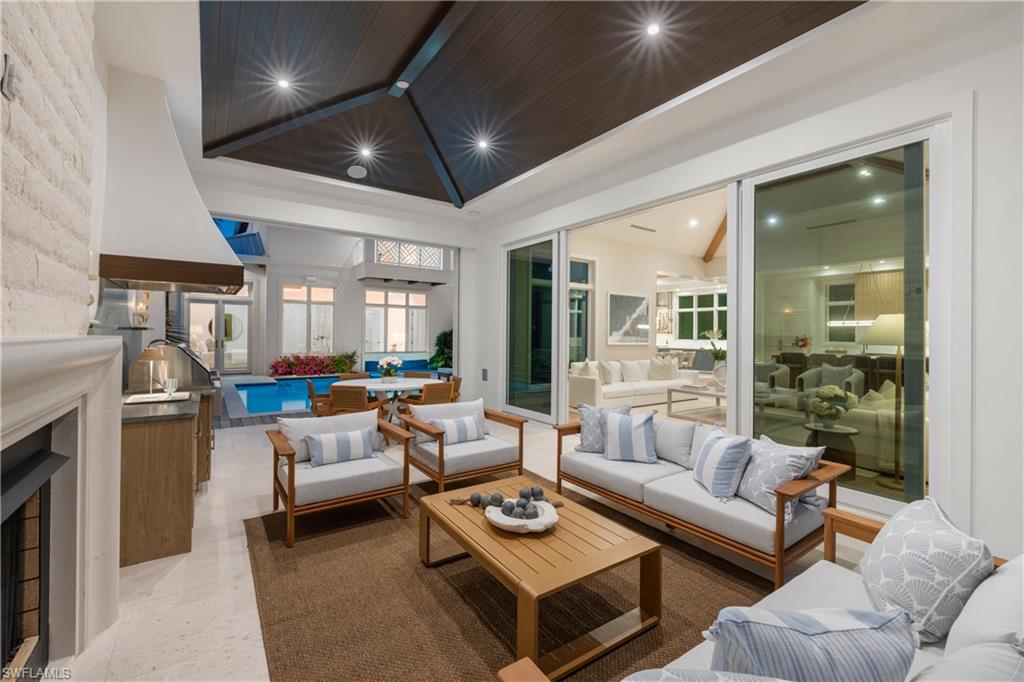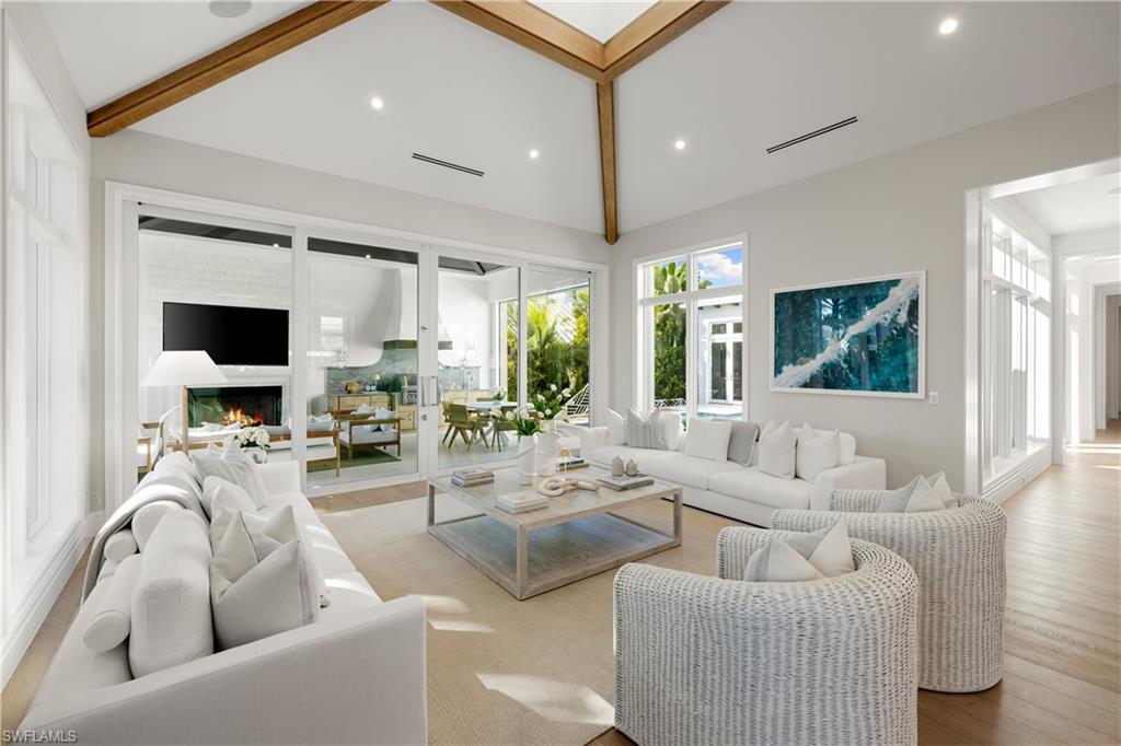The market has spoken—and this exceptional Olde Naples residence is now strategically repositioned to capture immediate attention. Just completed and ideally located steps from Third Street South’s premier shopping and dining and moments to the white-sand Gulf beaches this newly constructed masterpiece delivers an unmatched blend of luxury, design, and lifestyle. A collaboration by Kukk Architecture, T. Jerulle Construction, Freestyle Interiors, and Scott Wyndham Landscape Architecture, the home reflects a level of craftsmanship and intentionality rarely seen. Spanning over 6, 700 total square feet, the residence offers five private ensuite bedrooms, a dedicated office or den, private elevator, and a 3–6 car garage with lift capability—designed for both grand entertaining and effortless daily living. Architectural details set the tone throughout, from stained oak beams in the great room and primary suite to custom beam detailing in guest spaces. Wide-plank wood flooring with Francois & Co. herringbone inlays introduces warmth and texture, while designer lighting from Visual Comfort and Palecek creates a layered, curated ambiance. The kitchen is a true showpiece, featuring custom Goguen cabinetry, Cristallo quartzite surfaces, a Franke sink with Waterstone fixtures, and a full suite of Wolf, Sub-Zero, and Fisher & Paykel appliances—crafted for both function and statement. The primary suite offers a serene retreat with a spa-inspired bath appointed with Kallista fixtures, while a stunning dining room—complete with Ruffino cabinetry, backlit Cristallo, and Sub-Zero wine storage—sets the stage for unforgettable entertaining. A fully equipped party pantry ensures seamless hosting at any scale. Outdoor living is equally compelling. The expansive lanai features a custom fireplace, summer kitchen, dining and lounge areas, and a resort-style pool—creating a private tropical sanctuary. A refined coastal palette of sandy neutrals, soft grays, and tranquil blues flows throughout, reinforcing the home’s timeless, sophisticated aesthetic. Now offered at a newly adjusted price, this is a rare opportunity to secure a just-completed, design-forward residence in one of Naples’ most coveted locations. Repriced. Repositioned. Ready.