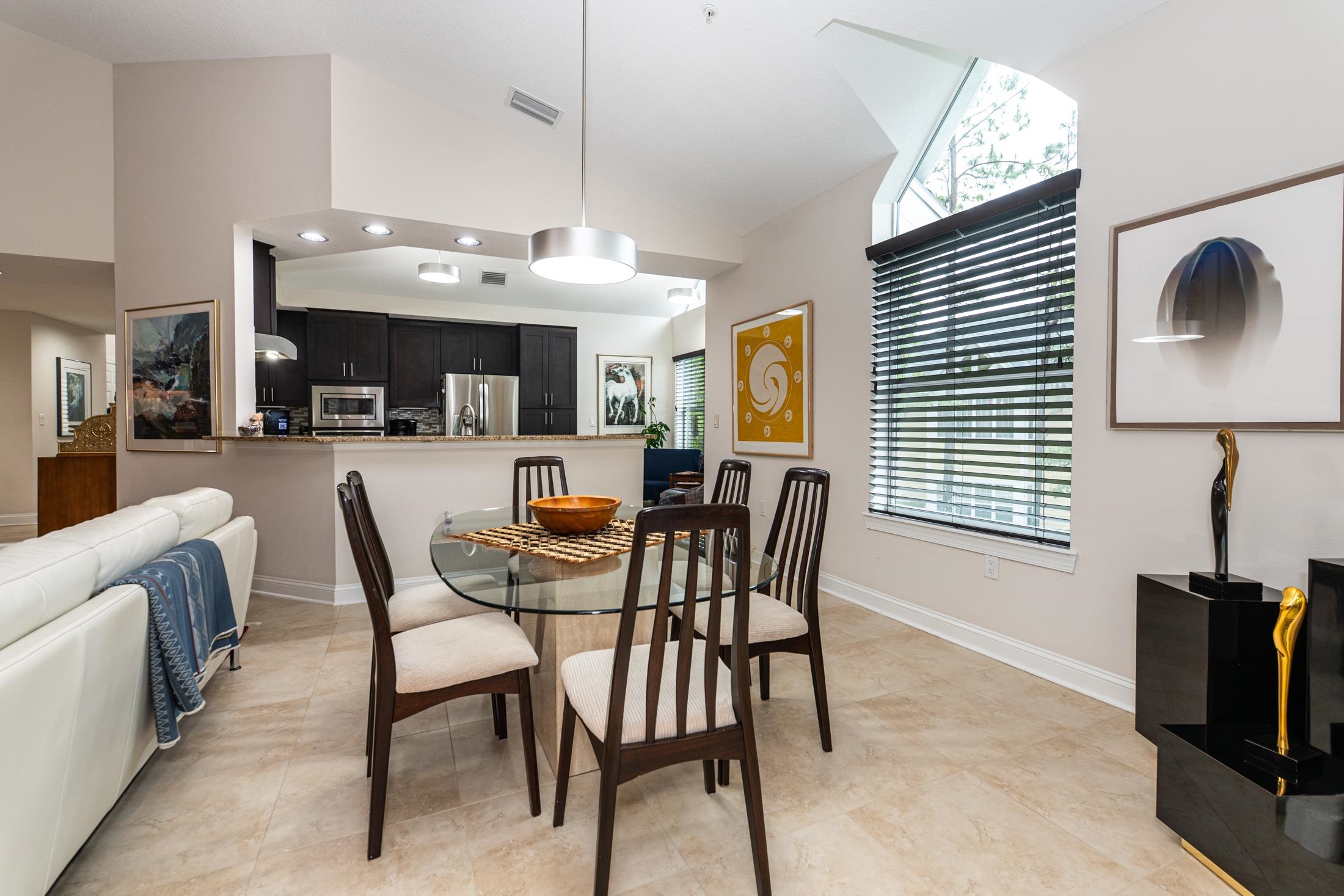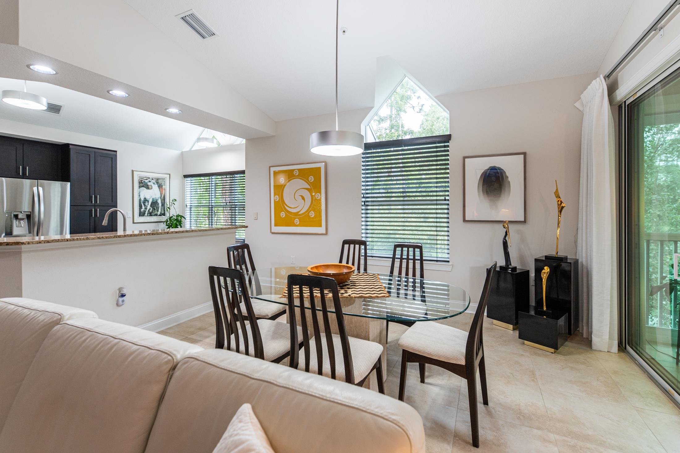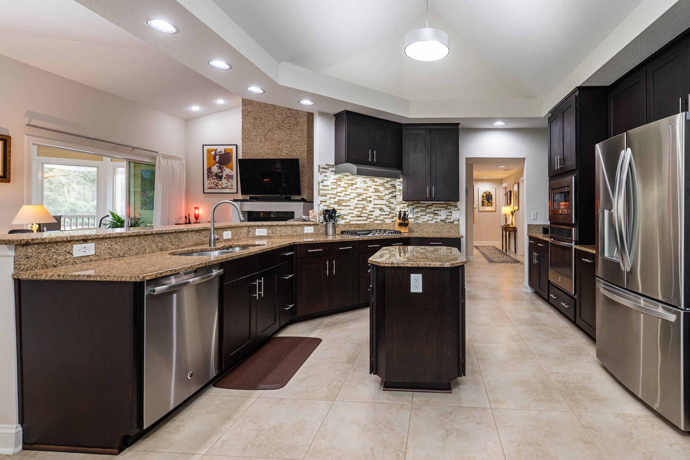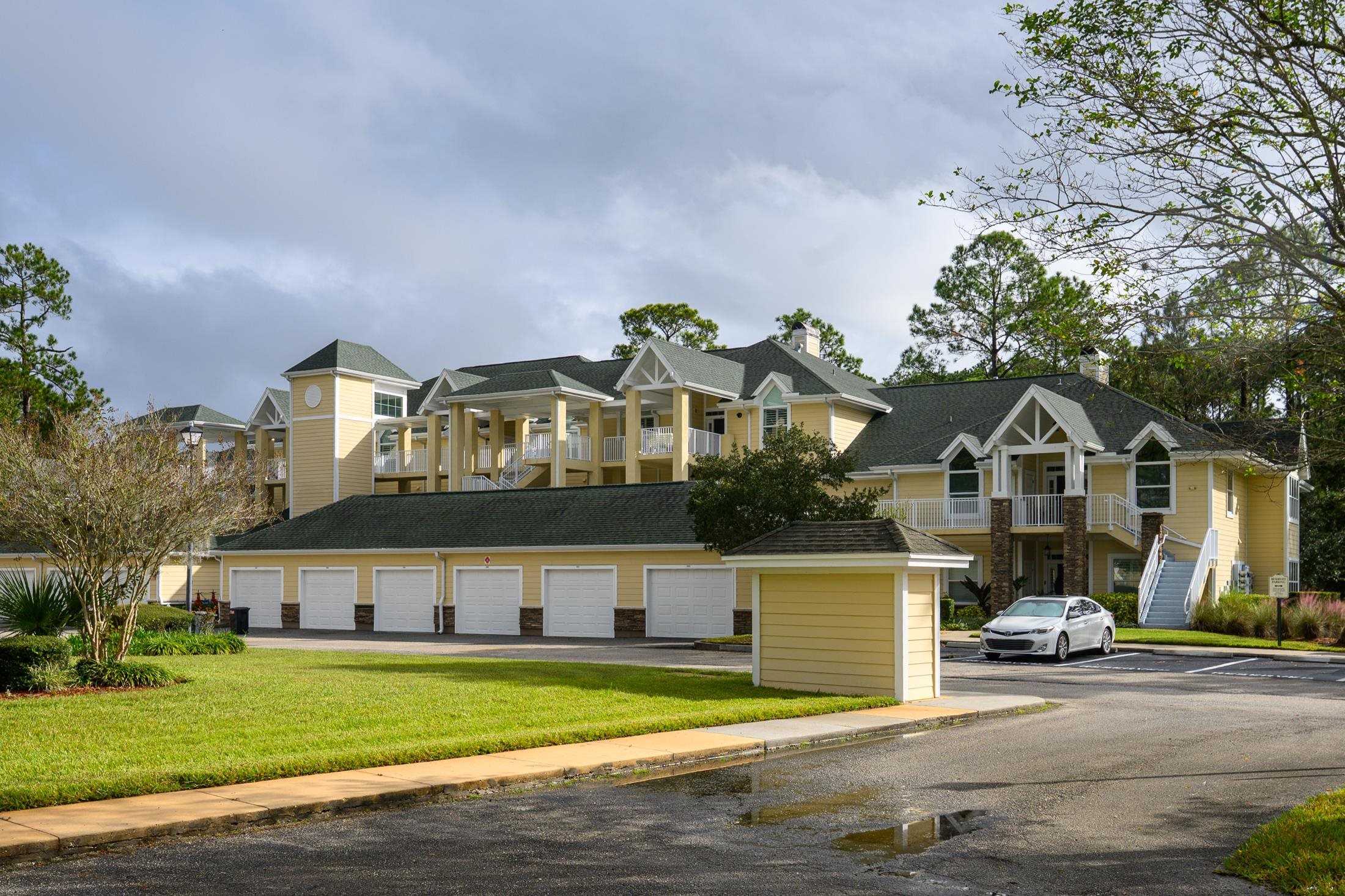 Discover luxury, comfort, and breathtaking views in this well-maintained 4BR/4BA second-floor end unit. This is the largest floorplan in the community and is located in the newest building (2017). With nearby elevator access, this spacious, light-filled flat offers an exceptional low-maintenance resort lifestyle within a gated community and access to both onsite amenities and the renowned King & Bear amenities. Enjoy magnificent golf course views from the extended all-season enclosed living area and primary bedroom balcony, plus beautiful sunset views from the front porch. The gourmet kitchen impresses with solid-surface counters, custom backsplash, and GE Profile appliances including a gas cooktop and wall oven. A gas fireplace, ceiling fans in all bedrooms and lanai, and a tankless gas water heater enhance comfort and efficiency. The open-concept design features generous room sizes, tile flooring throughout (carpet in bedrooms), and all ensuite bedrooms, including a guest suite with a Kohler walk-in spa tub. The primary suite offers a spa-like setup with custom cabinetry, double vanities, and abundant counter space. Additional features include a lockable 3' x 6' storage closet, wood shutters & blinds, motorized draperies & shades, a motorized screen on the primary bedroom lanai, water softener, reverse osmosis water filtration, and new washer & dryer. A private garage with epoxy floor & stem wall, built-in shelving, and a 220-volt outlet (ideal for EV charging or tools) adds unmatched convenience. Condo fee covers: water, sewer, trash, gas, pest control, termite bond, elevator, irrigation, lawn/landscape, exterior maintenance, master insurance policy, management, and reserves—offering truly effortless living. Community amenities include heated pool with bathrooms, hot tub, fitness room, clubhouse with kitchen, meeting room, and library. Owners also have access to the expansive King & Bear amenities. Nearby points of interest include top-rated schools, shopping, restaurants, serene nature, and world-class golf. A rare opportunity to own this private, light-filled corner unit residence with unmatched views and amenities—resort living at its finest.