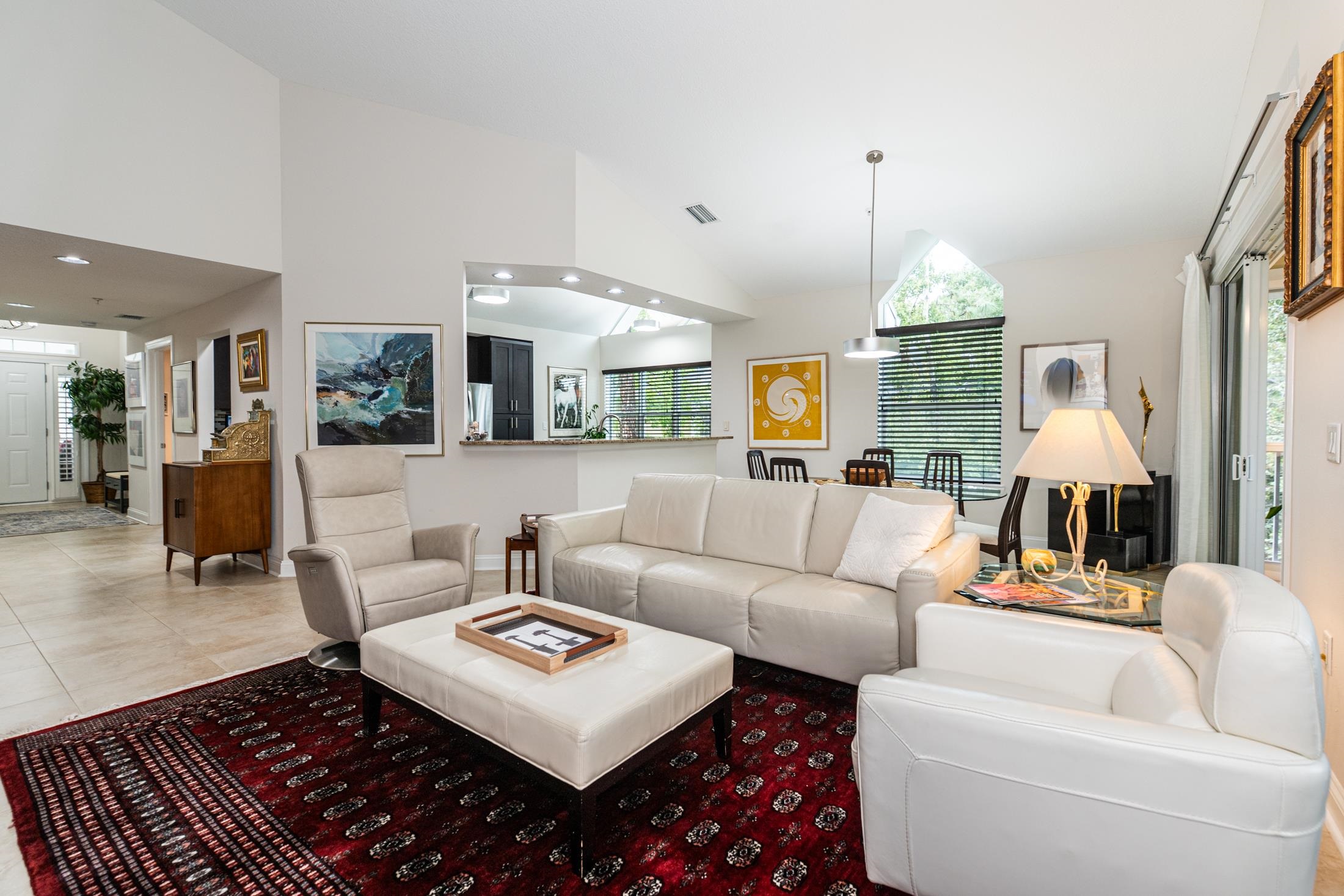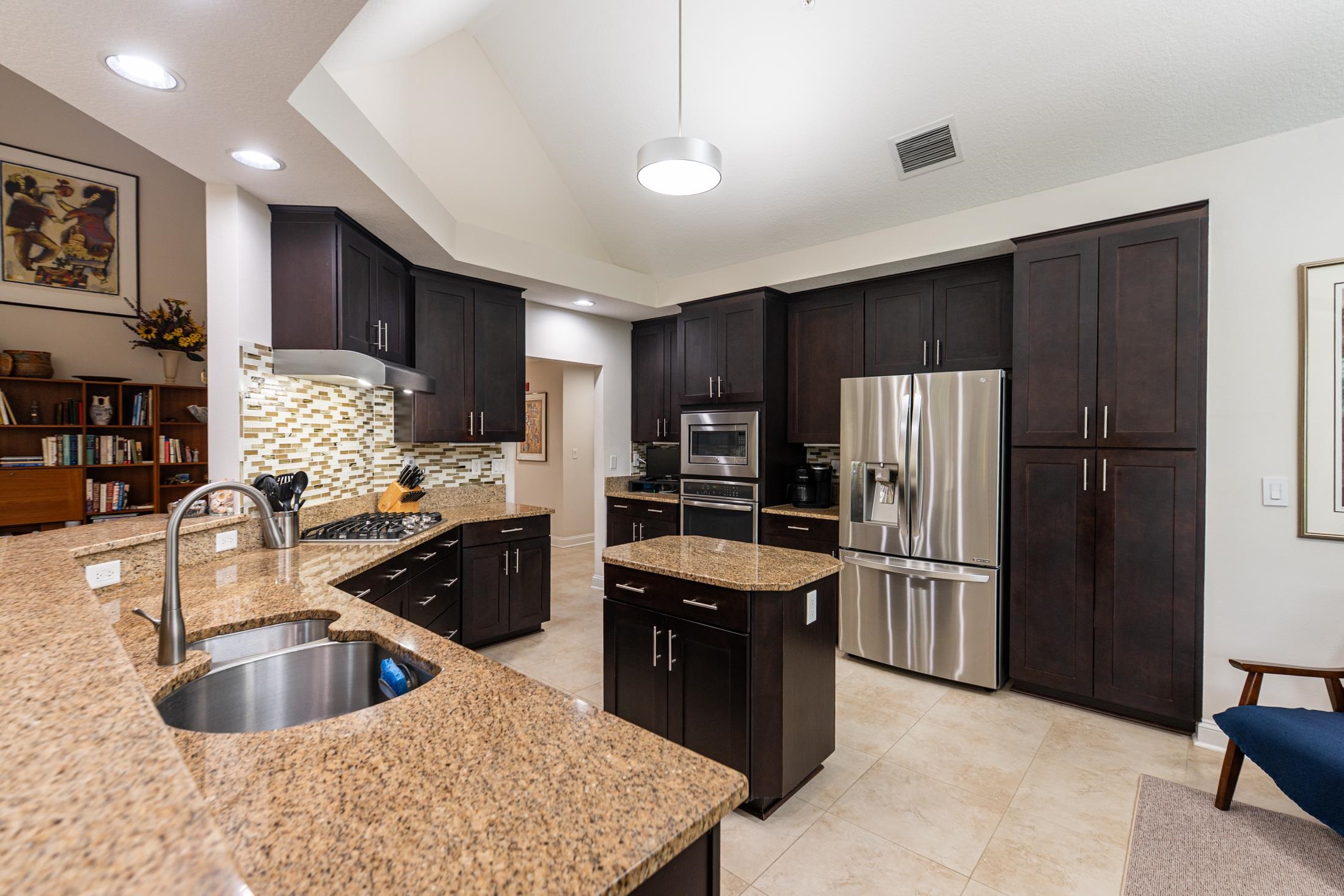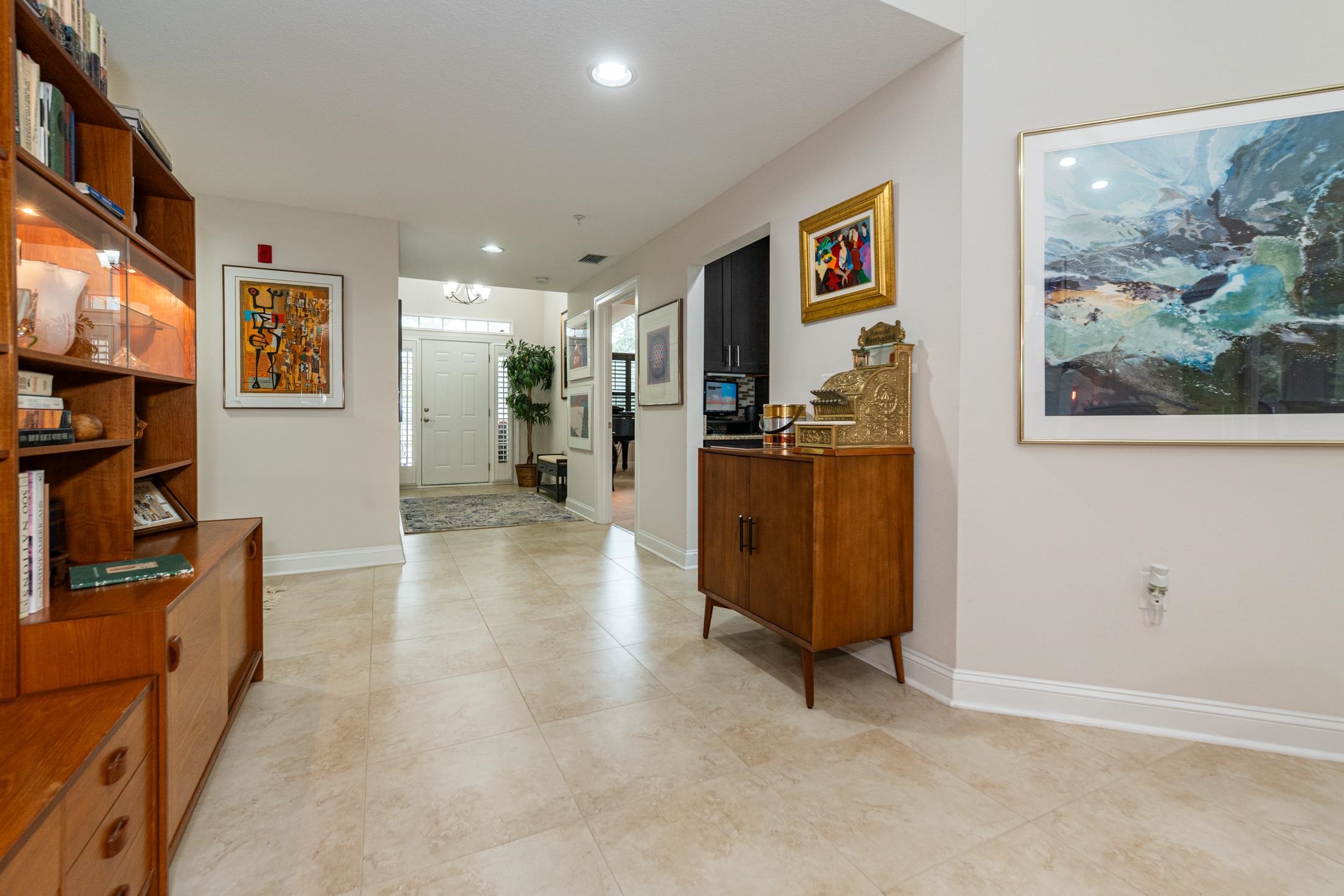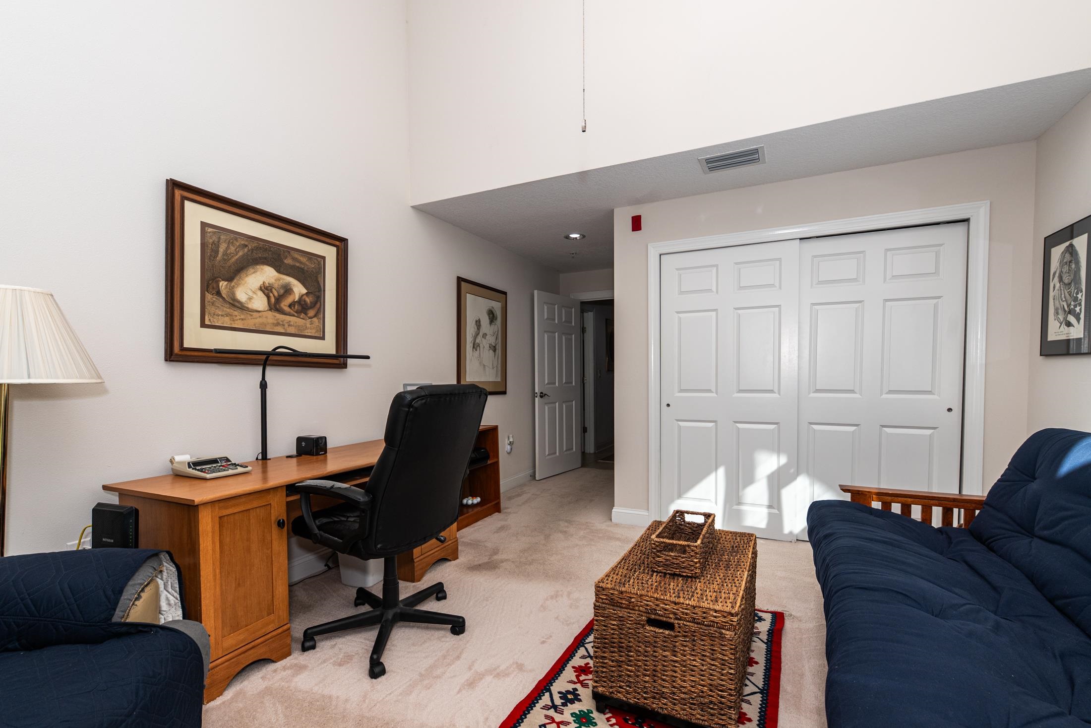 Discover luxury, comfort, and breathtaking views in this well-maintained 4BR/4BA second-floor end unit. This is the largest floorplan in the community and is located in the newest building (2017). With nearby elevator access, this spacious, light-filled flat offers an exceptional low-maintenance resort lifestyle within a gated community and access to both onsite amenities and the renowned King & Bear amenities. Enjoy magnificent golf course views from the extended all-season enclosed living area and primary bedroom balcony, plus beautiful sunset views from the front porch. The gourmet kitchen impresses with solid-surface counters, custom backsplash, and GE Profile appliances including a gas cooktop and wall oven. A gas fireplace, ceiling fans in all bedrooms and lanai, and a tankless gas water heater enhance comfort and efficiency. The open-concept design features generous room sizes, tile flooring throughout (carpet in bedrooms), and all ensuite bedrooms, including a guest suite with a Kohler walk-in spa tub. The primary suite offers a spa-like setup with custom cabinetry, double vanities, and abundant counter space. Additional features include a lockable 3' x 6' storage closet, wood shutters & blinds, motorized draperies & shades, a motorized screen on the primary bedroom lanai, water softener, reverse osmosis water filtration, and new washer & dryer. A private garage with epoxy floor & stem wall, built-in shelving, and a 220-volt outlet (ideal for EV charging or tools) adds unmatched convenience. Condo fee covers: water, sewer, trash, gas, pest control, termite bond, elevator, irrigation, lawn/landscape, exterior maintenance, master insurance policy, management, and reserves—offering truly effortless living. Community amenities include heated pool with bathrooms, hot tub, fitness room, clubhouse with kitchen, meeting room, and library. Owners also have access to the expansive King & Bear amenities. Nearby points of interest include top-rated schools, shopping, restaurants, serene nature, and world-class golf. A rare opportunity to own this private, light-filled corner unit residence with unmatched views and amenities—resort living at its finest.