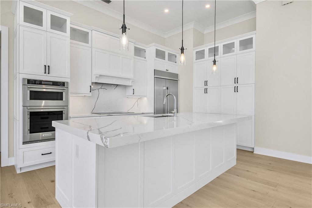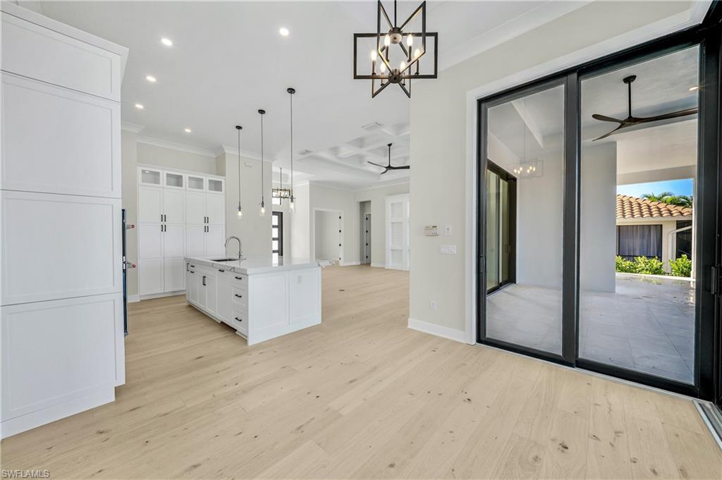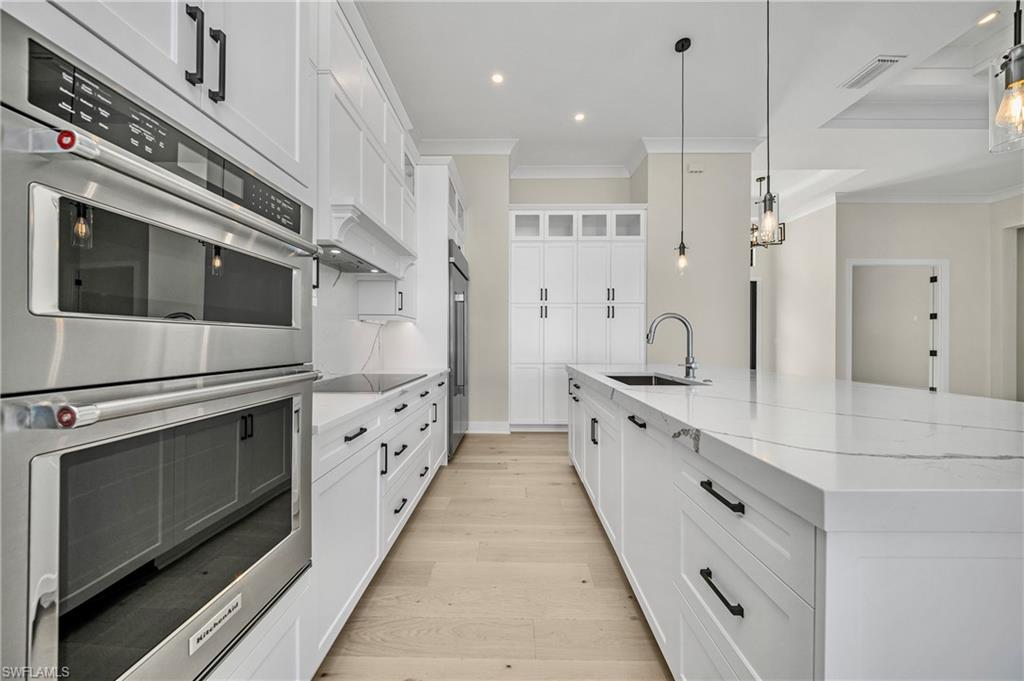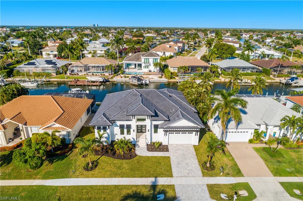 This brand new single family home is situated on a direct access 80’ X 110’ lot with a brand-new seawall. Main living (a/c) 2, 452 sqft, grand total 3, 529 sqft and pool deck 763 sqft. Upgraded front elevation with bahama shutters, lush landscaping with irrigation system and paver driveway. This home features four bedrooms, with one designated as the primary suite and the other as en suite for guests. The kitchen is a true centerpiece, featuring top-of-the-line KitchenAid commercial appliances, quartz countertops and an oversized island designed for gathering & entertaining. The primary suite is a true retreat with spa-inspired bath, walk in shower and his & her walk in closets w/ built in closet systems. Great room has 14’ ft. coffered ceiling, custom built entertainment center and 10’ ft. sliding door wall that flows seamlessly to the outdoor living space. The dining room has 10’ ft. corner sliding door wall and the study offers double glass doors and a tray ceiling with crown molding. Other features throughout the home are white oak wood flooring, 12’ ft. ceilings, 8’ ft. solid core doors, crown molding, quartz countertops, recessed lighting and high impact glass windows. Laundry room has upgraded Whirlpool washer & dryer, utility sink, vertical storage and upper & lower cabinets. Outdoor kitchen has a vented gas grill, undermount sink, two drawer refrigerator and access to pool bathroom. Saltwater pool with sun shelf & elevated spa overlooking water views with room for 60’ ft. dock. Two car garage with high ceilings and epoxy finished floor.