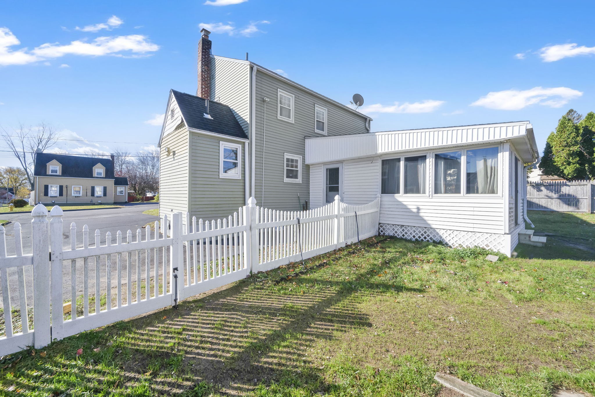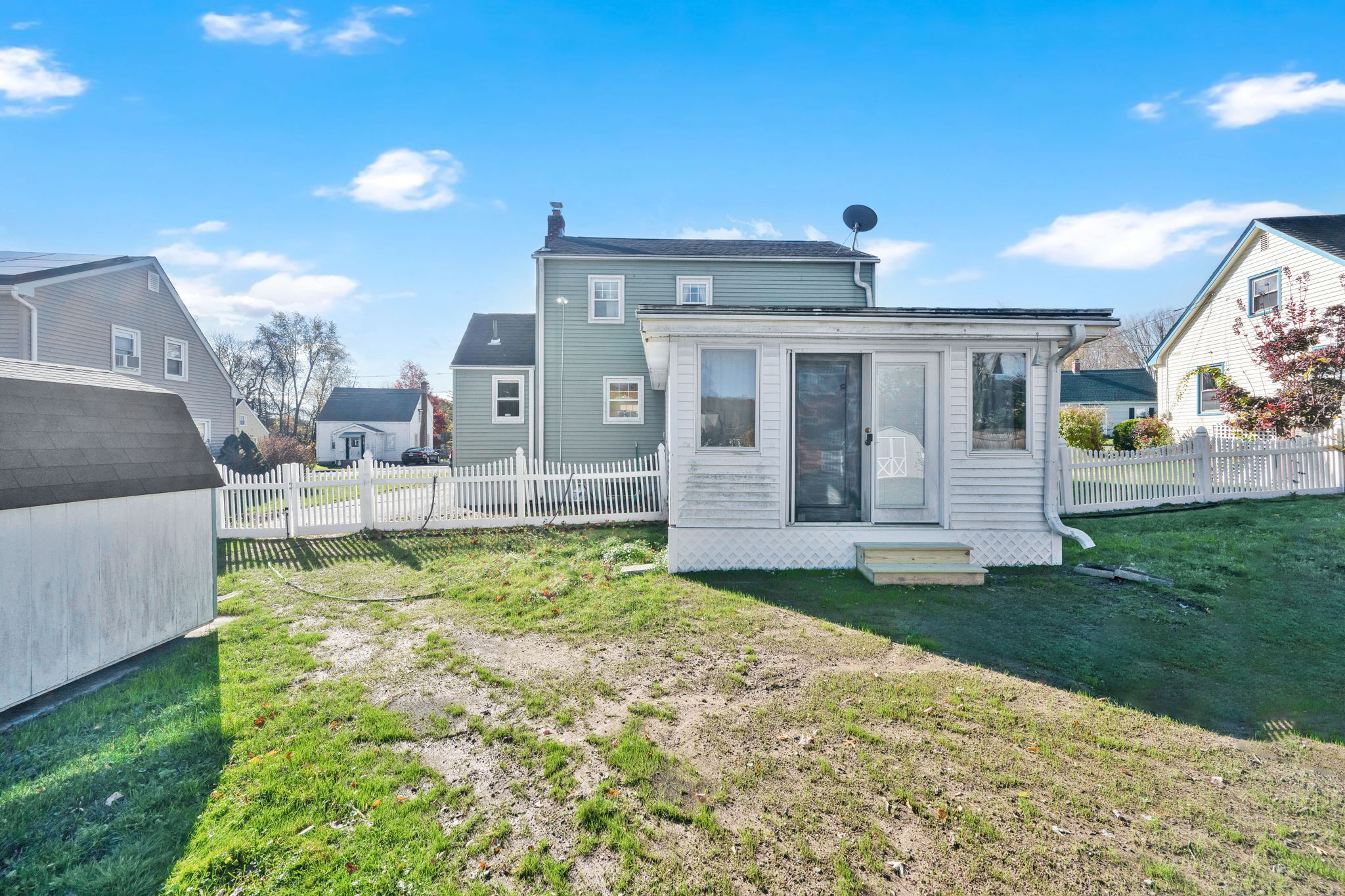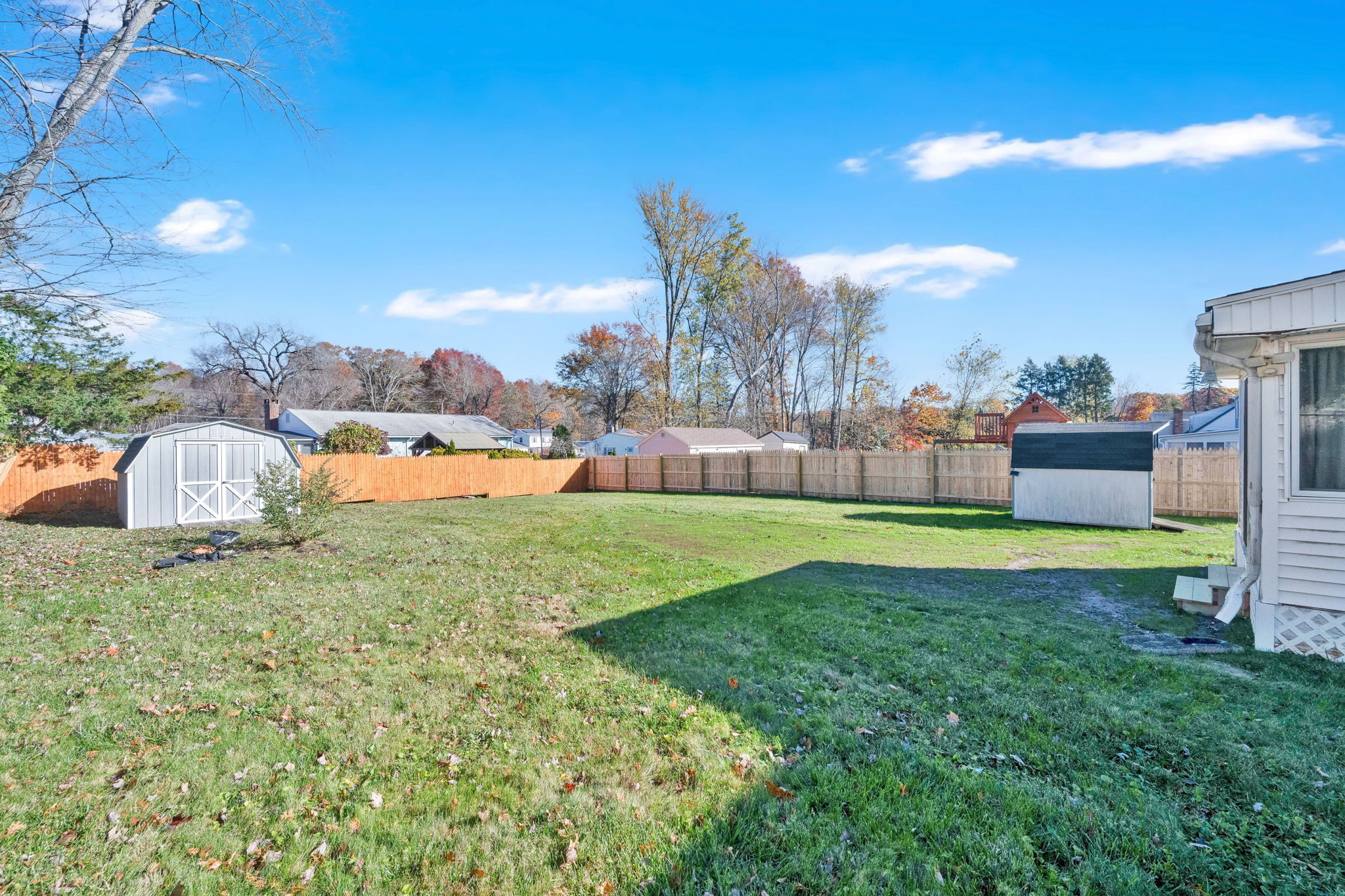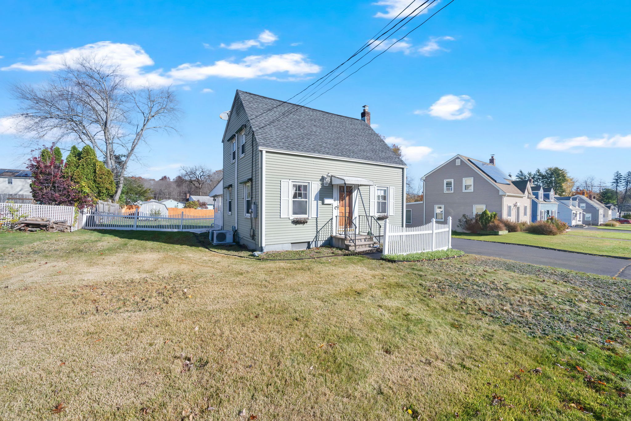 Welcome to this sun-filled Cape Cod in a quiet, walkable neighborhood just minutes to downtown Windsor Locks, shopping, and Bradley International Airport. The 6-room layout features 2 bedrooms and 2 full baths with hardwood in key areas and comfortable year-round climate control (central air plus a mini-split). The main level offers an inviting living room, a dedicated dining room, and an efficient kitchen that connects to the 19x13ft family room. First-floor washer/dryer combo adds everyday convenience. Downstairs, enjoy a dry basement with tons of storage and potential hobby space. Outside, the level, fully fenced backyard is ready for pets and play, with two storage sheds to keep tools and toys tidy. Move-in ready with great indoor-outdoor flow!