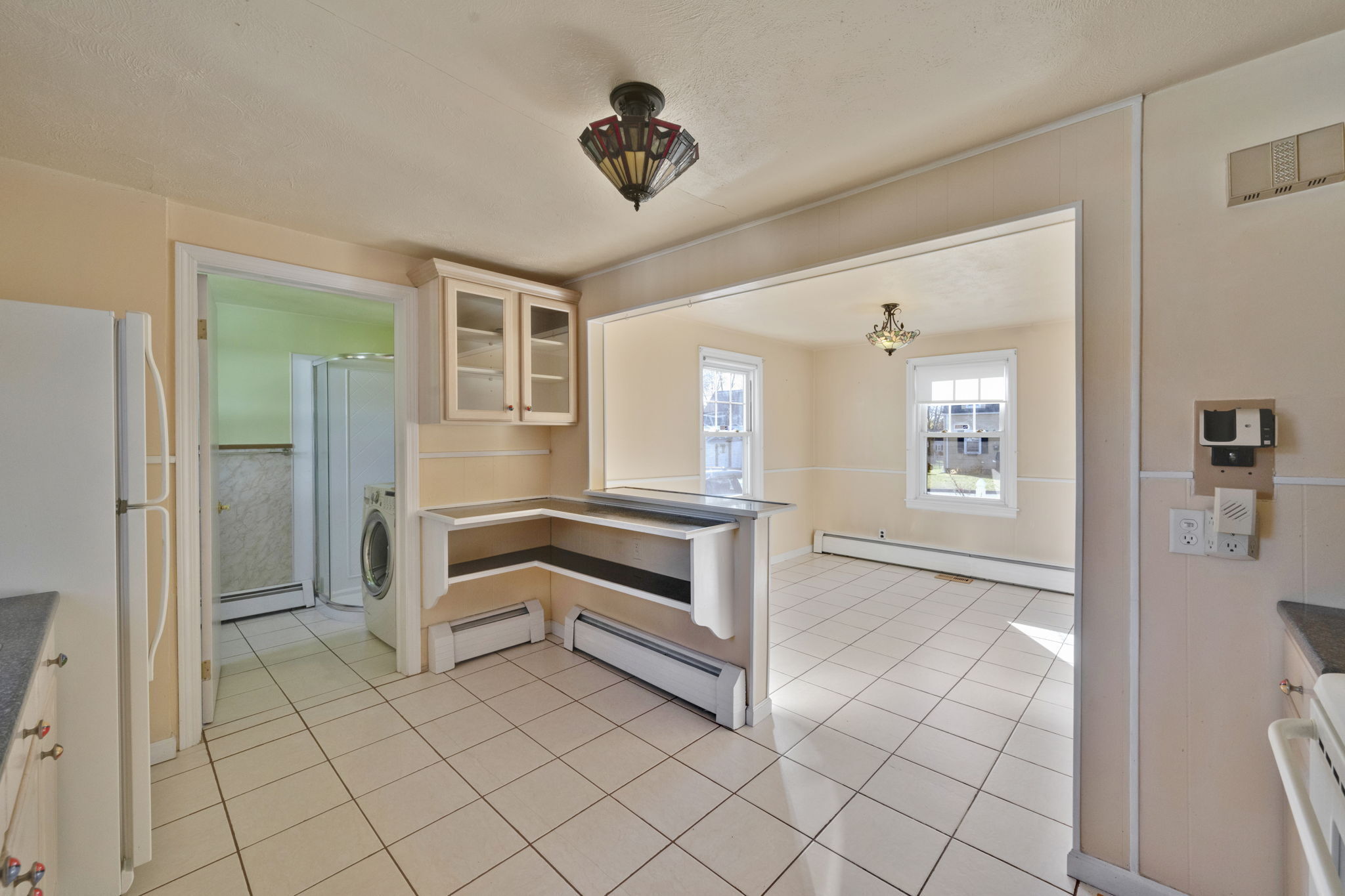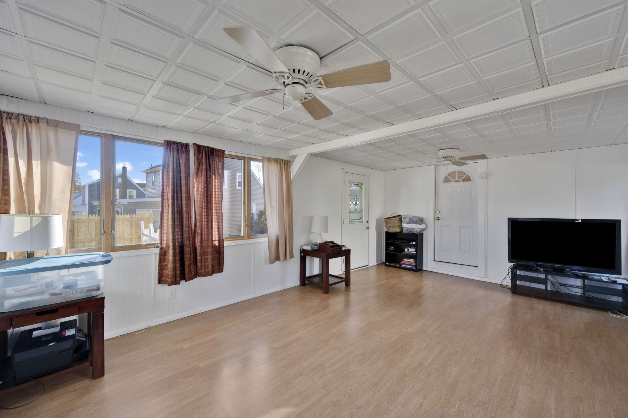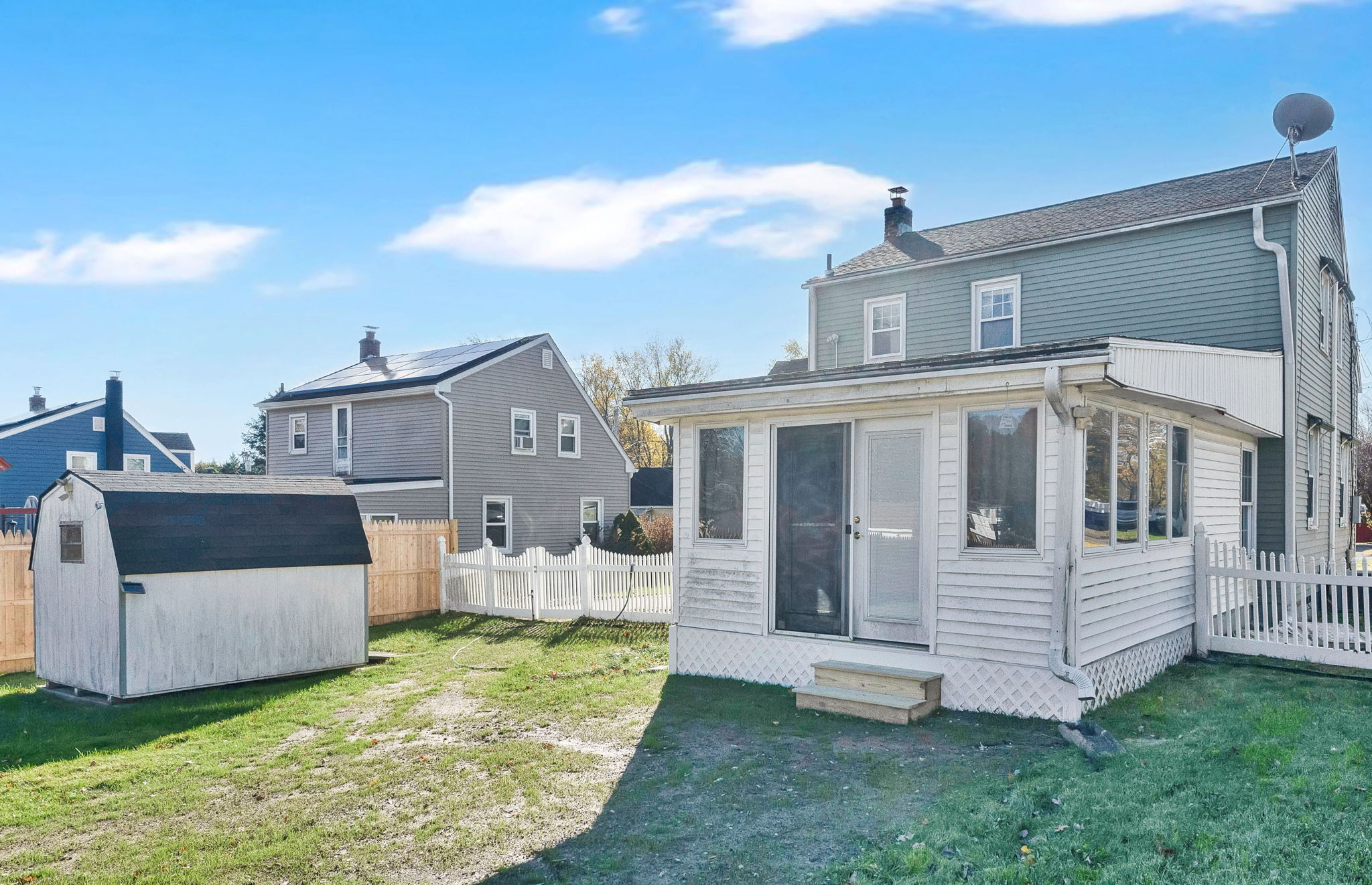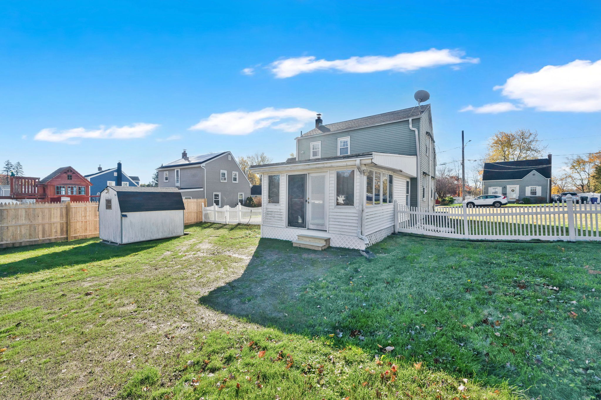 Welcome to this sun-filled Cape Cod in a quiet, walkable neighborhood just minutes to downtown Windsor Locks, shopping, and Bradley International Airport. The 6-room layout features 2 bedrooms and 2 full baths with hardwood in key areas and comfortable year-round climate control (central air plus a mini-split). The main level offers an inviting living room, a dedicated dining room, and an efficient kitchen that connects to the 19x13ft family room. First-floor washer/dryer combo adds everyday convenience. Downstairs, enjoy a dry basement with tons of storage and potential hobby space. Outside, the level, fully fenced backyard is ready for pets and play, with two storage sheds to keep tools and toys tidy. Move-in ready with great indoor-outdoor flow!