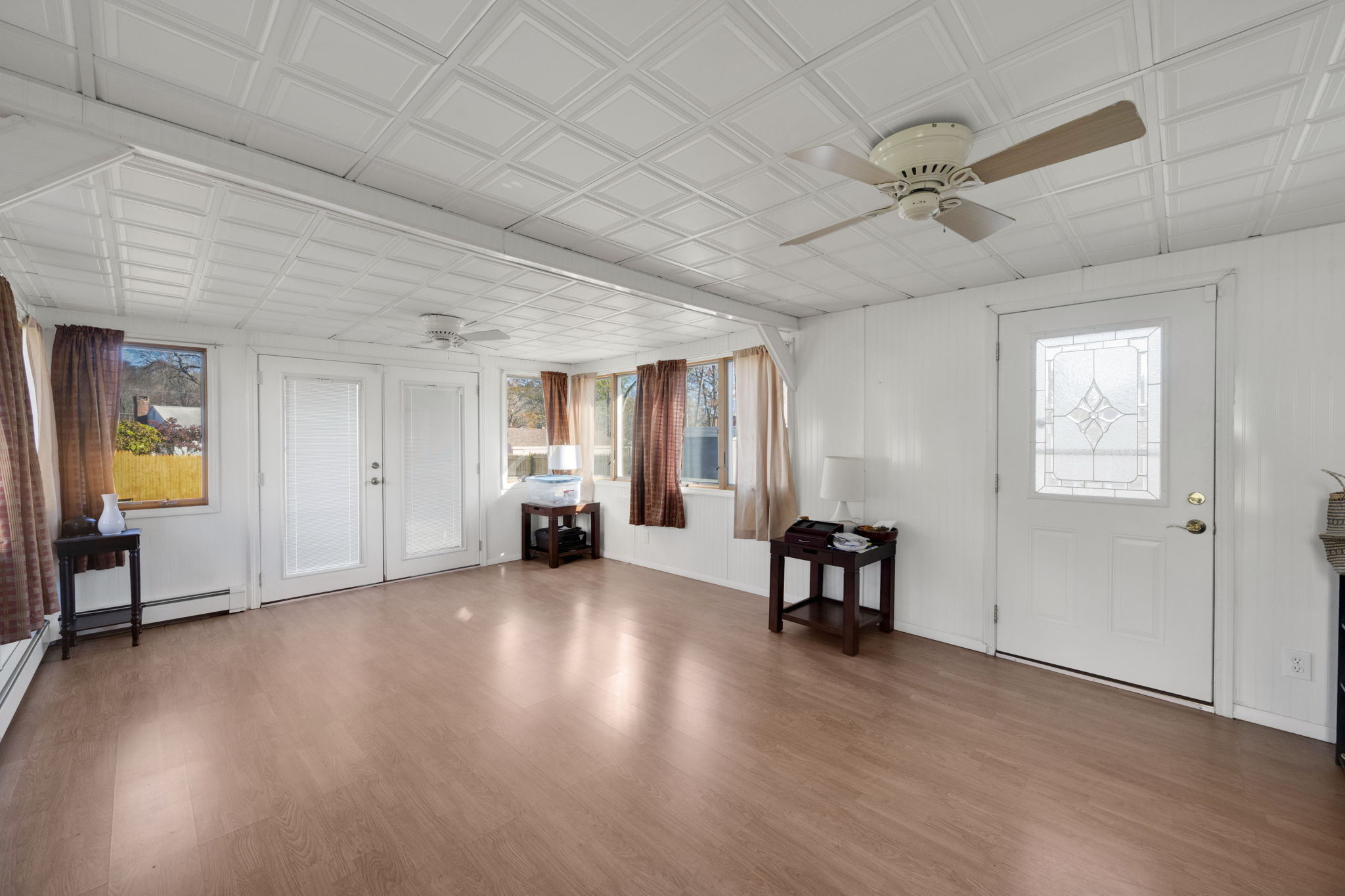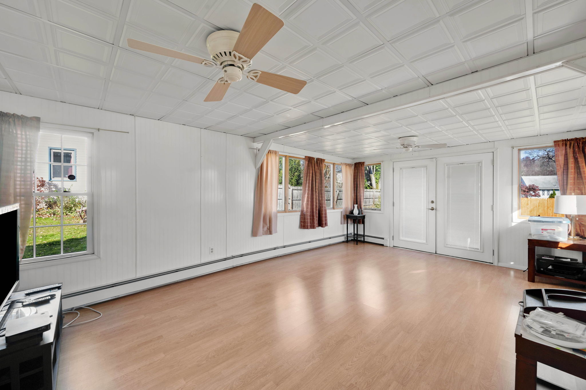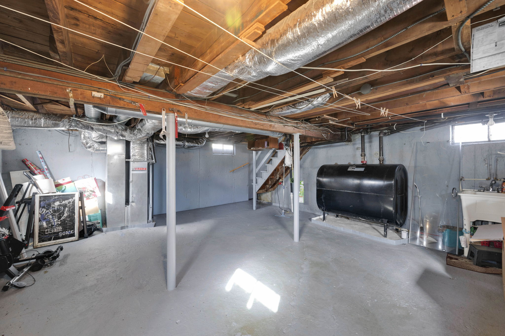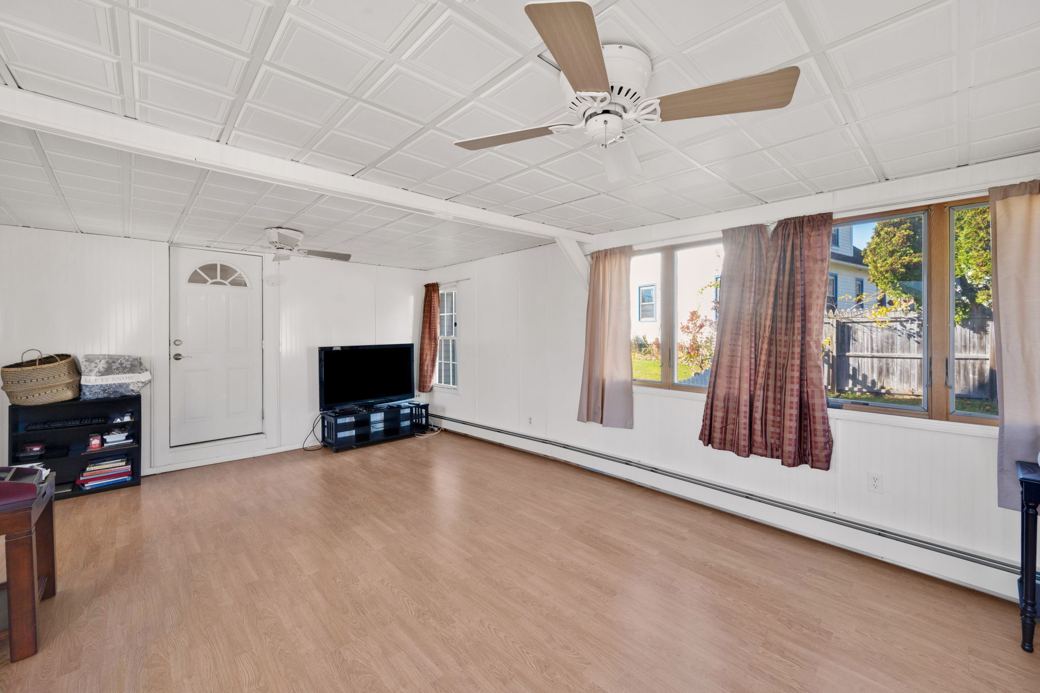 Welcome to this sun-filled Cape Cod in a quiet, walkable neighborhood just minutes to downtown Windsor Locks, shopping, and Bradley International Airport. The 6-room layout features 2 bedrooms and 2 full baths with hardwood in key areas and comfortable year-round climate control (central air plus a mini-split). The main level offers an inviting living room, a dedicated dining room, and an efficient kitchen that connects to the 19x13ft family room. First-floor washer/dryer combo adds everyday convenience. Downstairs, enjoy a dry basement with tons of storage and potential hobby space. Outside, the level, fully fenced backyard is ready for pets and play, with two storage sheds to keep tools and toys tidy. Move-in ready with great indoor-outdoor flow!