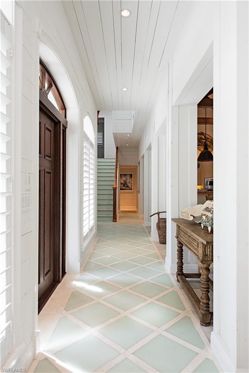 celebrates refined craftsmanship: exquisite wood feature walls, custom pecky cypress accents, and beams handcrafted from 500-year-old heartpine. Throughout, wide-plank Legno Bastone oak flooring is elevated by hand-set sea glass tile inlays, while the entryway and walkways showcase individual sea glass tiles encased in marble, adding a luxurious touch. Ideal for entertaining, the great room seamlessly balances