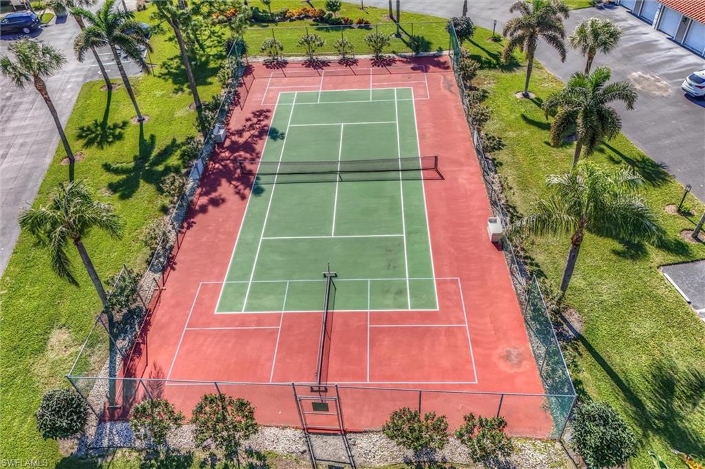 FORE! Experience the Best of Naples Living at Royal Wood Golf & Country Club — a welcoming, beautifully maintained bundled-golf community surrounded by 34 acres of shimmering lakes. Centered around its championship 18-hole, Par 70 golf course designed by renowned architect Dr. Michael Hurdzan, Royal Wood offers an unparalleled blend of recreation, relaxation, and refined Florida living. Opportunity knocks! You’ll fall in love the moment you step into this 2 BR + Den condominium in the desirable Cobblestone Court neighborhood. This charming first-floor, turnkey-furnished residence features an updated white kitchen with neutral corian countertops and stainless-steel appliances, and beautiful engineered hardwood flooring runs throughout the home except in the den. The bathrooms feature new vanities, and the guest bath is upgraded with a new shower, tub and fixtures. A pocket door at the den allows the space to be easily privatized for use as an additional sleeping area. The 1-car detached garage offers convenience and extra storage and an electric fabric shutter was added to the lanai for storm protection. With stunning lake views from both the lanai and primary bedroom, every morning feels like a retreat at Cobblestone Court! Residents enjoy a newly updated clubhouse with elegant dining spaces, a vibrant grill room, and a full calendar of social events that bring neighbors together. Outstanding community amenities include a state-of-the-art fitness center, multiple heated pools, tennis and pickleball courts, bocce, and scenic walking paths that highlight the community’s lush landscaping and sparkling waterways. Located just minutes from downtown Naples, world-class shopping, dining, top-rated hospitals, and the Gulf’s pristine beaches, Royal Wood combines serene surroundings with exceptional convenience to Naples’ top attractions.