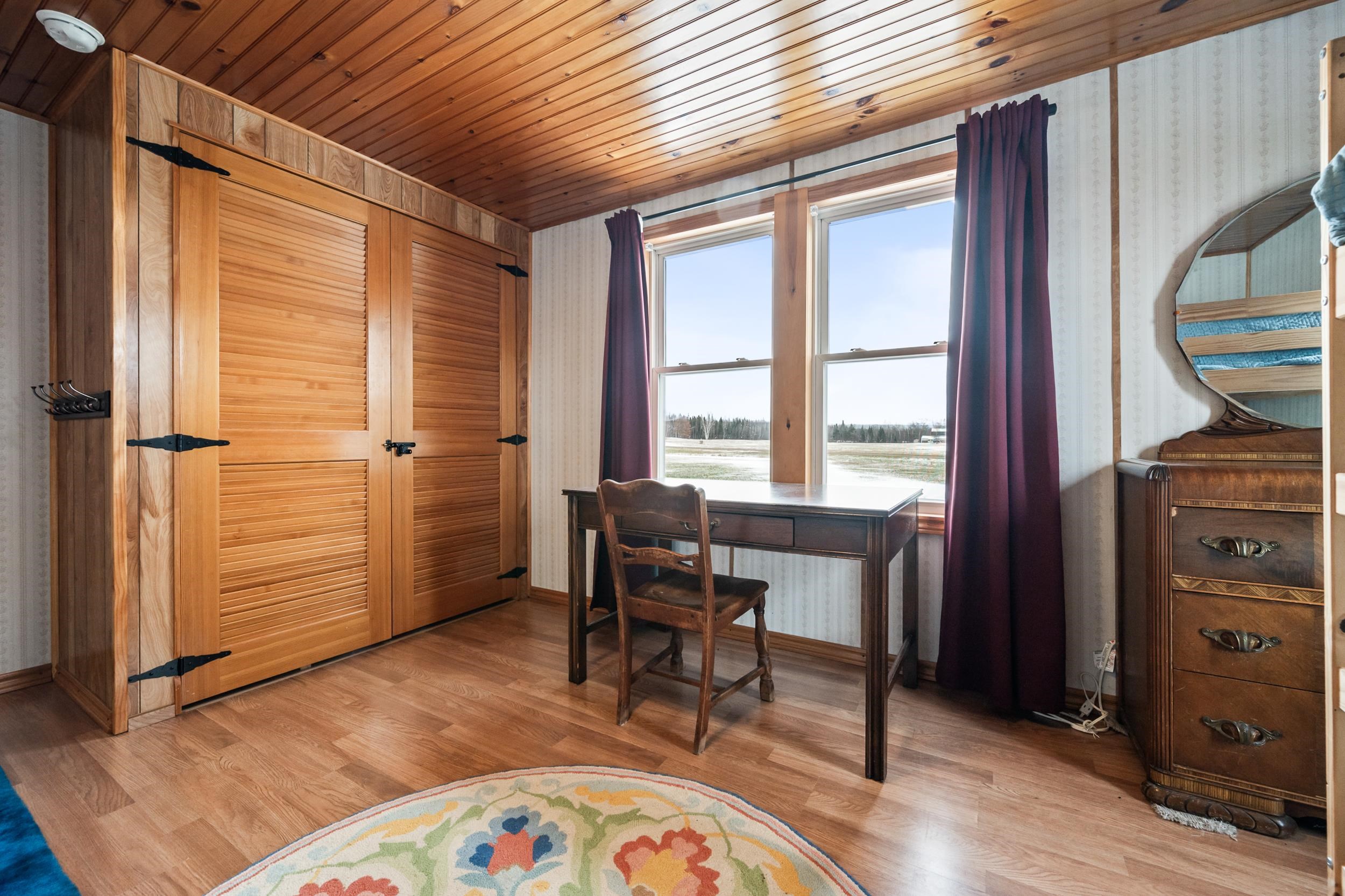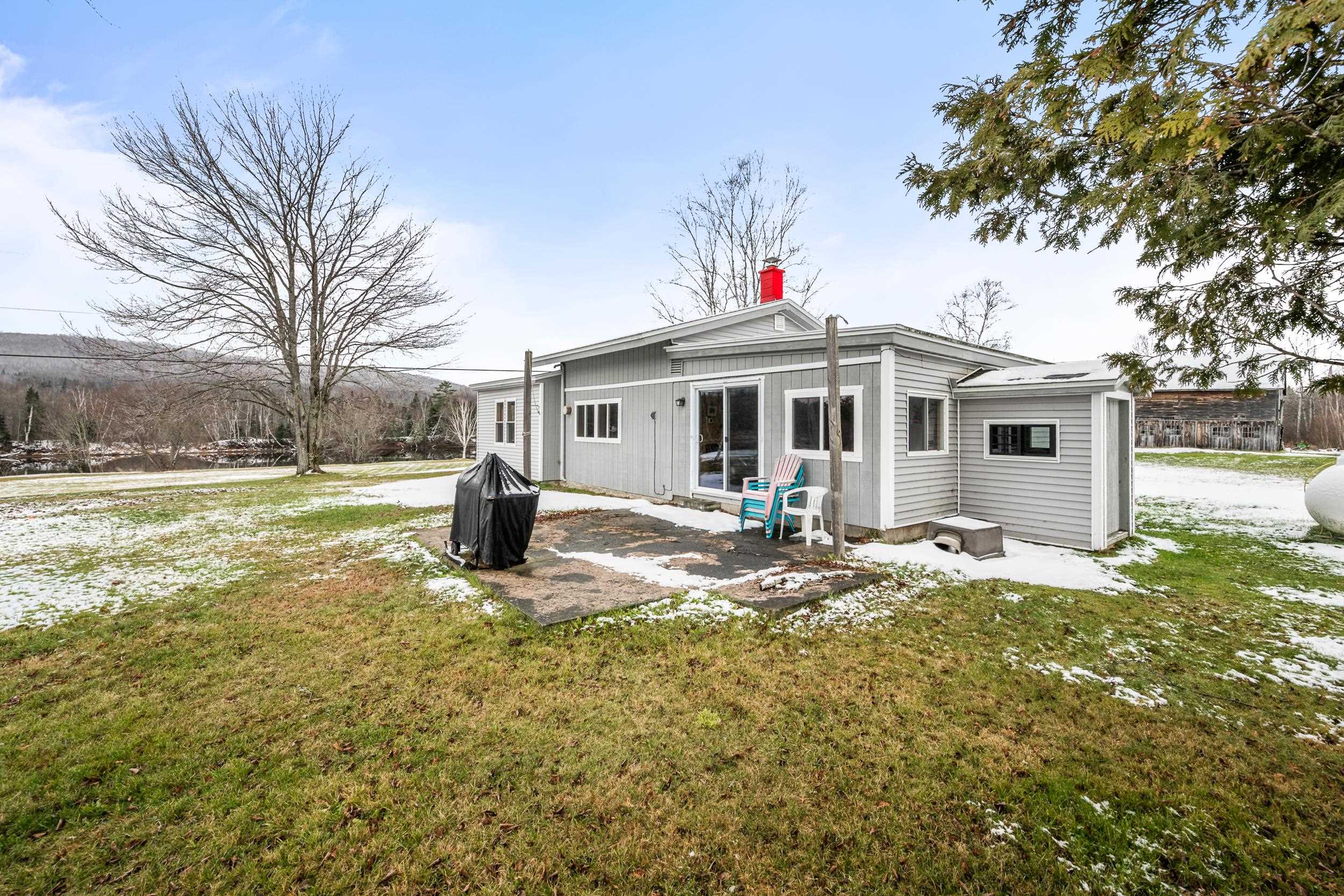 This well-maintained ranch-style home features four rooms, including one bedroom, and offers both river and mountain views, providing an exceptional country living experience. The property includes an inviting eat-in kitchen with a designated dining area, equipped with modern appliances and a sliding door that opens to the patio. The spacious living room provides comfortable living space, while the first-floor laundry area adds convenience. A stairway leads to an unfinished attic, ideal for additional storage. The front of the house overlooks the river and contains the primary bedroom, as well as another versatile room suitable for use as a den or extra sleeping quarters. Additional structures on the property include an older barn, a single-car garage, and multiple sheds. The owners are currently in the process of subdividing the lot into a five-acre parcel with a deeded right-of-way for continued access to their remaining land. This residence exemplifies the ease and comfort of single-floor country living.