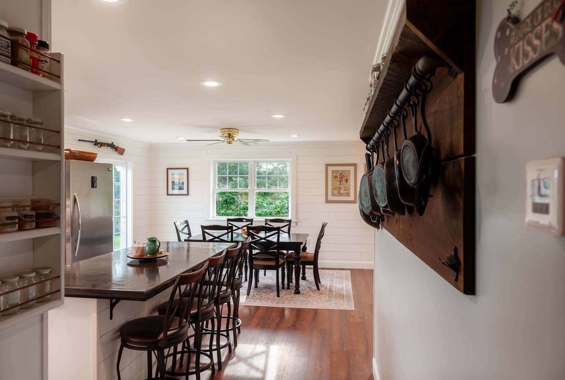 This Vermont Homestead is a charming and move-in-ready colonial home featuring 4 bedrooms and 2 bathrooms. It offers a seamless flow from the entrance, including a bonus room off the mudroom and a first-floor bedroom and bathroom for convenience. The large, open kitchen, dining, and living areas are filled with natural light thanks to all new windows. Upstairs, you'll find an oversized primary bedroom and two additional bedrooms. The barn/garage includes partially finished space on the main floor and an upstairs accessory apartment, which features a beautiful studio with a full kitchen, and ¾ bathroom (an additional 400sqft finished living space) and a built-in AC unit. Step outside onto the deck to enjoy stunning mountain views. The 15+ acres boast trails and scenic spots along the paths, perfect for exploring. A lighted fire ring/picnic area is a fun surprise, perfect for gathering friends and making memories. The location is close to shopping, schools, and many lakes, including Caspian lake in Greensboro. Don't miss the opportunity to see this exceptional property in person—you'll be glad you did.