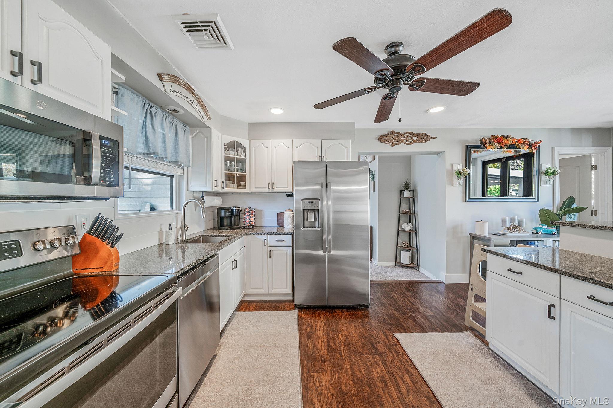OPEN HOUSE CANCELLED - Charming Updated Ranch in the Sought-After Shoreham-Wading River School District! Move-in ready has never looked so good! Welcome home to this beautifully updated 3 bedrooms, 1 bath ranch that perfectly blends comfort and style. Enjoy relaxing evenings or lively gatherings in the spacious family room featuring high ceilings, skylights, and a warm gas fireplace. The modern kitchen shines with granite countertops and stainless steel appliances, all updated within the last 5 years along with the boiler, roof, floors, windows, laundry machines, central air, and inground sprinklers. Enjoy seamless indoor-outdoor living with custom fully-opening sliders that lead to an entertainer’s fenced-in backyard complete with a custom-built bar ideal for summer parties, quiet mornings, or anything in between. Need storage or workspace? You’ll love the newly constructed 2-car garage with new windows and its own separate electric panel; and a Tesla charging station, a rare and valuable feature. Located in the highly desirable Shoreham-Wading River School District, this home offers both tranquility and proximity to the best of the North Shore: fine dining, wineries, farms, and beautiful beaches just minutes away. A must see property that truly has it all; updated, stylish, and ready for you to move in. Message for more details or to schedule a private showing!