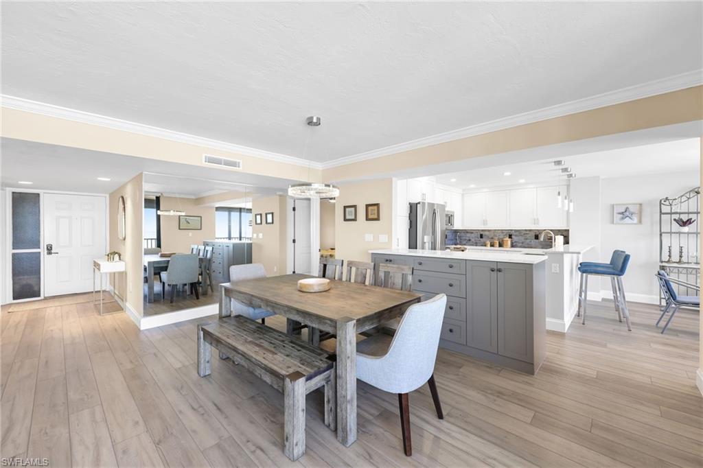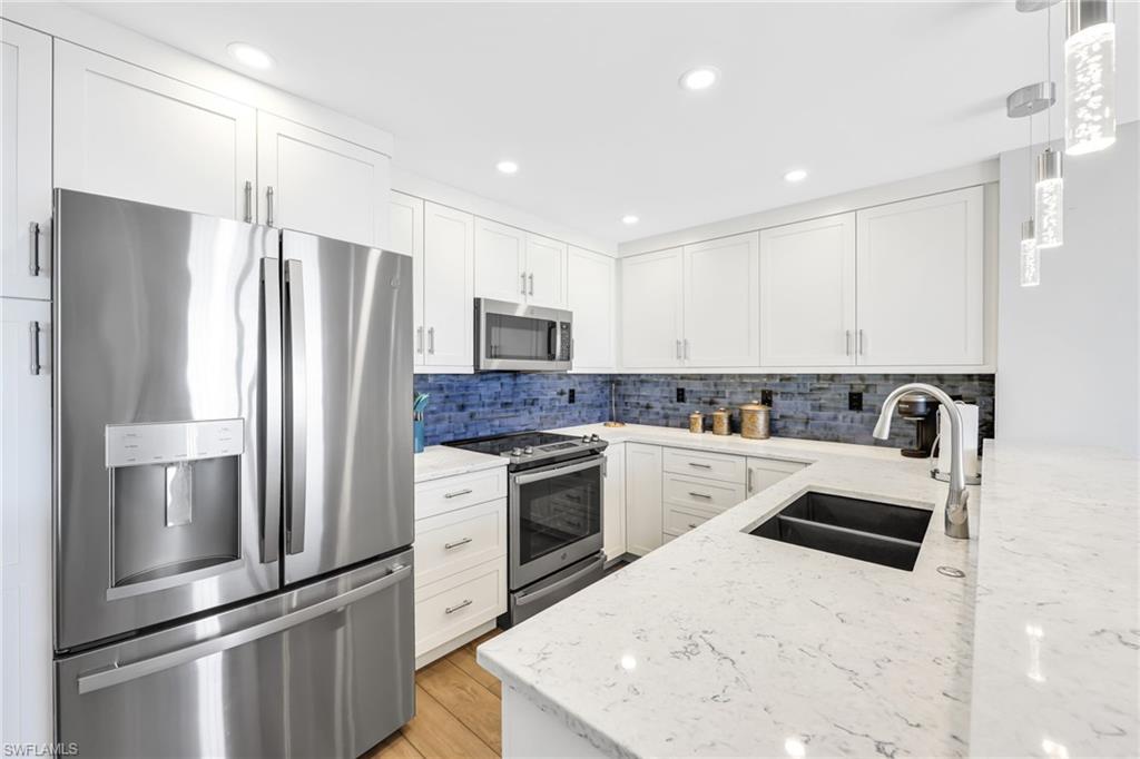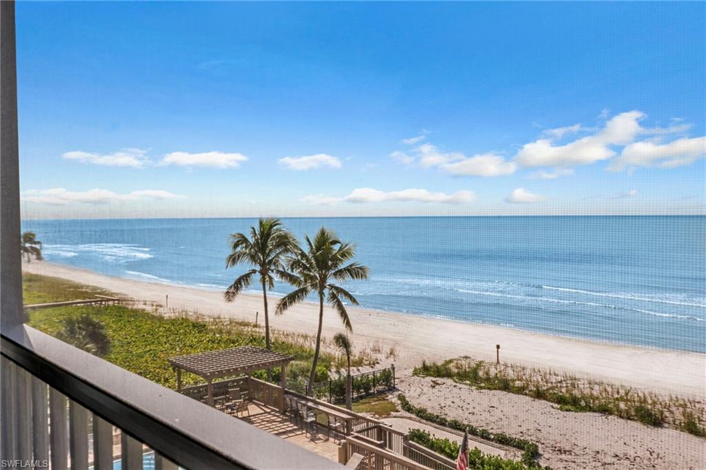 RARELY AVAILABLE… GORGEOUS, TURNKEY, FULLY RENOVATED BEACHFRONT 2 bedroom, 2 1/2-bath condo for lease at CASA GRANDE on Vanderbilt Beach. This condo has been fabulously redesigned to accommodate up to six people. This meticulously maintained home showcases incredible features including: Remote sun shade window coverings, plantation shutters, crown molding, beautiful wood flooring, custom built cabinets, mounted TVs, high baseboards, electric hurricane shutters, and direct beach views. The open-concept living area flows to a large tiled screened lanai and balcony overlooking the Beach and Gulf. The primary suite features a king bed, and the guest room offers a queen size. There’s even a pullout sofa for extra guests. Spa-style baths boast tiled showers to the ceiling, dual sinks, and high-profile vanities with quartz tops, and an extra half bath for your guests. The standout kitchen includes stainless steel appliances, quartz countertops, a separate island, soft-close drawers and doors, a deep stainless sink, gorgeous blue backsplash, pendant lighting, and abundant storage. Convenience continues with a high-end washer and dryer set and a laundry tub and plenty of guest parking across the street. Community amenities include an elevator, private beach access, a large heated pool, and storage area. Only minutes away from world-class dining, shops, and entertainment.