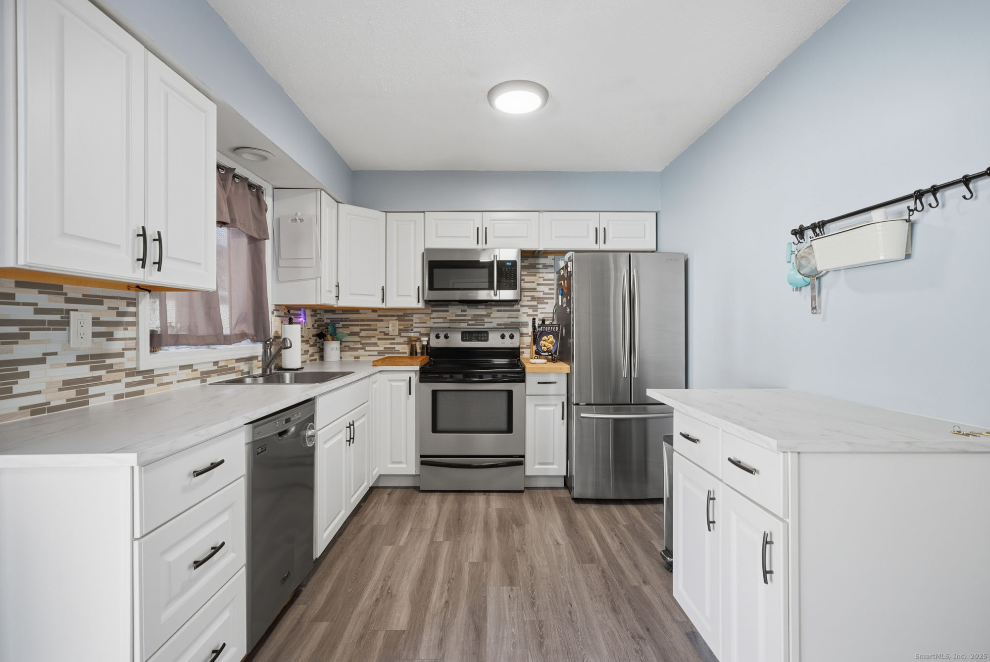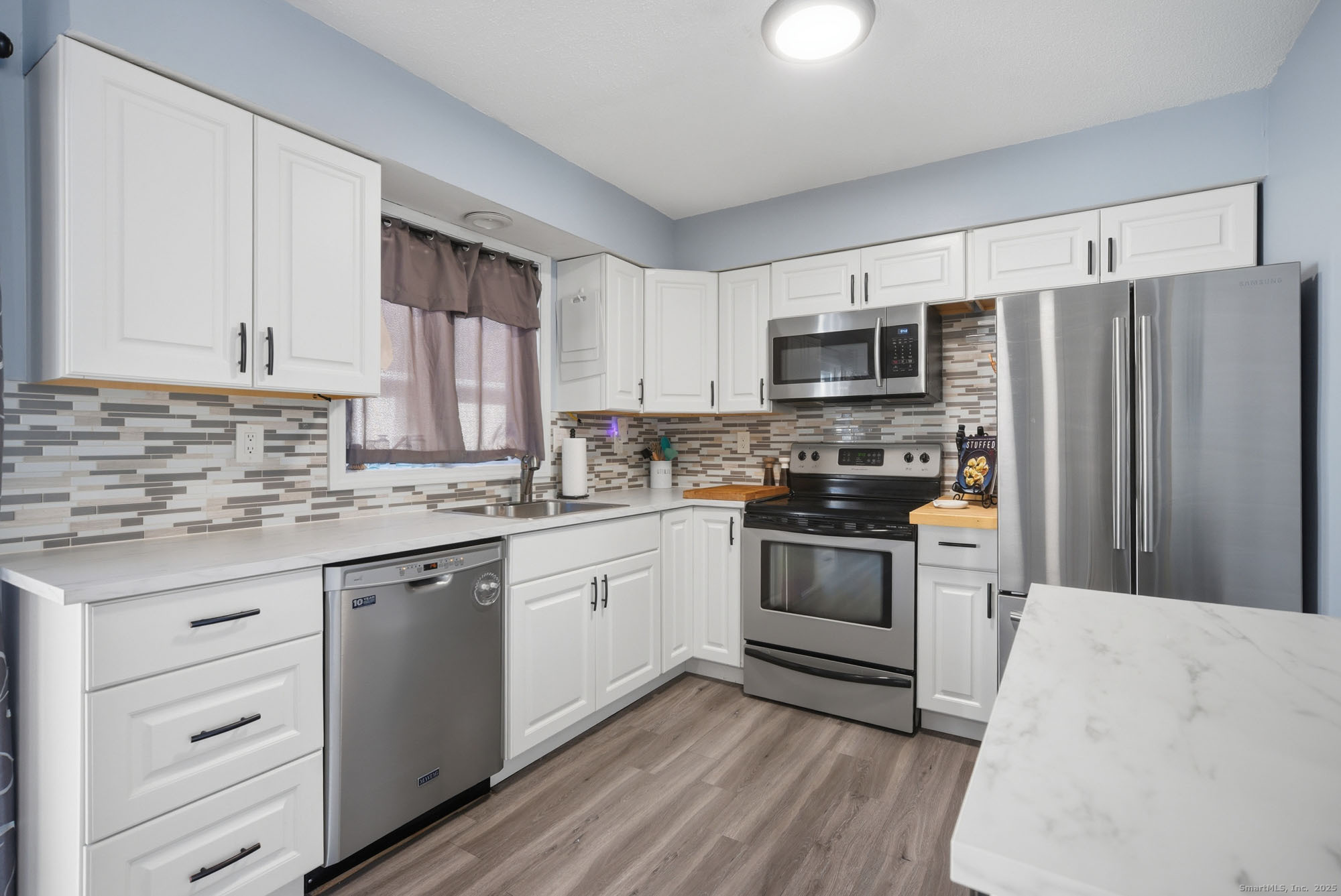 Welcome to 309 East St Unit 10, a bright and comfortable condominium in a convenient Plainville location. The lower level offers a roomy living area with a vaulted ceiling that gives the space an open and airy feel. The updated eat-in kitchen features stainless steel appliances, plenty of cabinet space, and a large pantry. Head upstairs to a spacious bedroom with a generous walk-in closet and a full bath with laundry area. A half bath is located on the main level for added convenience. Close to I-84, shops & restaurants. Low HOA.