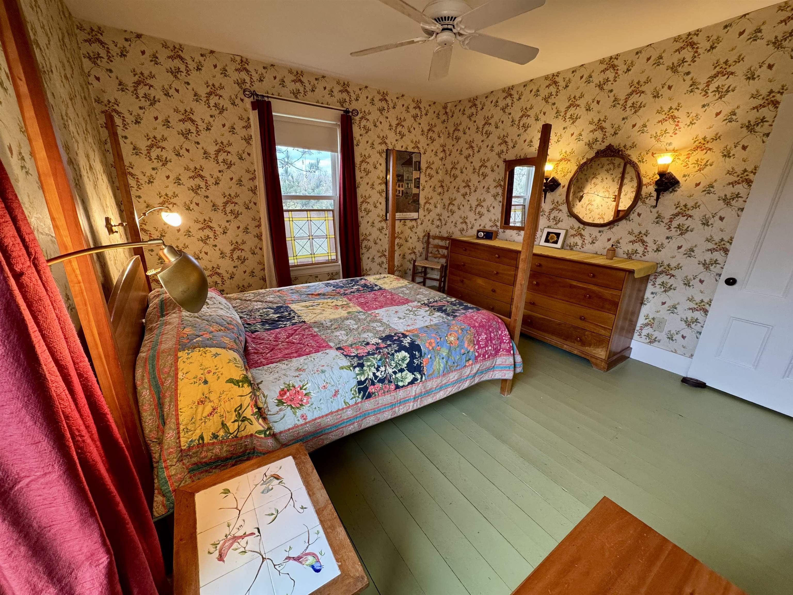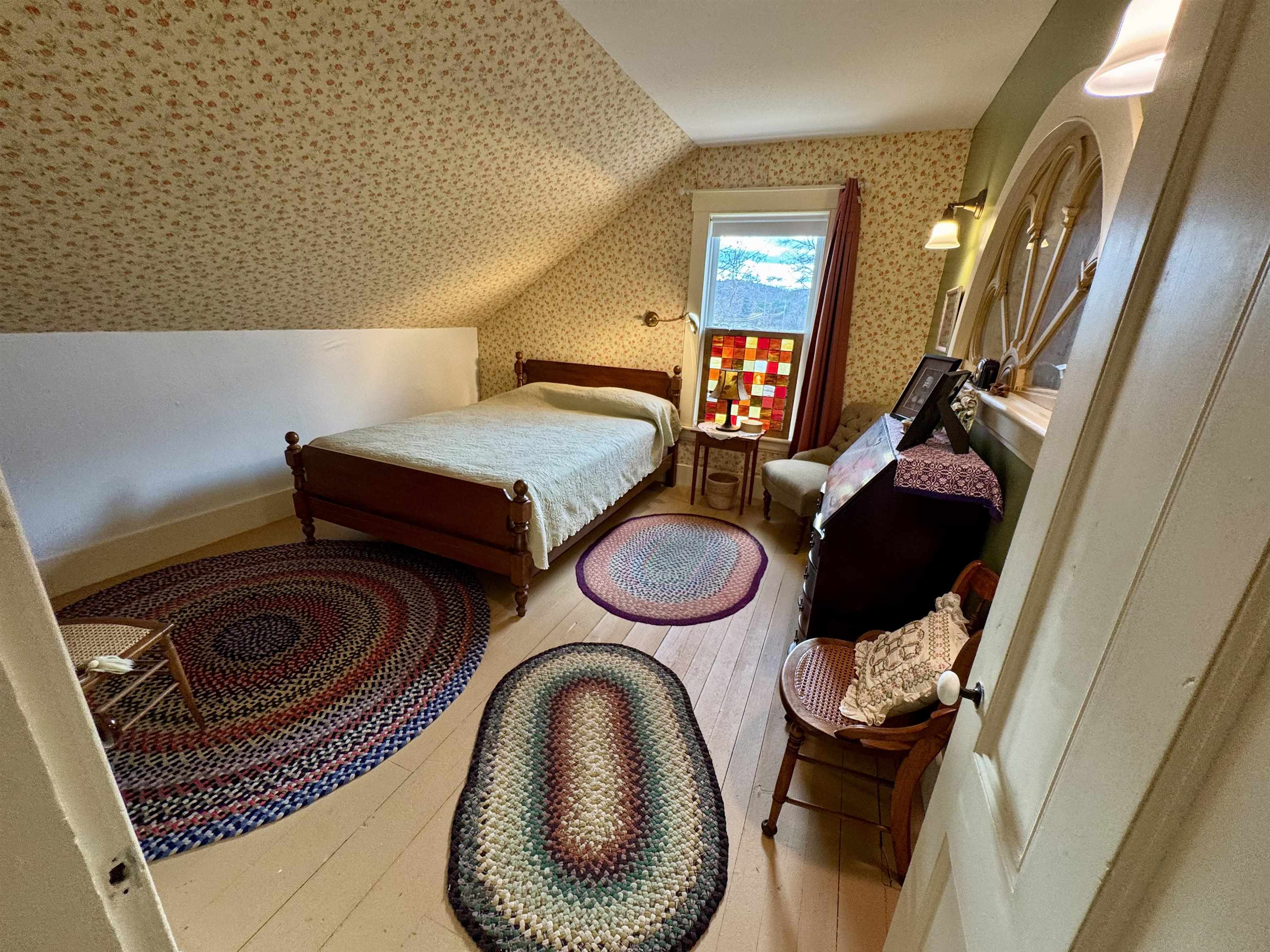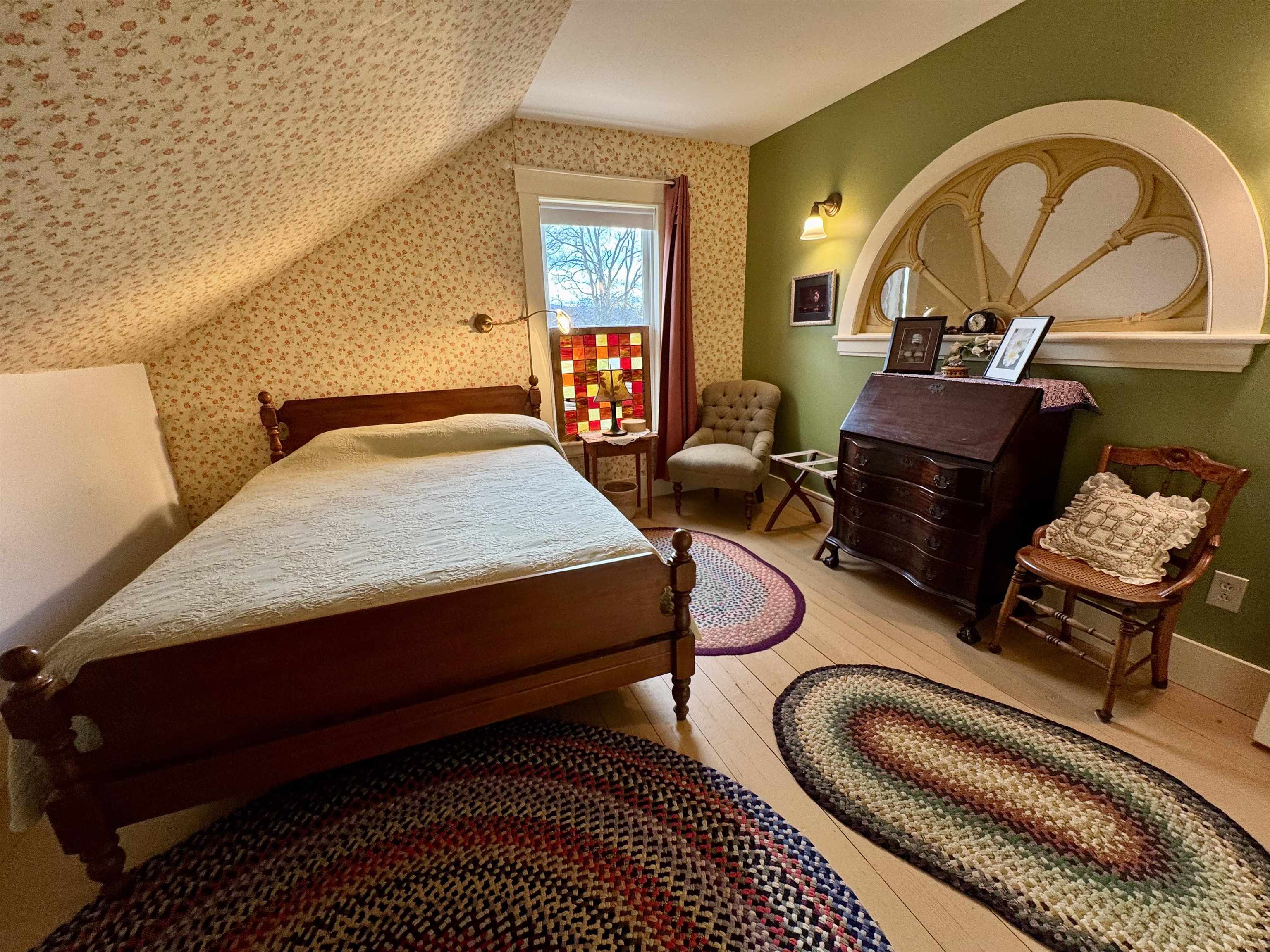 Situated on the western side of River Road on 1. 5 Acres, this 1898 New England Colonial is surrounded by conserved farmland. It has a ROW to the Connecticut River, and has been lovingly cared for by its current owners. The home exudes charm, upon entering from the driveway you are greeted by a large, open kitchen with attached dining space. The kitchen has soapstone countertops with a large island incorporating sinks and the dishwasher, as well as a formal dining space adjacent to the kitchen and access into a pantry as well as the attached garages. The formal living room for the home has several seating options and includes a propane-insert stove for cooler seasons. The home has five bedrooms, one of which is on the first floor and adjacent to the 3/4 bathroom with a shower. A comfortable office, music room, or play space sits adjacent to this first floor bedroom. The grand staircase brings you upstairs to four of the bedrooms and a full bathroom. Each room has natural light, a quiet, local view, but with some of the bedrooms offering long range views out into the Connecticut River Valley. The landscape outside of the home is level, ready for recreation or hobby farming, and includes a tracking solar panel to provide power generation. Quietly located outside of metro-hustle, but with proximity to anything that you could need. A charming, historic offering, immaculately represented.
