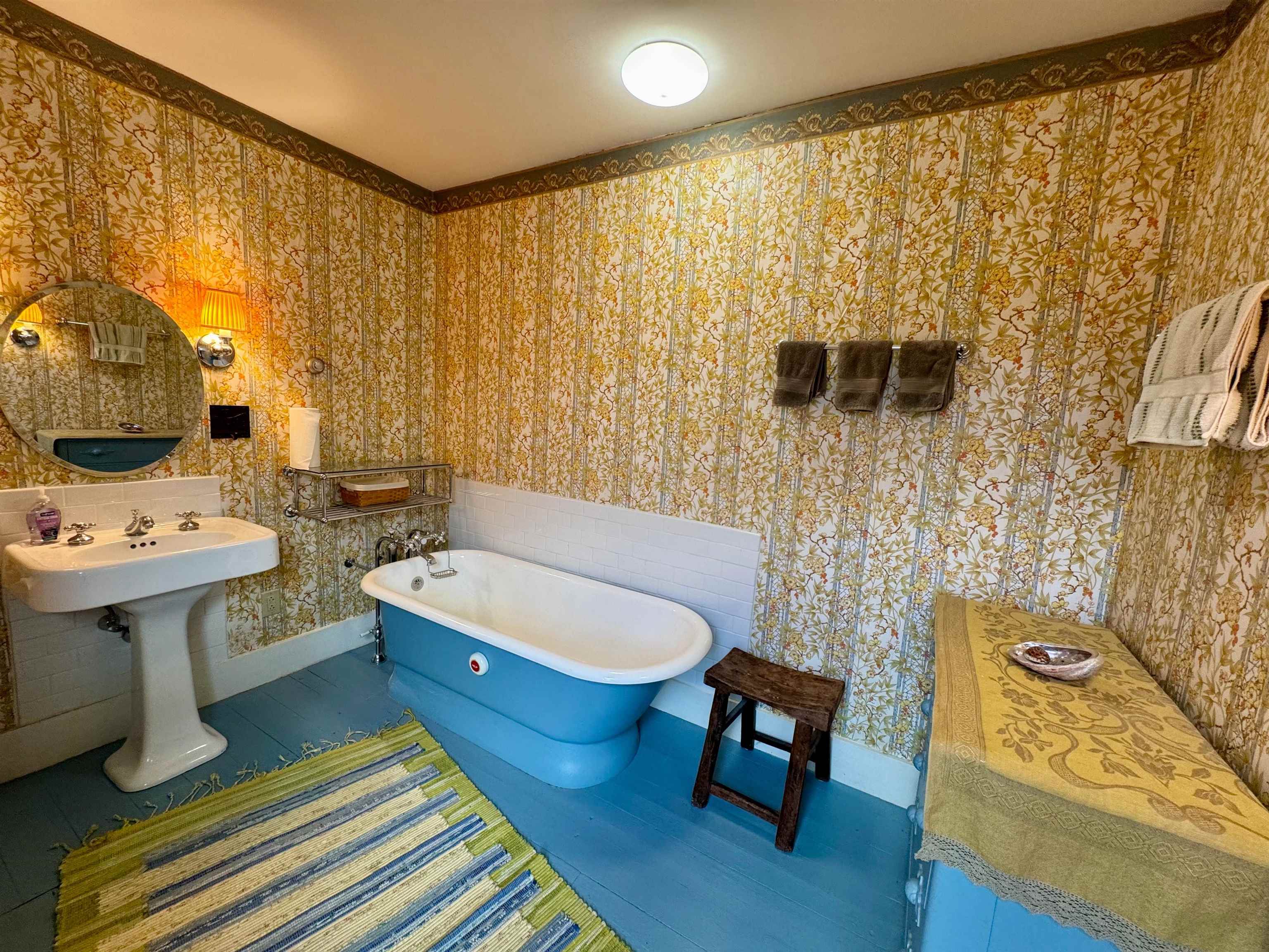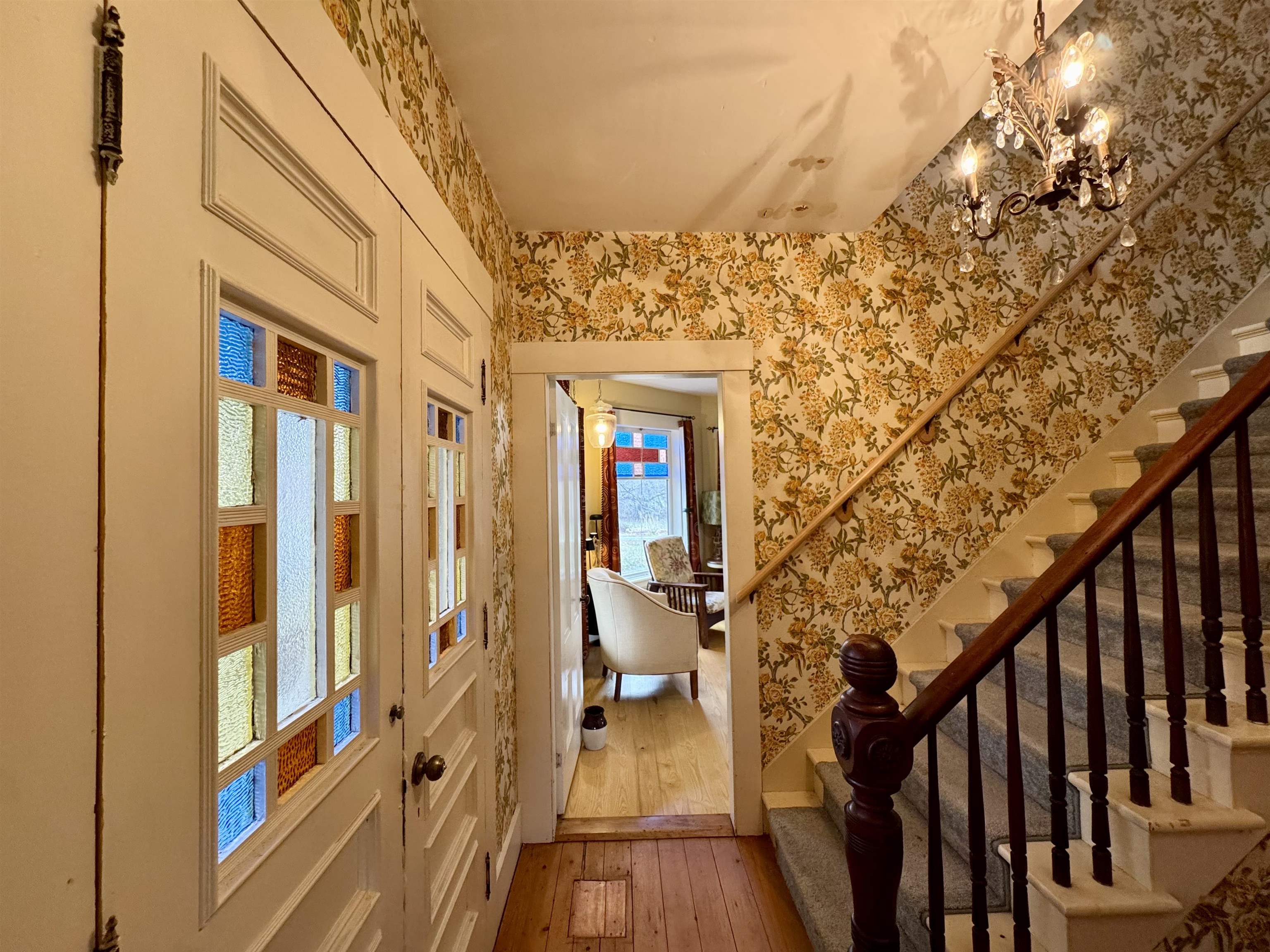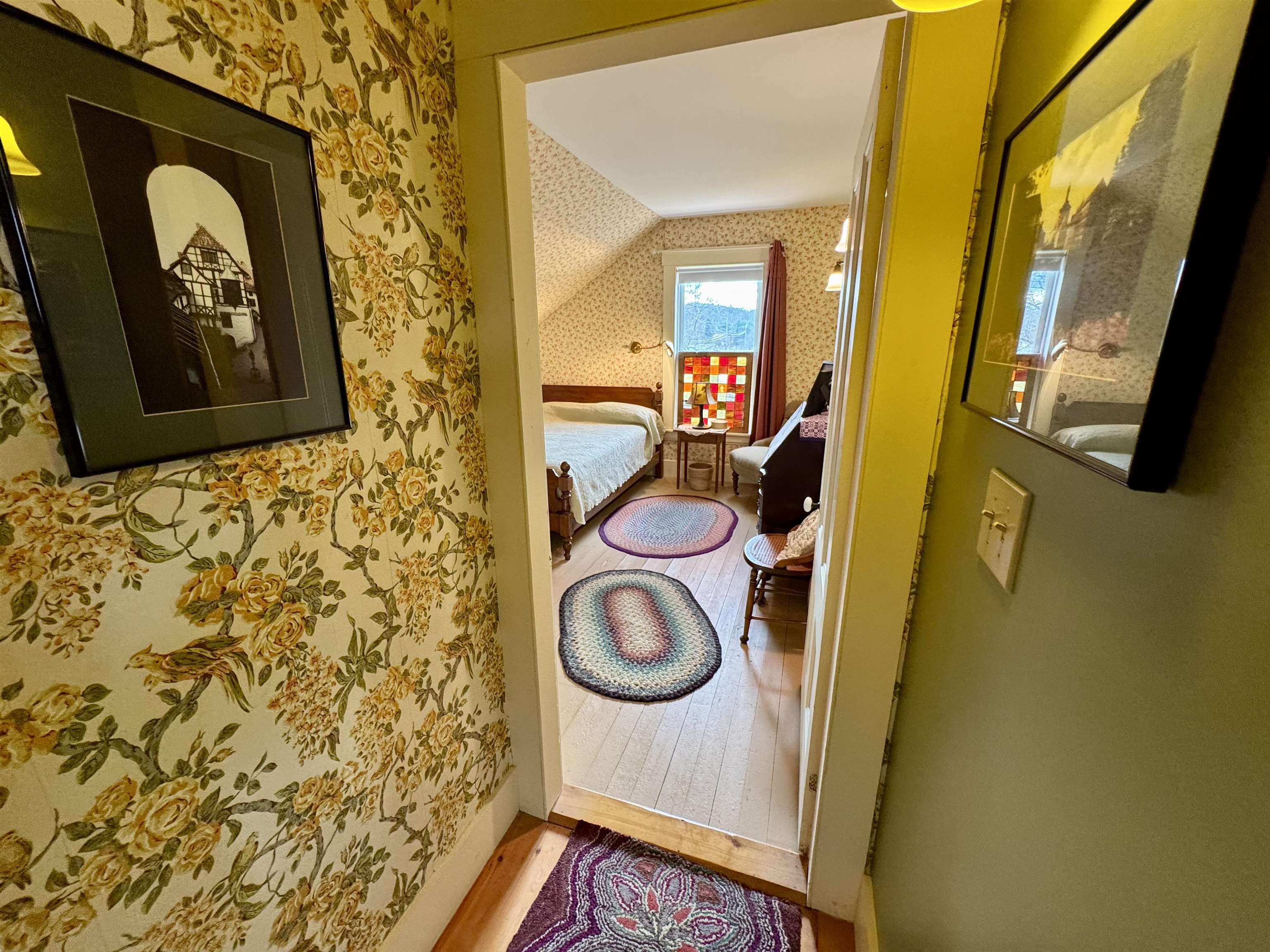 Situated on the western side of River Road on 1. 5 Acres, this 1898 New England Colonial is surrounded by conserved farmland. It has a ROW to the Connecticut River, and has been lovingly cared for by its current owners. The home exudes charm, upon entering from the driveway you are greeted by a large, open kitchen with attached dining space. The kitchen has soapstone countertops with a large island incorporating sinks and the dishwasher, as well as a formal dining space adjacent to the kitchen and access into a pantry as well as the attached garages. The formal living room for the home has several seating options and includes a propane-insert stove for cooler seasons. The home has five bedrooms, one of which is on the first floor and adjacent to the 3/4 bathroom with a shower. A comfortable office, music room, or play space sits adjacent to this first floor bedroom. The grand staircase brings you upstairs to four of the bedrooms and a full bathroom. Each room has natural light, a quiet, local view, but with some of the bedrooms offering long range views out into the Connecticut River Valley. The landscape outside of the home is level, ready for recreation or hobby farming, and includes a tracking solar panel to provide power generation. Quietly located outside of metro-hustle, but with proximity to anything that you could need. A charming, historic offering, immaculately represented.