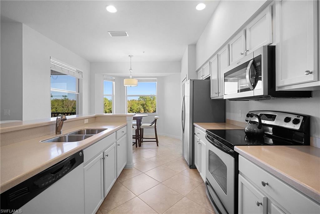 Extremely rare TOP FLOOR END UNIT! This "Brookside" model Terrace condo is fully updated and TURNKEY move-in ready, with a FULL golf membership to Heritage Bay included! Escape the winter up north or use it as a rental to offset carrying costs and have a completely FREE condo to use for 9 months out of the year! Easy to rent Jan, Feb, March at $7000/month. Great location next to satellite pool as well. Updates include engineered wood flooring in bedrooms, all new lighting and fixtures throughout, white cabinets, stainless appliances, modern furniture and more! Heritage Bay features a stunning 27-hole Lewis-Azinger designed golf course and aqua driving range. The grand clubhouse offers diverse dining options, elegant event spaces, and a lively social scene. Have a bite to eat in The Grille Room— a casual indoor/outdoor bar & dining area, with an incredible southern view of the 27th green. Members can also enjoy a resort-style pool area with heated spa & 'The Cabana' poolside bar & grille with a full service kitchen. The community also includes a top-notch tennis program with 7 har-tru clay courts, pickleball & bocce courts, and a state-of-the-art fitness center. With a calendar full of events and activities, Heritage Bay ensures a vibrant and luxurious lifestyle for its members. Whether you're a golf enthusiast or simply looking for serene views and luxury living, Heritage Bay offers it all.