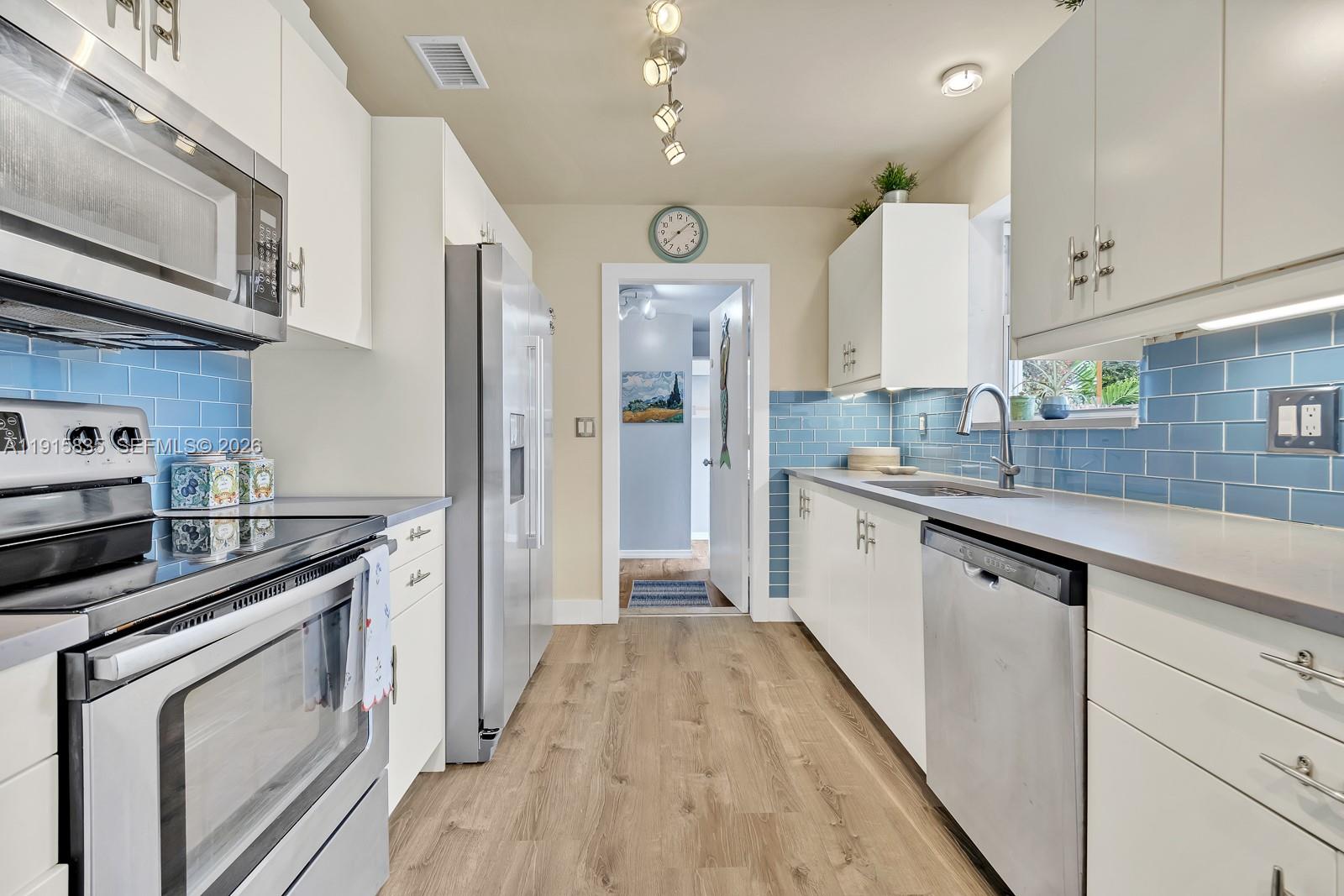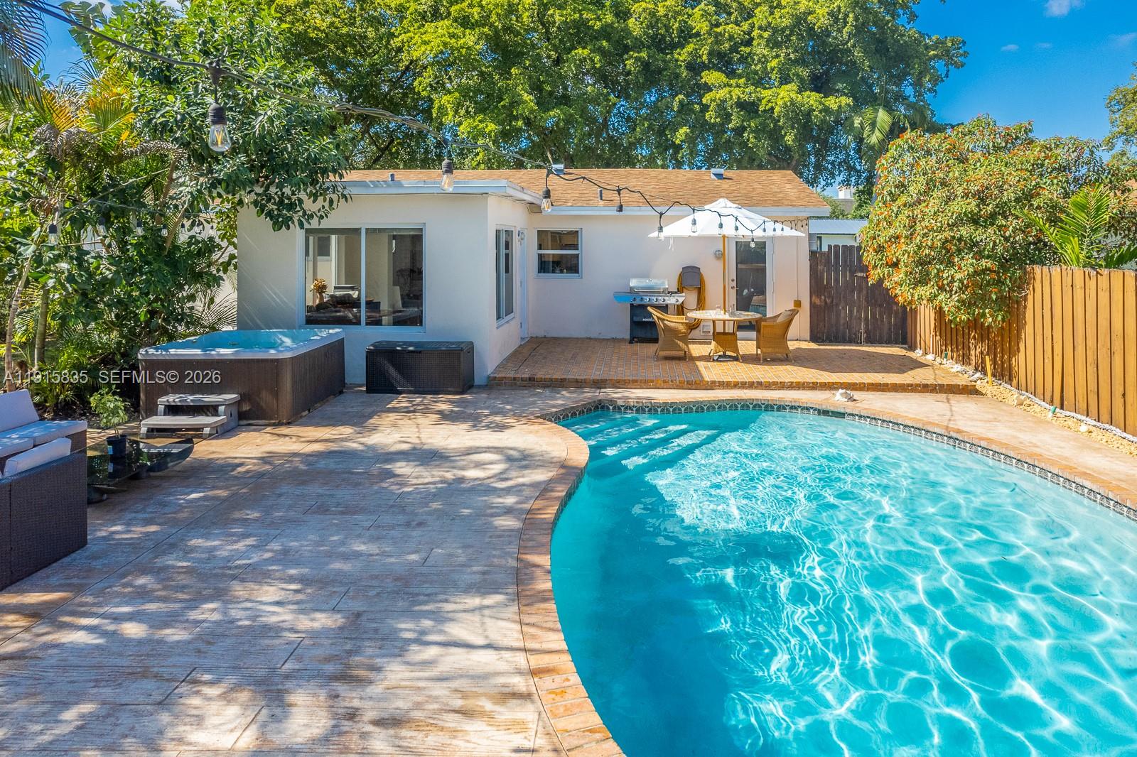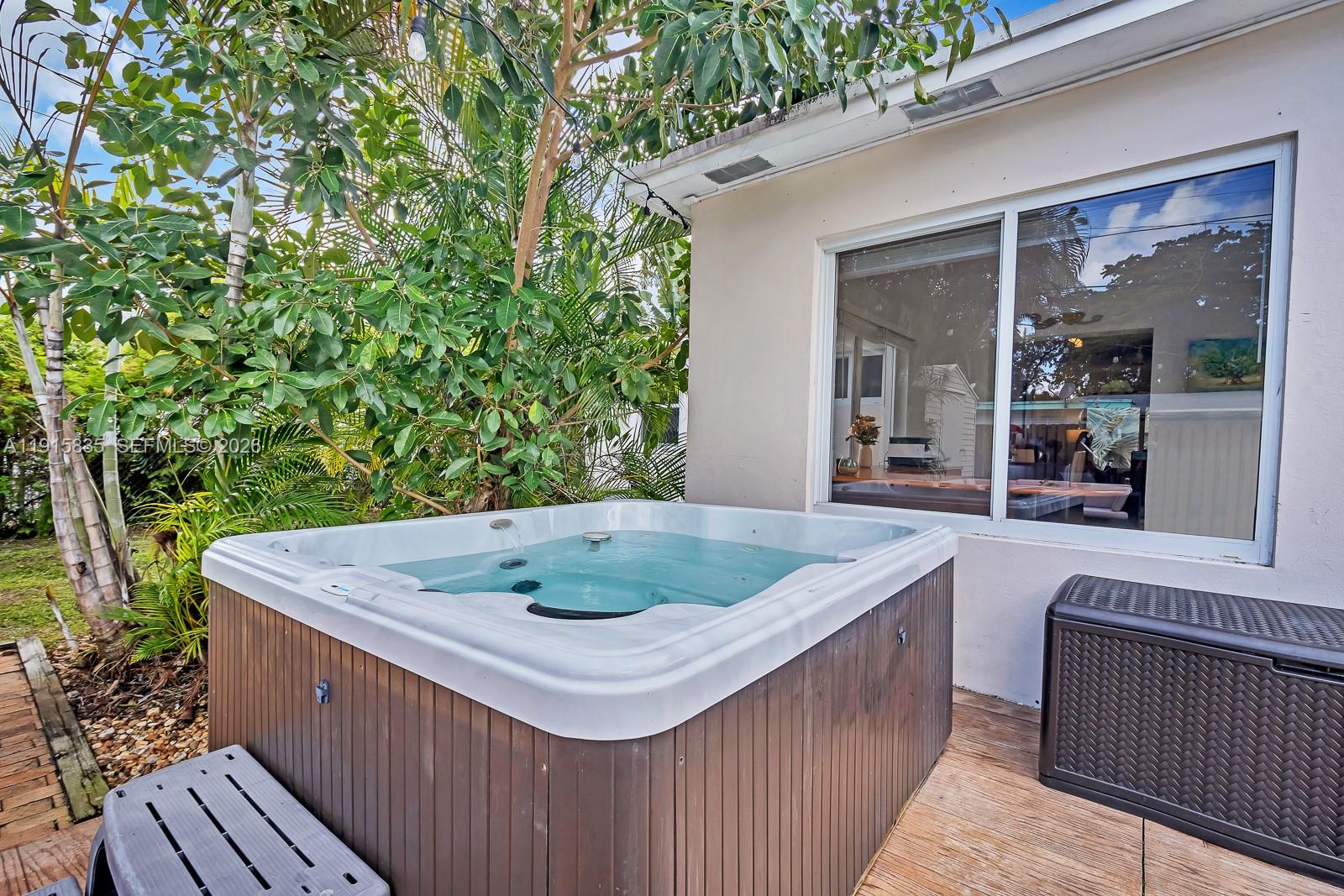 Welcome to your private tropical paradise in the heart of Hollywood’s best-kept secret - Lawn Acres. This 3-bed, 2-bath home sits on a 7, 146 sq ft lot, surrounded by lush landscaping and tree-lined streets with a canopy of mature oaks. Step inside to 1, 630 sq ft of bright living space, featuring impact windows and doors, laminate vinyl and ceramic tile floors, and an office/den perfect for remote work. The fully updated 2020 kitchen shines with SEKTION minimalist cabinetry, soft-closing drawers and doors, quartz countertops, and stainless steel appliances. The outdoor space is a true entertainer’s dream: 2020 resurfaced pool with a solar cover, fiberglass hot tub, stamped concrete pool deck, separate storage shed, and plenty of space to lounge or host under the stars. A rare gem find!