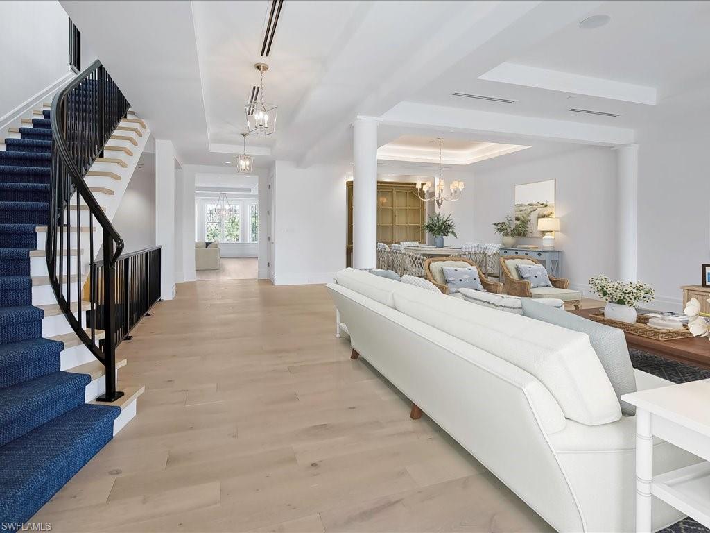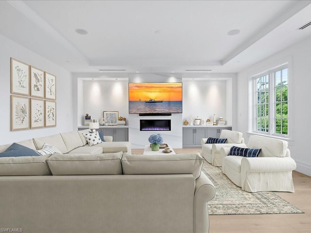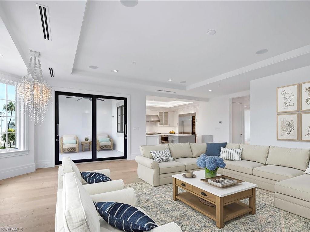 A rare blend of refined coastal living and downtown allure awaits at Seven Hundred Forty-five Twelfth Avenue South, Residence One Hundred Two, an exquisitely crafted townhome in the coveted enclave of Le Petite Trianon. Just steps from the boutiques and dining of Crayton Cove, this residence offers more than four thousand three hundred square feet of thoughtfully designed living space, built in twenty nineteen with an uncompromising commitment to quality. Two private access points, including a discreet entry through the oversized two-car garage and a private elevator, create a welcoming sense of exclusivity from the moment you arrive. The main level unfolds with beautifully proportioned living, dining, and entertaining spaces anchored by rich hardwood flooring and framed by natural light. A custom chef’s kitchen showcases a Sub-Zero refrigerator and wine column, Wolf appliances, bespoke cabinetry, and refined stone surfaces, all perfectly positioned for both intimate evenings and lively gatherings. The second level continues the home’s graceful flow with three luxuriously appointed bedrooms, a stately library, and a balcony overlooking the charm of Crayton Cove. Marble-clad baths and elevated finishes add polish to each space. A sculptural spiral staircase leads to the private rooftop terrace, an exceptional vantage point offering sweeping views of Naples Bay and the option to incorporate a spa for resort-style relaxation. Crafted for those who value privacy, elegance, and walkability, this residence places you moments from Naples’ celebrated marinas, galleries, waterfront dining, and the vibrant energy of Third Street South. Le Petite Trianon delivers a lifestyle that is both sophisticated and effortless, where refined design and an incomparable location come together in the heart of downtown.