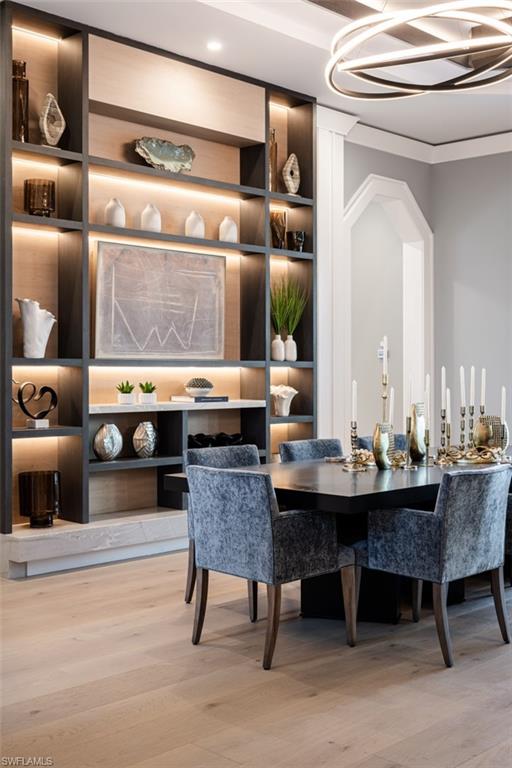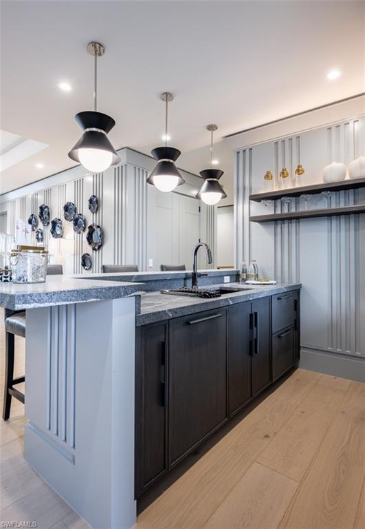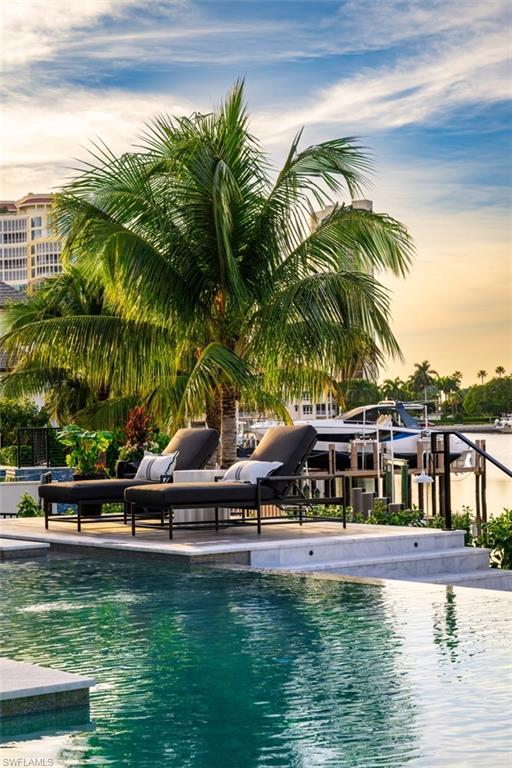 Indulge in the pinnacle of coastal luxury with this spectacular new-construction estate, perfectly positioned on the shimmering bay in prestigious Park Shore. Masterfully crafted to evoke the ambiance of a world-class resort, this breathtaking residence blends architectural excellence with sweeping white-water views, creating an unmatched living experience in one of Naples’ most coveted waterfront enclaves. From the moment you enter, walls of glass draw your eye directly to the bay. Every room is thoughtfully designed to blur the line between indoors and out, capturing the essence of elevated Florida living at its finest. The primary suite is a sanctuary of indulgence—an expansive retreat featuring a tranquil sitting area and spa like bath offers a true rejuvenation experience with multiple showerheads, exquisite stonework, and custom cabinetry that showcases both craftsmanship and elegance. Massive walk-in closets with beautifully executed built-ins provide unparalleled storage and display. The culinary spaces are equally extraordinary. Anchored by a professional gas range and multiple ovens, the showstopping chef’s kitchen is complemented by a full butler’s kitchen, walk-in pantry, beverage center, and an elite suite of top-tier appliances. Multiple dining areas—both formal and casual—flow seamlessly into sophisticated gathering spaces enhanced by custom fireplaces, designer lighting, soaring ceilings, and impeccable architectural detail. The outdoor living experience rivals the world’s finest resorts. Vast, covered terraces overlook the wide bay, inviting you to unwind in multiple lounge and conversation areas. The outdoor kitchen is fully equipped for open-air entertaining, while the resort-style pool—framed by panoramic water views—creates a dramatic focal point that transforms each sunset into a private show. A private elevator, four-car garage, loft area, executive office, and beautifully appointed guest suites complete this one-of-a-kind offering. Every finish has been curated with precision, every detail executed to perfection, and every space designed to elevate your lifestyle. This is more than a home—it is a statement of luxury, craftsmanship, and refined waterfront living, delivering the ultimate resort-style experience in the heart of Park Shore. Brought to you by Knauf Koenig Builders, Falcon Design Inc. and Clive Daniel Homes.