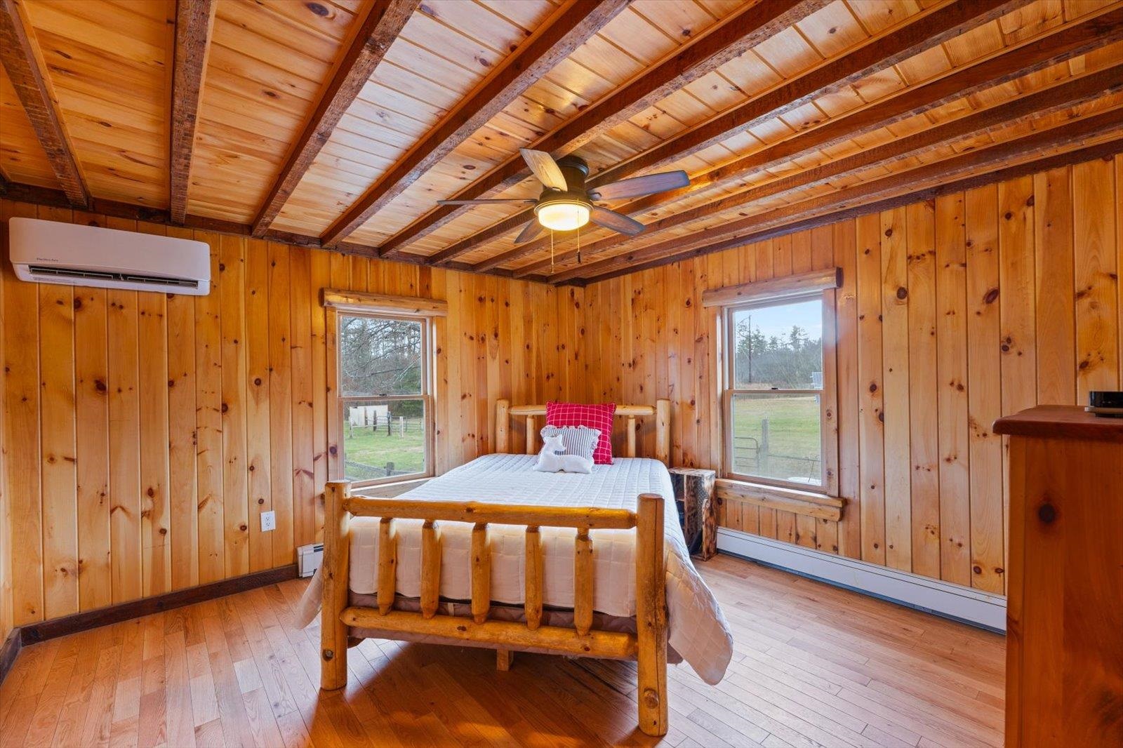 Real Country Living in an antique post & beam farmhouse on 11+ acres, COMPLETELY remodeled for efficient modern life. The 2, 200 sf home (town tax card not updated) completely reimagined over 7 years. On rolling pastureland, the home was stripped to its beams, insulated, and white cedar log sided on the exterior. Pine tongue & groove on the inside; Standing-seam metal roof will last indefinitely. Owned freestanding 9 KW solar array supplies 90% of power needs. The baseboard heat is rarely used with help of the pellet stove in the great room. Hybrid hot water heater in impeccably kept basement. A beautiful new kitchen with quartz countertops, and stainless Whirlpool appliances. Hardwood floors throughout. First floor primary bedroom ensuite, a window-filled living room and the home’s cheese room round out the first floor. Three bedrooms and an additional bonus room are split over the main house and drive-through oversized multi-car garage (4 doors including auto lift). Exterior doors feature air lock vestibules. With a unique western ranch feel, the details of the home are extensive. First right of refusal on 2 additional lots with frontage on Forest Lake Rd. including driveway permits and town water available for sale. Forest lake & Mountain Views with a combination of forest, pasture and wetlands on the property…. habitat supports a myriad of wildlife. Fences in place for Horses? Sheep? or a pack of canine family members. Clean air and open space in SW NH close to VT & MA.
