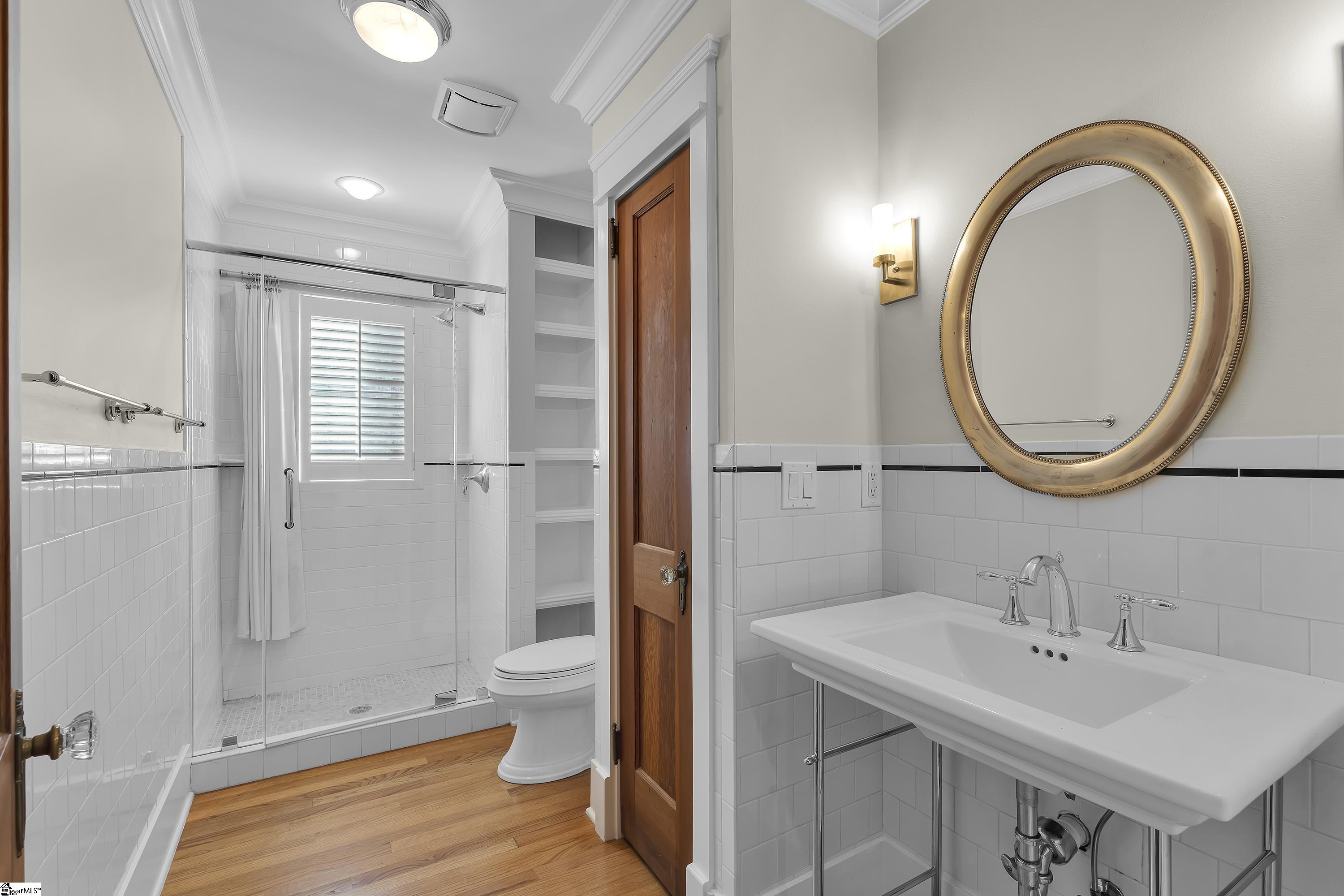 This truly is the one you have been waiting for!!!! 607 Crescent Avenue is everything you have dreamed of and then some and is located on the most prestigious street in all of Greenville SC and is within walking distance to downtown, the Swamp Rabbit Trail, Cleveland Park, only 100 yards to Afton Park, walk to the YMCA and also all that Augusta Road has to offer as well!!! This classic Brick Bungalow oozes with character both inside and out and from the moment you see this Alta Vista Charmer you will fall in love!!!! As you enter the home from the custom Belgard Paver driveway you will appreciate the large covered front porch complete and with a hanging copper gas lantern. Upon entry of the home you will love the Oak hardwood floors throughout and the amazing details throughout that include beautiful moldings, multiple built-ins, multiple renovations performed throughout most recent years, an incredibly entertainment friendly floorplan with an open kitchen and dining room concept that flows well to the side and rear covered access porches with stone pavers and the kitchen leads right out to your own private Loggia with a brick walkway entrance into the stone patio Loggia area that is large enough in size for both dining and relaxing which is all surrounded by your mature and lush landscaping with irrigation already installed! The main level also has a large living room with a one of a kind coffered tray ceiling, a full wall of built-ins and a gas fireplace! The gourmet kitchen is open to the dining or breakfast room area and features custom cabinetry, a custom tiled backsplash, quartzite countertops, a classic stainless double sink (all appliances including a beverage fridge remain) plus an entertainment and prep center island with butcher block countertop!!! Additionally on the main level there are two bedrooms that share a full bath just off the living room, a well appointed wet-bar with custom wine racks and a powder room as well! The luxurious master suite has been fully renovated and is upstairs which creates incredible privacy and comes with features such as a vaulted ceiling, beautiful oak hardwood floors, multiple storage areas, walk in closets with built-ins, a craft room or dressing room, a private laundry room and even an additional large private office space (that could also serve as a den or nursery area). The master bathroom has been renovated and comes with dual vanities, a soaking tub with exposed fixtures, a walk-in shower with multi jets, built-in shower bench, a private water closet and ample storage as well! Additional features you don’t want to miss are a central vacuum system, half barrel copper gutters, plantation blinds, alarm system, incredible storage throughout, the fully fenced in yard with custom wrought iron gate, stone ledges on all of the beautiful garden beds, the detached two car garage, this list goes on and on! You do not want to miss this incredible opportunity at a price such as this to get on Crescent Avenue, come see for yourself today!!!