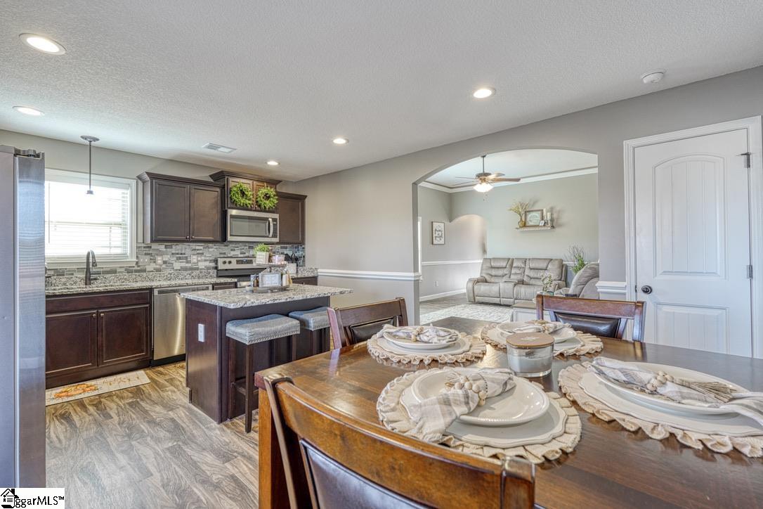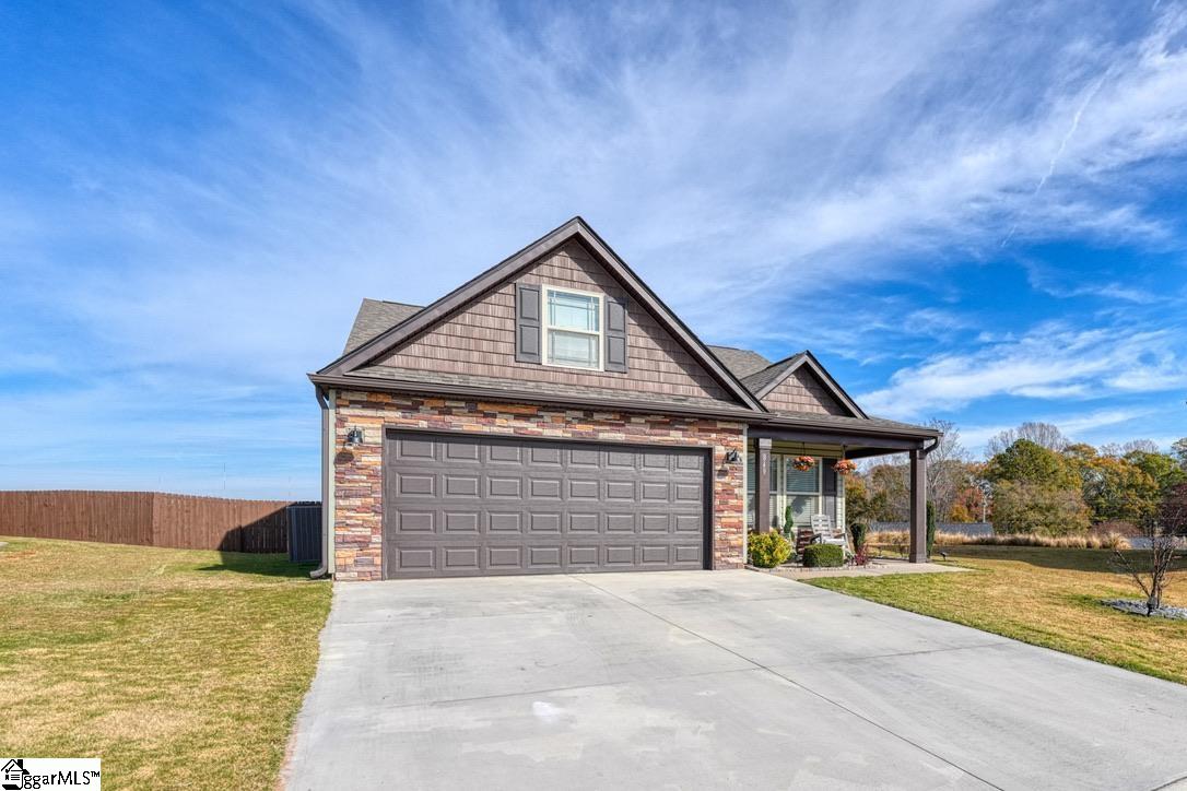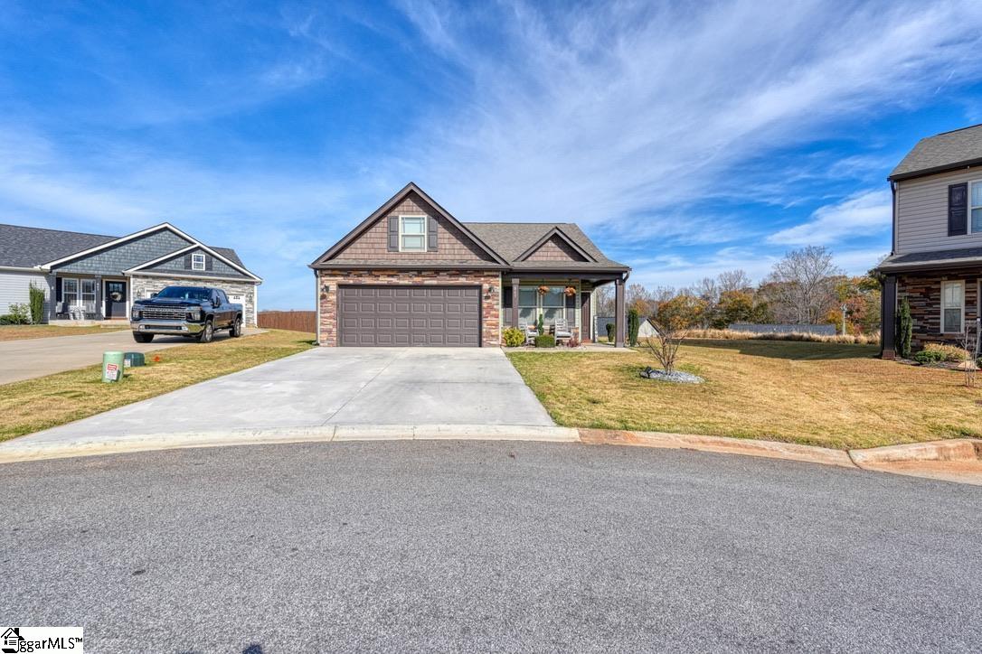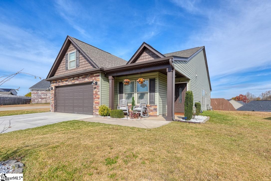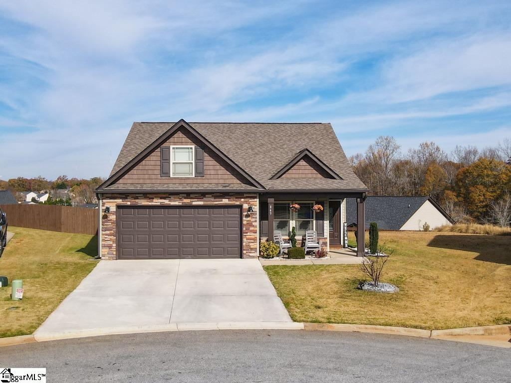 Discover craftsman charm and everyday convenience in this inviting 3 bedroom/2 bathroom home tucked at the end of a quiet cul-de-sac in North Village of Boiling Springs. The welcoming foyer leads you into the heart of the home—a spacious living room anchored by a cozy gas log fireplace, framed with beautiful arched doorways and featuring accent lighting that creates the perfect ambiance. The kitchen offers both style and functionality with a kitchen island featuring bar seating, a smooth cooktop, built-in microwave, large sink, dishwasher, and a breakfast area perfect for casual meals. The primary suite is a relaxing retreat with a trey ceiling, walk-in closet, and an en-suite bathroom complete with a double sink vanity and a walk-in shower. Two additional bedrooms and a full hallway bathroom provide comfortable space for family, guests, or a home office. A walk-in laundry room adds extra convenience. Make your way outside to enjoy the large fenced-in backyard from the spacious deck, which includes both an open area for grilling and a covered section ideal for year-round relaxation. Beautifully maintained and thoughtfully designed, this craftsman-style home offers comfort, charm, and a prime location—ready for you to make it your own.