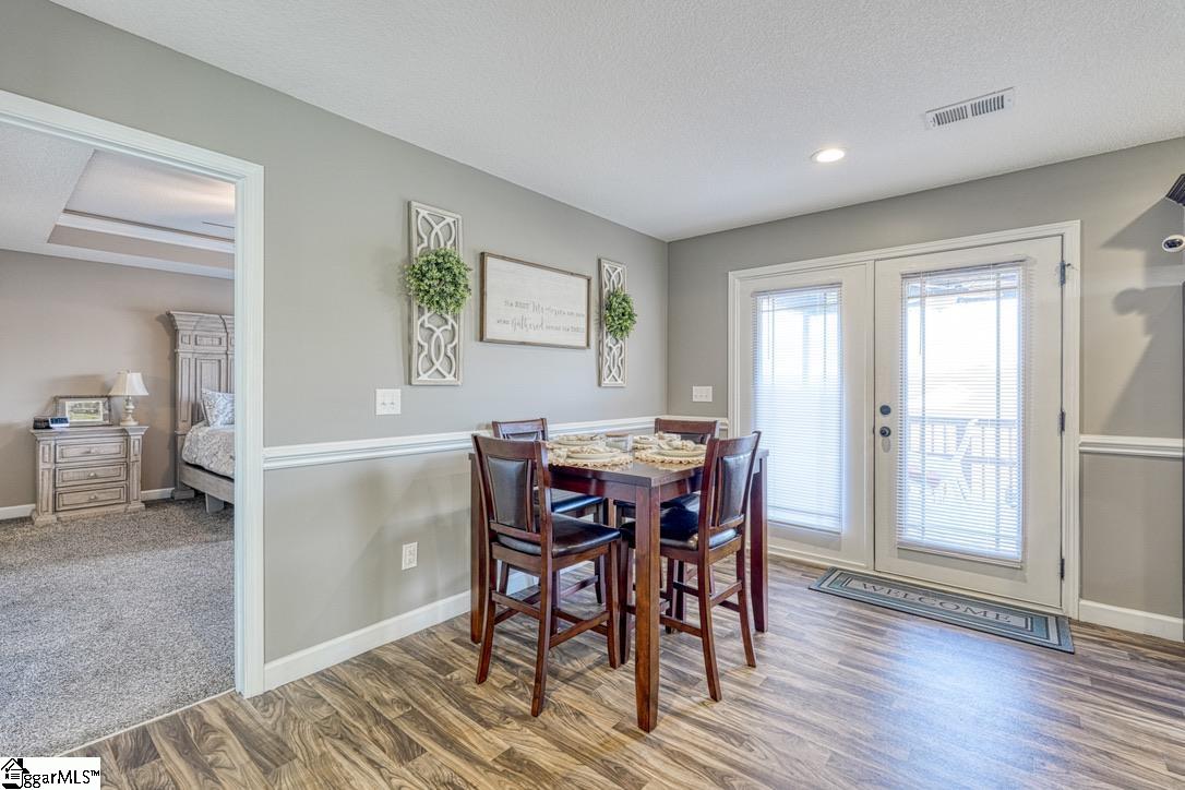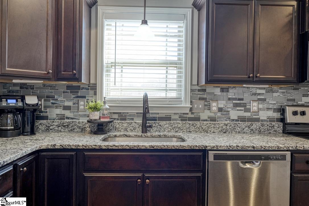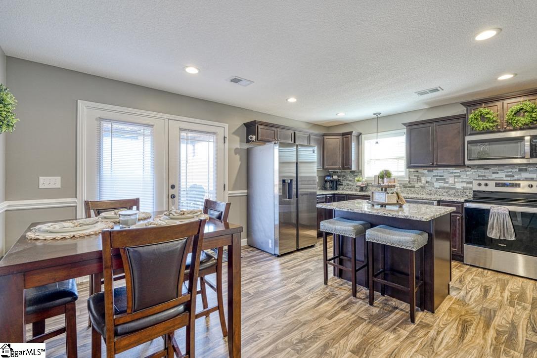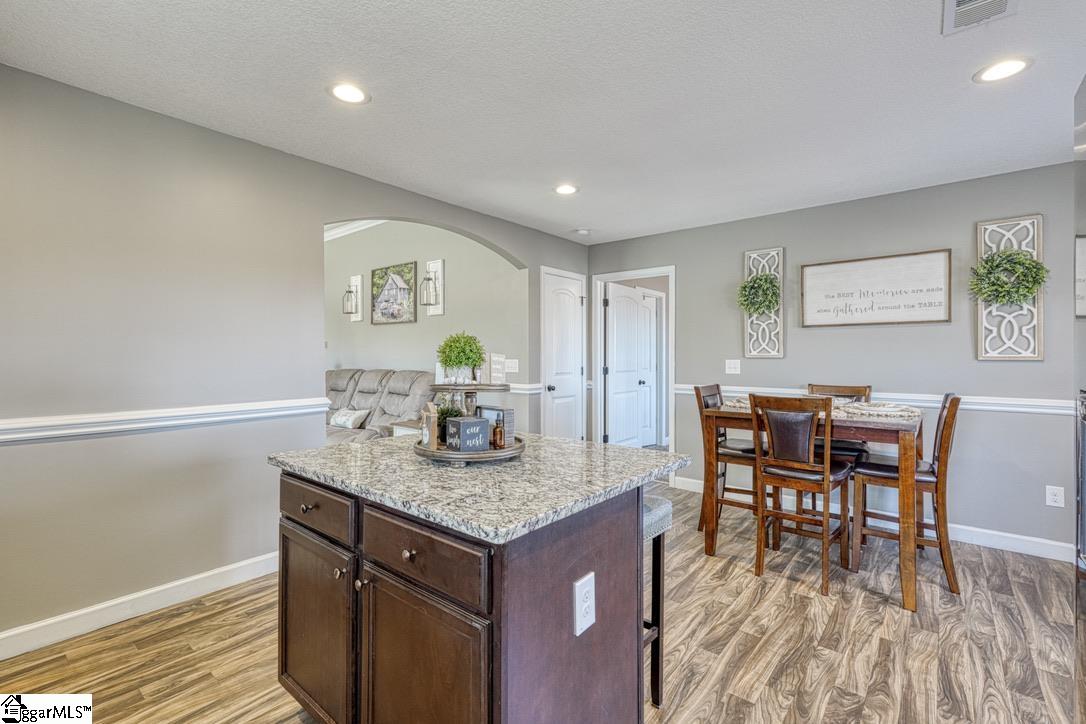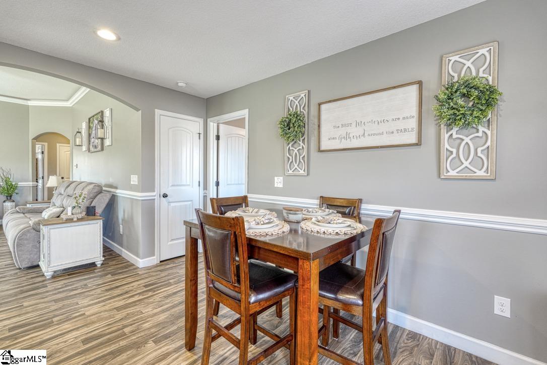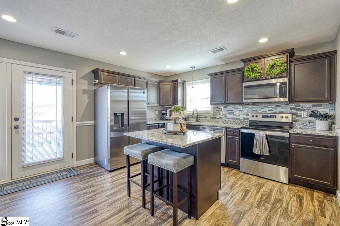 Discover craftsman charm and everyday convenience in this inviting 3 bedroom/2 bathroom home tucked at the end of a quiet cul-de-sac in North Village of Boiling Springs. The welcoming foyer leads you into the heart of the home—a spacious living room anchored by a cozy gas log fireplace, framed with beautiful arched doorways and featuring accent lighting that creates the perfect ambiance. The kitchen offers both style and functionality with a kitchen island featuring bar seating, a smooth cooktop, built-in microwave, large sink, dishwasher, and a breakfast area perfect for casual meals. The primary suite is a relaxing retreat with a trey ceiling, walk-in closet, and an en-suite bathroom complete with a double sink vanity and a walk-in shower. Two additional bedrooms and a full hallway bathroom provide comfortable space for family, guests, or a home office. A walk-in laundry room adds extra convenience. Make your way outside to enjoy the large fenced-in backyard from the spacious deck, which includes both an open area for grilling and a covered section ideal for year-round relaxation. Beautifully maintained and thoughtfully designed, this craftsman-style home offers comfort, charm, and a prime location—ready for you to make it your own.