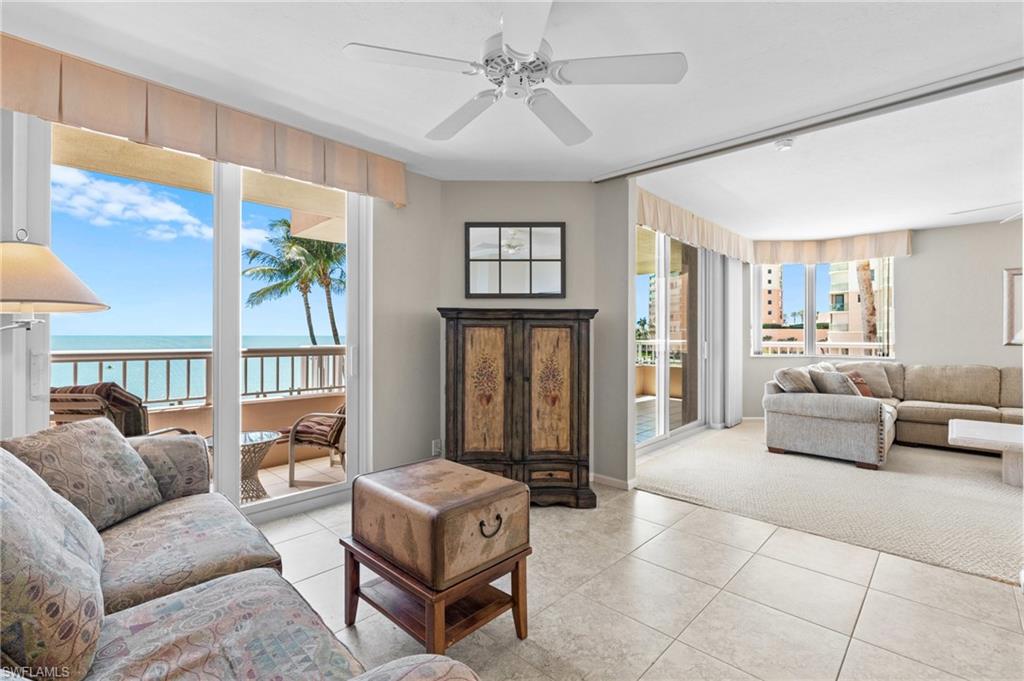 Welcome to Merida at Cape Marco, where luxury meets breathtaking views in this stunning southwest corner unit. Spanning 1, 756 sq. ft. , this 3-bedroom, 3-bathroom condo offers panoramic vistas of Caxambas Pass and the Gulf both from the living room and the expansive wrap around balcony. The master suite boasts its own private balcony, providing additional serene water views. The kitchen and master bath have been thoughtfully updated, and the third bedroom, currently furnished as a den, includes its own closet and bathroom, offering versatility and comfort. Impact-resistant windows and doors ensure peace of mind. Cape Marco residents enjoy a host of amenities, including a tennis clubhouse with a social room, fitness center, and a common dock with fishing and day docking facilities. A private wraparound walkway grants exclusive access to the pristine Marco Island Beach.
