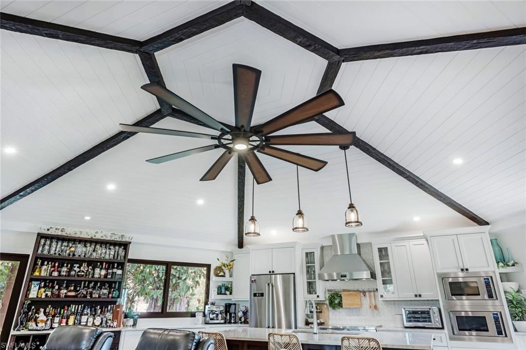Welcome home to your PRIVATE GULF ACCESS RETREAT! Adorned by lush landscaping, this home offers ultimate peace and tranquility. Centrally located on a private canal and minutes from Historic Downtown Bonita Springs, this home is perfect for full time living OR a winter get-a-way! Minutes to the Gulf BY BOAT, this is YOUR opportunity to experience Southwest Florida living at its finest. The quality of this home is unmatched as it has been COMPLETELY remodeled with the FINEST finishes. Home features a 7, 000-pound boat lift with a canopy (2021) AND stunning outdoor space - including BRAND NEW fire pit and pavers, a cedar outdoor bar and pergola (2021), expanded patio pavers (2021), new composite decking at the dock (2021) and 165 foot seawall. Ideal for entertaining, the interior of the home has been thoughtfully designed to enjoy views of the outdoors ALL YEAR LONG. Kitchen features a HUGE island, quartzite countertops, Fulgor appliances, TWO microwaves, a dry bar with a wine cooler and SO MUCH MORE! Kitchen, living and dining areas are open to one another with high-end wood-like tile throughout the home. Primary bathroom features dual sinks and a walk-in shower while the guest suite features custom made Italian marble. All windows and doors are hurricane impact PLUS all electric has been rewired underground, plumbing has been replaced, newer Mitsubishi AC installed, tankless water heater, aluminum riveted roof, AND all walls and ceilings were sprayed with foam insulation – ALL done in 2021! This house is like NEW! Spend your mornings sipping coffee dockside while enjoying visits from dolphins and manatees. Enjoy your evenings stargazing on your patio OR next to your fire pit with a cocktail in hand. The possibilities are TRULY endless as you can BOAT to both Naples AND Fort Myers beaches and restaurants! Bring YOUR BOAT and head to the Gulf! Burgeoning Downtown Bonita Springs boasts eclectic restaurants, coffee/wine bars, craft cocktail bars, craft breweries and a new music venue. The arts are alive in Bonita, with plenty of festivals, artist cottages, music in the downtown amphitheater - all just a short bike ride or boat ride from this home. PLUS, only a 10-minute drive to Barefoot Beach (BUT you will likely spend your time at the PRIVATE beaches ONLY accessible by BOAT). DO NOT miss YOUR opportunity to experience all that Bonita Springs has to offer, ESPECIALLY in a home!