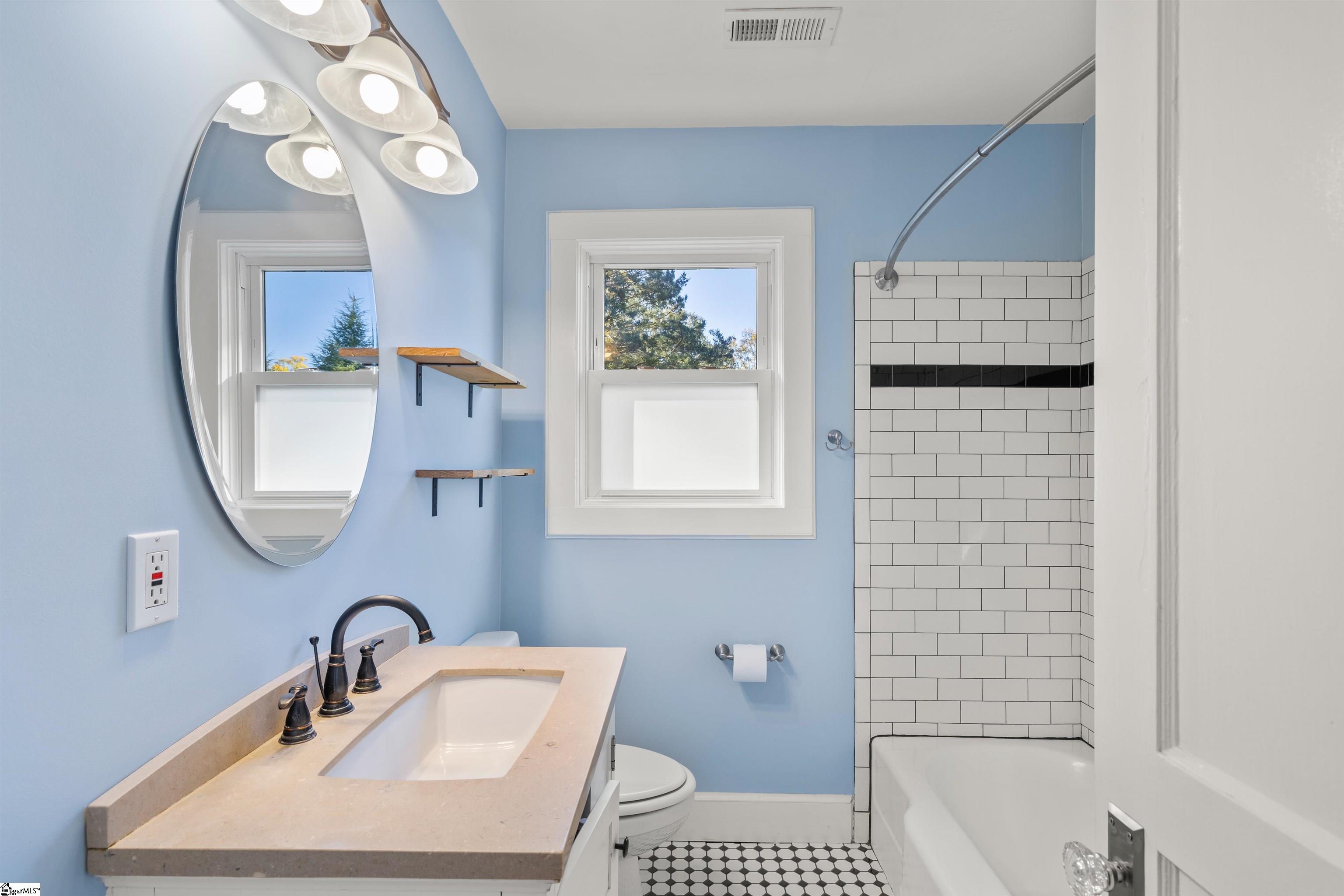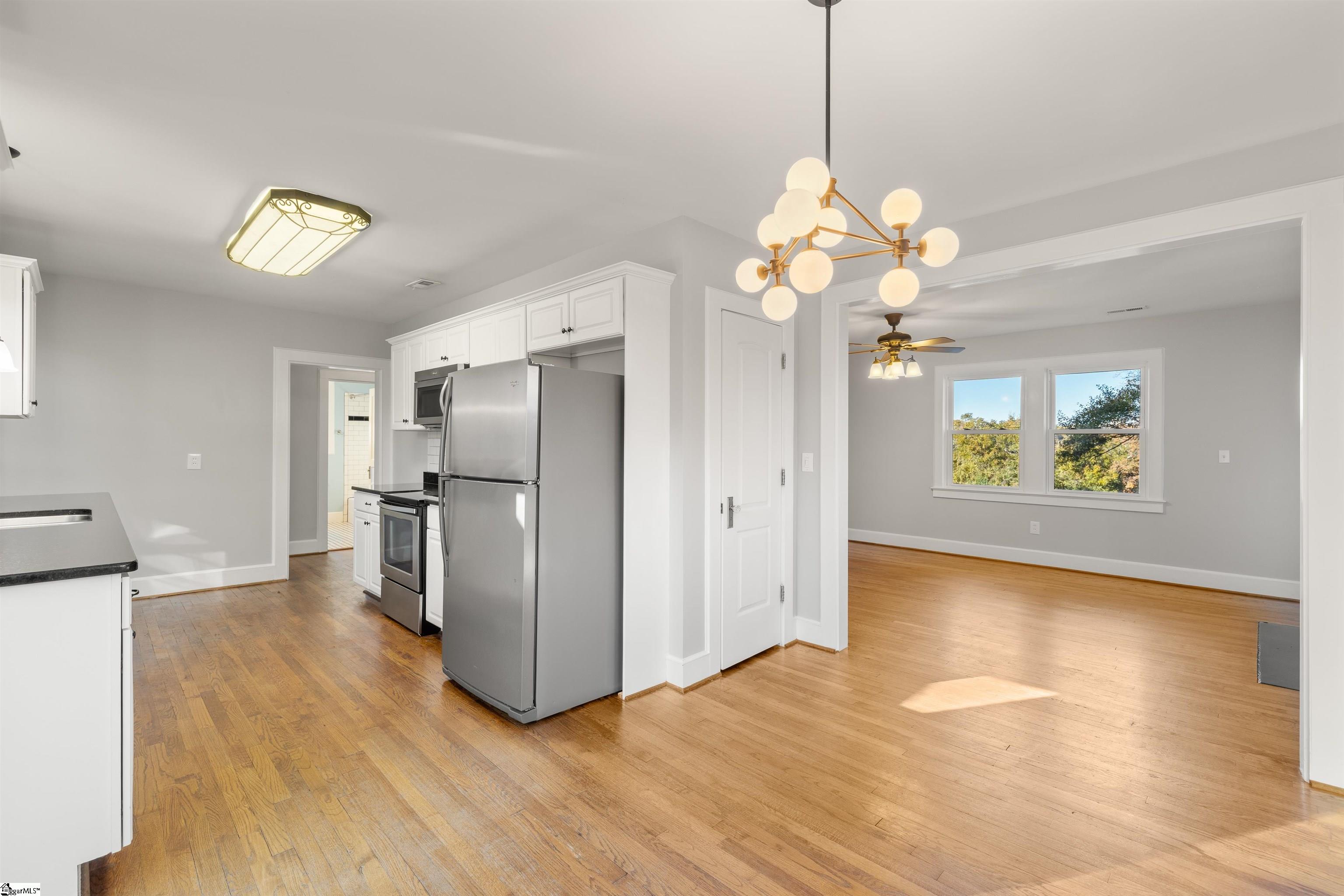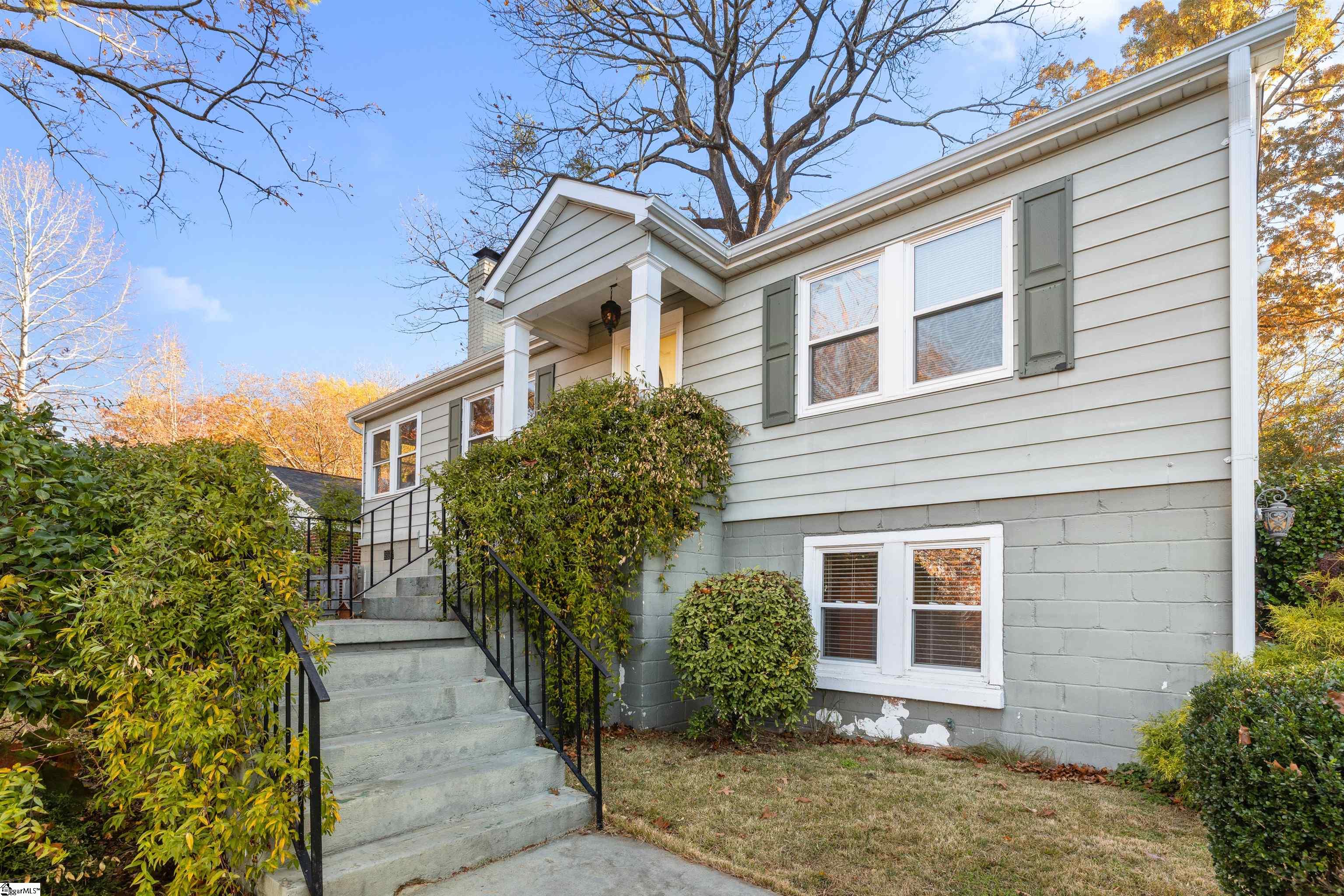 Discover a rare opportunity in one of Greenville’s most walkable and beloved neighborhoods. This property features a massive fully fenced yard, perfect for families with young children, pet owners, or anyone who loves outdoor living. The home, sitting on a double lot, offers an incredible potential to subdivide, build an additional home, or expand…a unique find so close to downtown. While on the stone patio, enjoy beautiful city views and take in stunning sunsets. The property also includes private alley access, a spacious driveway, and a separate garage/workshop ideal for storage, hobbies, or creative projects. For nature lovers, the yard hosts a budding food forest with grapes, figs, olive and apple trees, plus cedar raised beds. Also, native seasonal blooming trees as well as pink redbuds, Japanese maples, butterfly bushes and hydrangeas. The interior of the home holds just as much charm! Offering 4 large sized bedrooms and 2 full bathrooms, the magic is in the details: solid wood doors with crystal knobs, gas fireplace, two living spaces plus a sunroom with loads of natural light, vintage style tile in the bathroom, a laundry chute, and a drop station by the back door. Situated within easy walking distance to the Swamp Rabbit Trail, Greenville Zoo, Cleveland Park, and vibrant downtown Greenville, this home puts the best of the city at your doorstep. Favorite local restaurants, including Rocky’s Hot Chicken, Willy Taco, and Hometeam BBQ, are just a short stroll away. With no HOA, city provided trash pickup, a Free Little Library on the front curb, and unmatched outdoor space, this property offers freedom, comfort, and incredible potential in a prime Greenville location.
