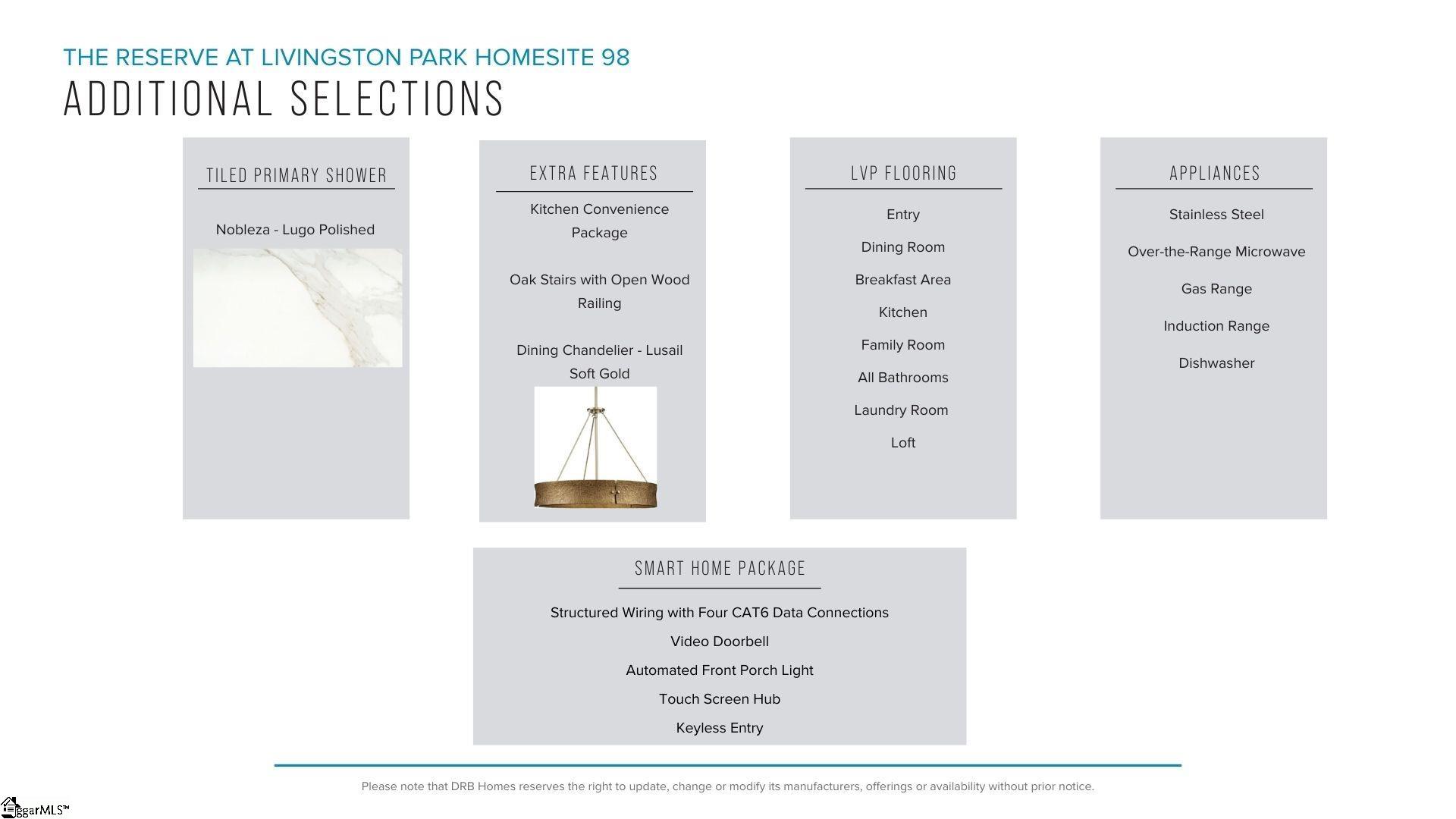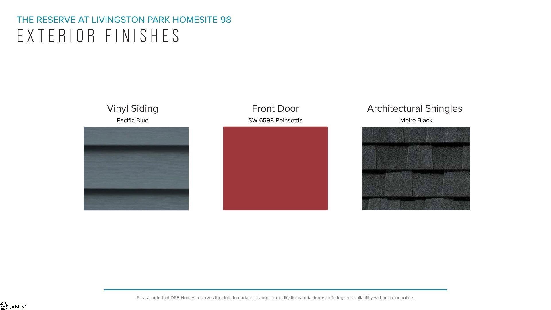 Welcome to The Reserve at Livingston Park! We are the only new homes in Easley with upscale features just off Hwy 123. The Drayton home features over 2800 square feet of functional living space, perfect for entertaining. Upon entering from your covered front porch, you are greeted witha welcoming foyer that shows how open and bright the home is. Adjacent to the entry is a bedroom and full bath, perfect for a guest suite or even a home office. The formal dining room with coffered ceilings leads into the spacious and modern kitchen featuring beautiful soft white cabinetry and Quartz countertops, tiled backsplash, under cabinet lighting, double door pantry, center island, and stainless steel gas appliances. The extended breakfast nook leads out to the covered back porch which overlooks your large backyard making it a perfect place for summer cookouts. The airy family room features high ceilings and tall windows giving the room lots of natural light along with a gas fireplace for those cozy winter nights. Up the Oak staircase you come to the spacious Primary Suite which features double sinks, generous walk in closet and an amazing Roman tiled shower with two showerheads, seat and frameless glass door. Two additional bedrooms, a full bath with double sinks, large loft space, and convenient upper-level laundry room complete the second floor. Smart home technology, energy-efficient design, and a dedicated local warranty teamensure long-term comfort and convenience. The Reserve at Livingston Park is conveniently located in the sought after Easley, SC area only 11 miles from downtown Greenville and 20 miles from Table Rock, Clemson University, Lake Hartwell, and Lake Keowee. Behind the community, the mile-long phase 1 of the Brushy Creek Greenway Trail leads directly to the impressive J. B. Owens Recreation Complex. Enjoy shopping in the rapidly growing city of Easley and nearby Powdersville. Access to sought-after schools, ample employment, easy commuting, and Interstate 85. Located near plenty of shopping, restaurants, and parks on the Highway 123 corridor including the Doodle Trail and Nalley Brown Nature Park. This home is almost complete so come by today for your personal tour and make The Reserve at Livingston Park your new home!