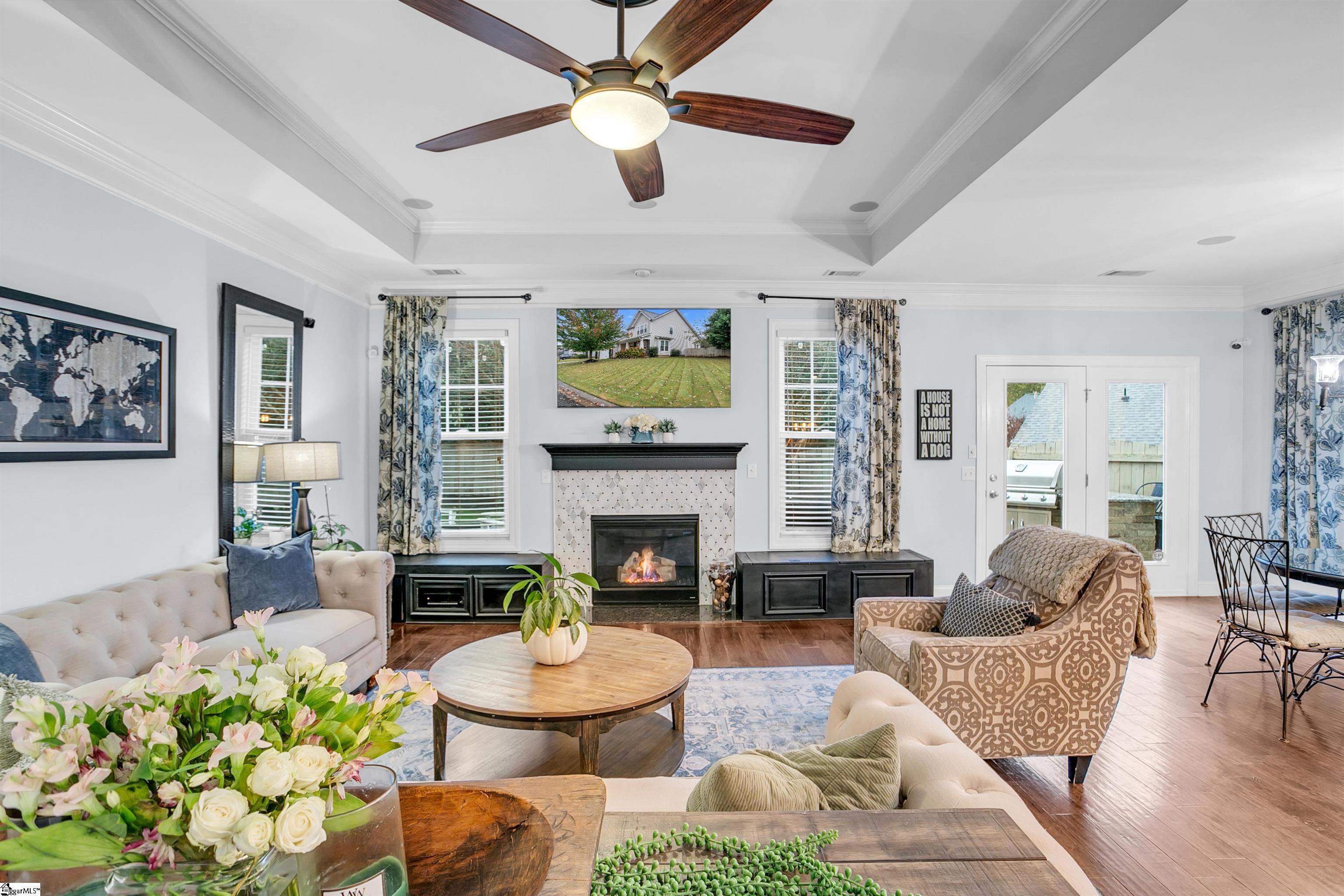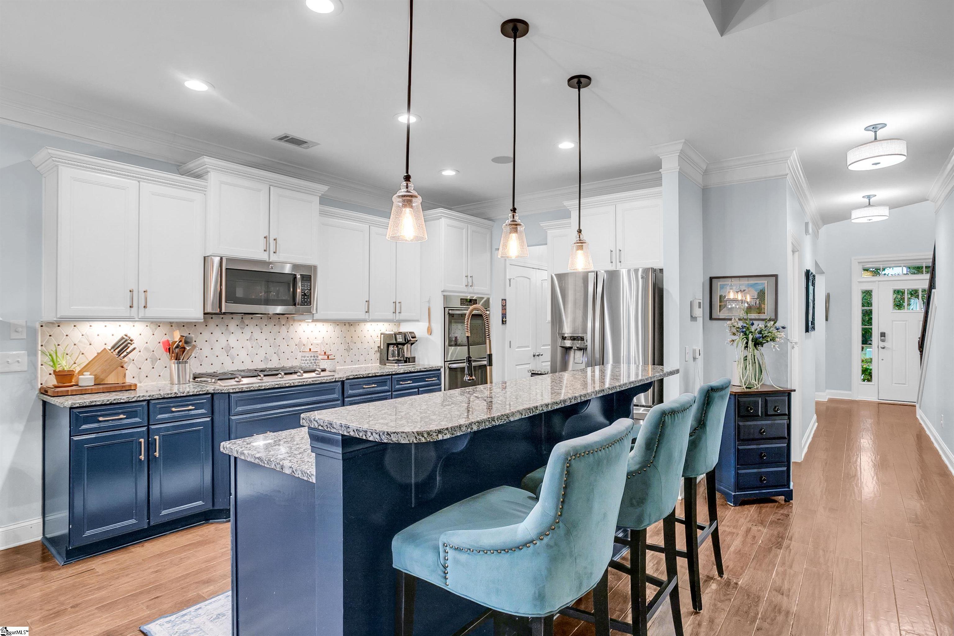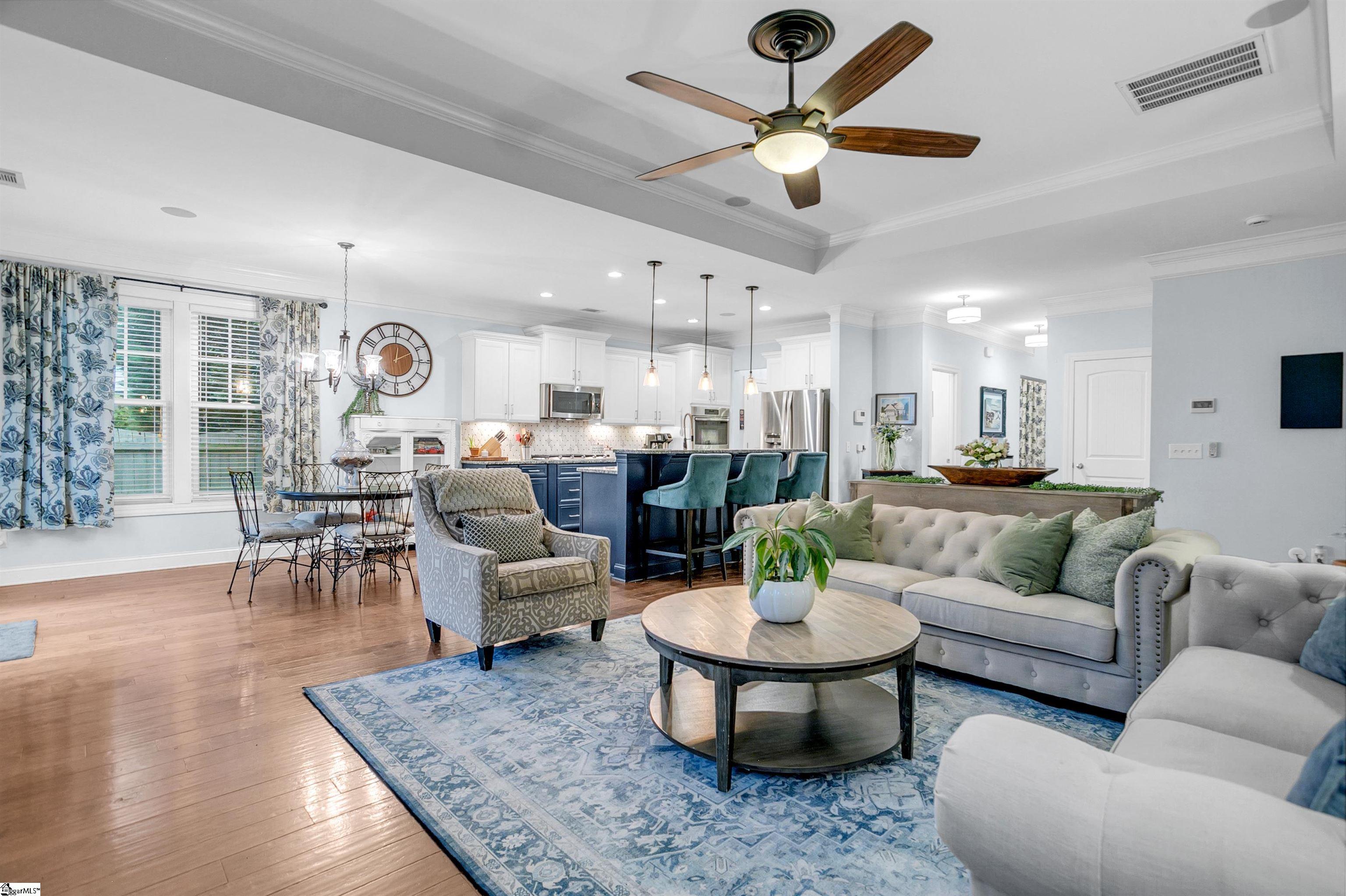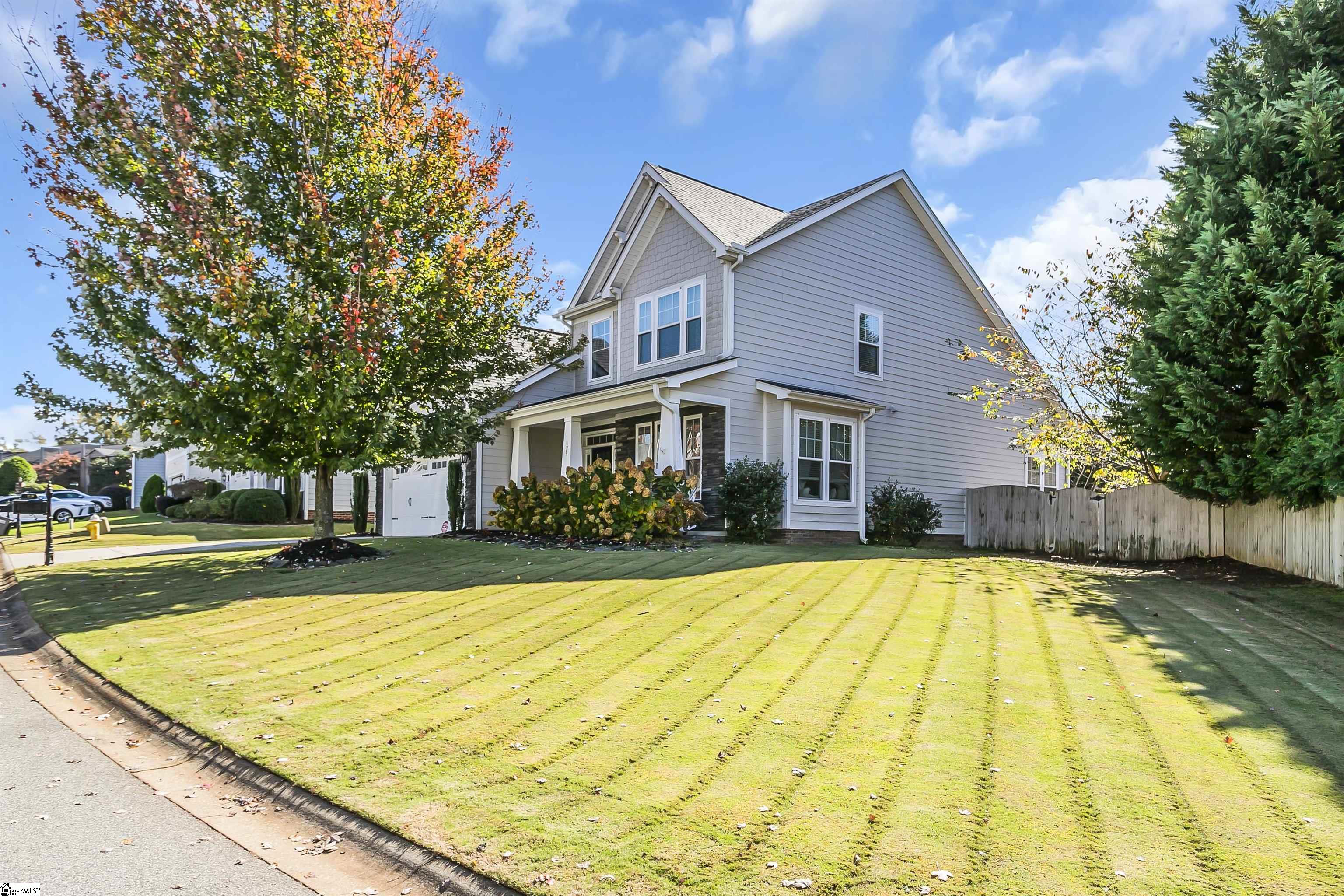 Location, location, location! Welcome to your dream home in The Cove at Butler Springs, a quiet neighborhood with direct access to Butler Springs Park—offering tennis, pickleball, walking trails, and multiple playgrounds and baseball fields (walkable to your child's Wade Hampton Little League games or practice)—all just minutes from downtown Greenville, Patewood Medical Complex, I-385, and much more. This spacious 4-bedroom, 3½-bathroom southern classic with craftsman flair boasts over 2, 800 square feet, a new roof (2024), and a large second living area upstairs that qualifies as a legal fifth bedroom—perfect for entertaining with a pool table and media setup. The two-car garage provides ample storage, and the home has been meticulously maintained with extensive custom enhancements: a spa-like marble-tiled shower and bath in the primary en suite, custom closets in both the primary and upstairs en suite bedrooms, designer lighting throughout, built-ins in the office/flex space and living areas, a custom Murphy bookcase door on the upstairs smaller bedroom (ideal for a child’s room, office, or in-home speakeasy), and a fully updated kitchen and butler’s pantry featuring a marble mosaic backsplash, two-toned cabinets, and upgraded hardware. The great room showcases custom media cabinetry and a dual-zone speaker system with hidden wiring for a sleek, modern look. Step outside to a backyard oasis with a bespoke Belgard paver patio, a natural gas-plumbed stone grill island and fire pit topped with granite that matches the rest of the home, surrounded by beautiful, mature cherry trees, a full privacy fence, in-ground sprinklers, and coordinated flagstone flower beds—perfect for relaxing or entertaining. Come see 29 Kittery Drive today and experience luxury, convenience, and lifestyle all in one unbeatable package.