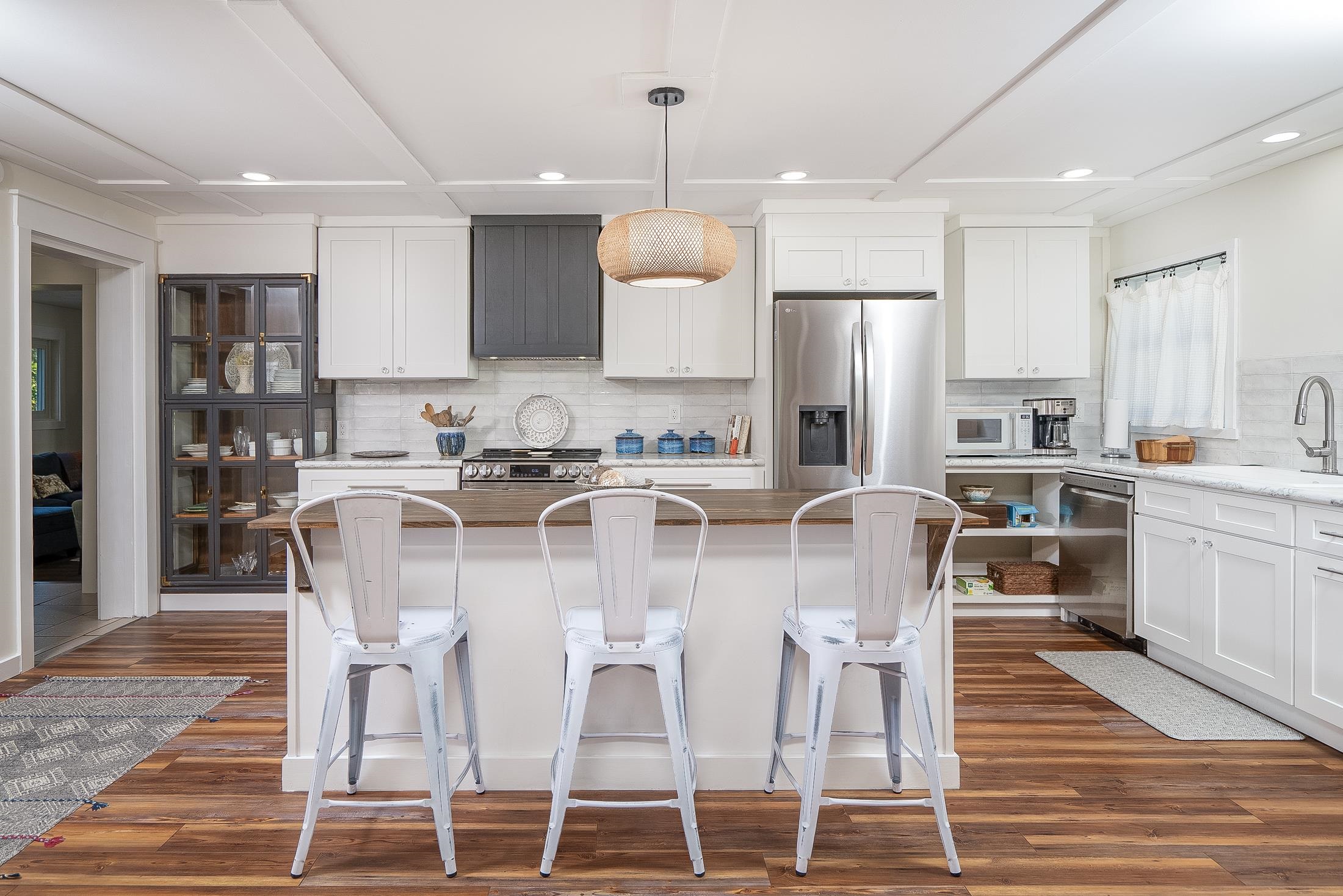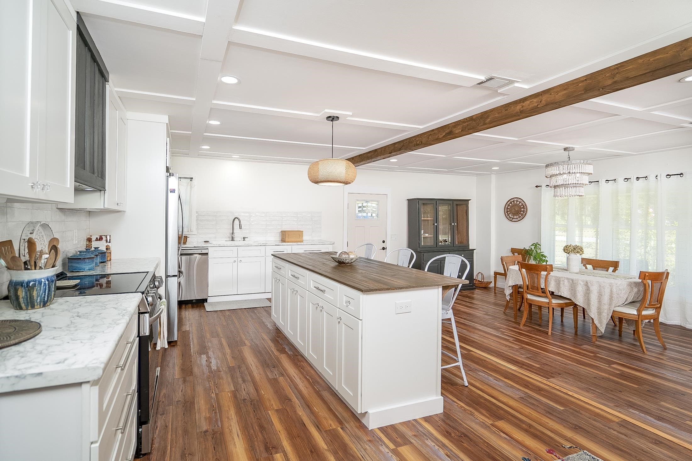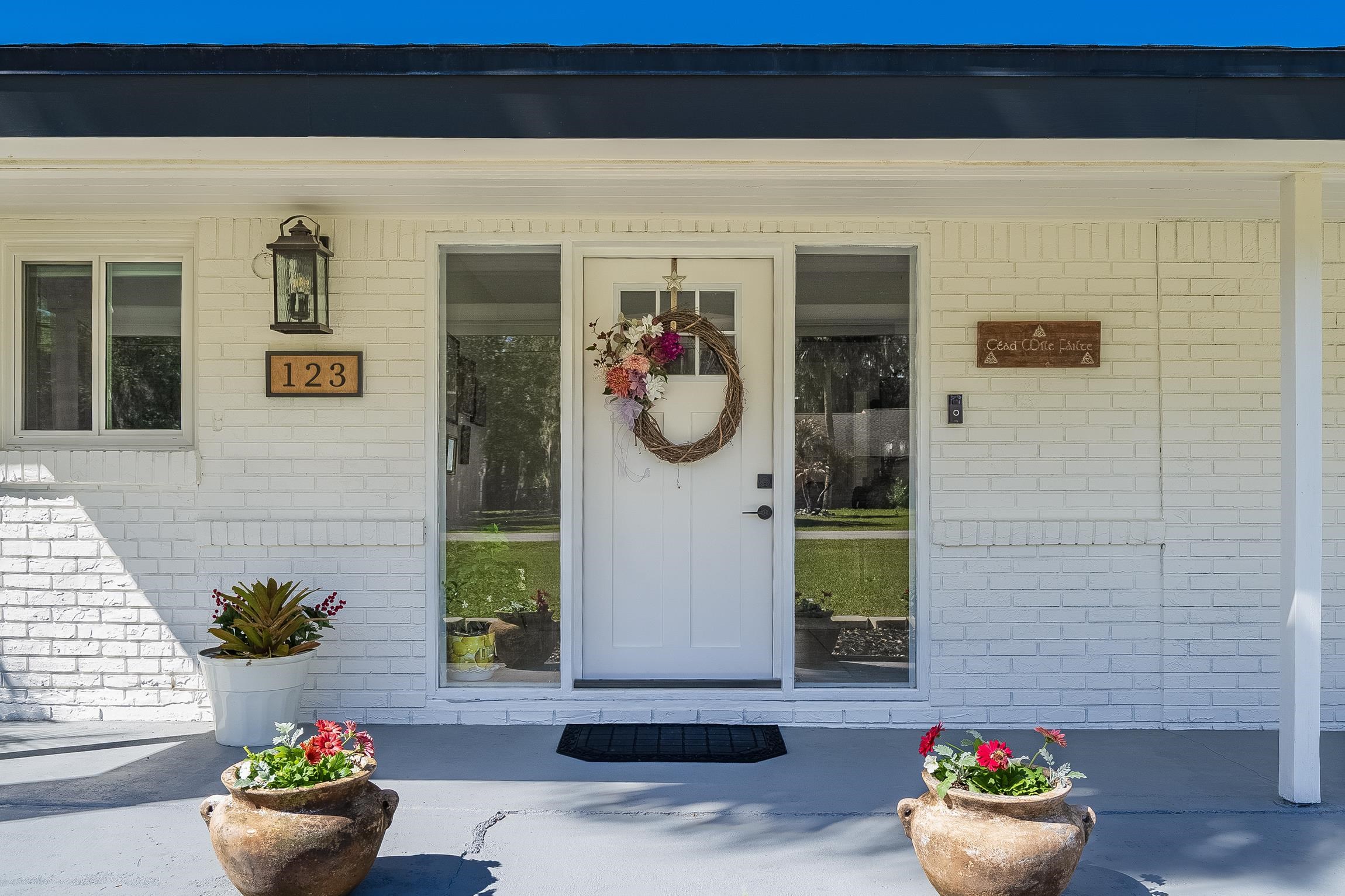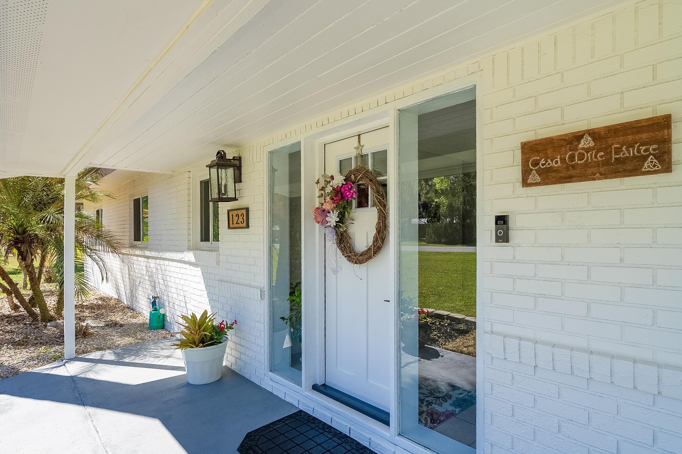 From the outside, this sweet mid century modern ranch looks like an inviting cottage but step inside this spacious, lovingly renovated 3-bedroom, 2-bath home and be prepared to be wowed! With approximately 2500 square feet of inviting living space, 123 Esperanza Grove Road offers a serene and beautiful setting for your dream retirement or busy family. Originally built in 1963, this property seamlessly blends timeless charm with modern upgrades. The updated kitchen and dining area features all new LG appliances, custom tile backsplash, custom dish cabinet, cast iron ceramic deep farmer’s sink, new lighting, new LVL flooring and white shaker cabinets perfect for large family gatherings or a quiet dinner for two at the custom island. The functional U-Shaped design is a cook’s dream with plenty of well organized storage and charm. The large primary suite offers plenty of room with a separate space that is currently used as an office but could also be a private sitting area exercise space. Complimenting this space is a beautifully-updated en-suite bath with custom tiled large walk in shower, and large walk-in closet. A second bedroom features a bright and beautiful sleeping area with it’s own sitting/dressing area cleverly separated by floor to ceiling curtains for extra guests, grandchildren or just a little privacy. Directly across from this room is the renovated second bath boasting beautiful shiplap, and a brand new tub/bath enclosure. The third bedroom on the opposite side of the living areas, offers another large, quiet space with three large windows that provide lots of natural light and direct access to the pool area. The current owner uses it as an art studio. The large living room provides plenty of space for relaxing and watching a movie or sports, playing a game or just relaxing and looking through the sliders to the beautiful pool area. The sunsets from this vantage point are breathtaking and on clear nights step outside to catch some shooting stars! The large laundry room offers a two year old LG washer and dryer set (included in the price), and plenty of space for a desk for paying bills, ironing center or sewing area. The custom frosted glass door allows plenty of light to enter the hallway areas, filled with interesting art. The workshop/garage is the perfect space for the DIY’er or hobbyist with a large, built in workbench, dedicated electric service, and a separate storage shed for all the extras! The property, previously part of an original citrus grove, offers 3/4 acre of land with fruit trees, a fenced in vegetable garden area, a large oak tree, and many perennials. Enjoy the peace and quiet of this home and neighborhood, just one block from the St. John’s River with a public boat ramp just 5 minutes down the road.