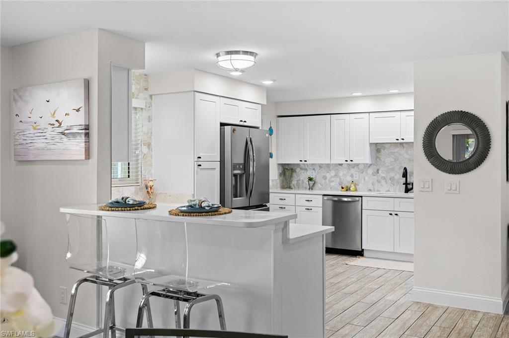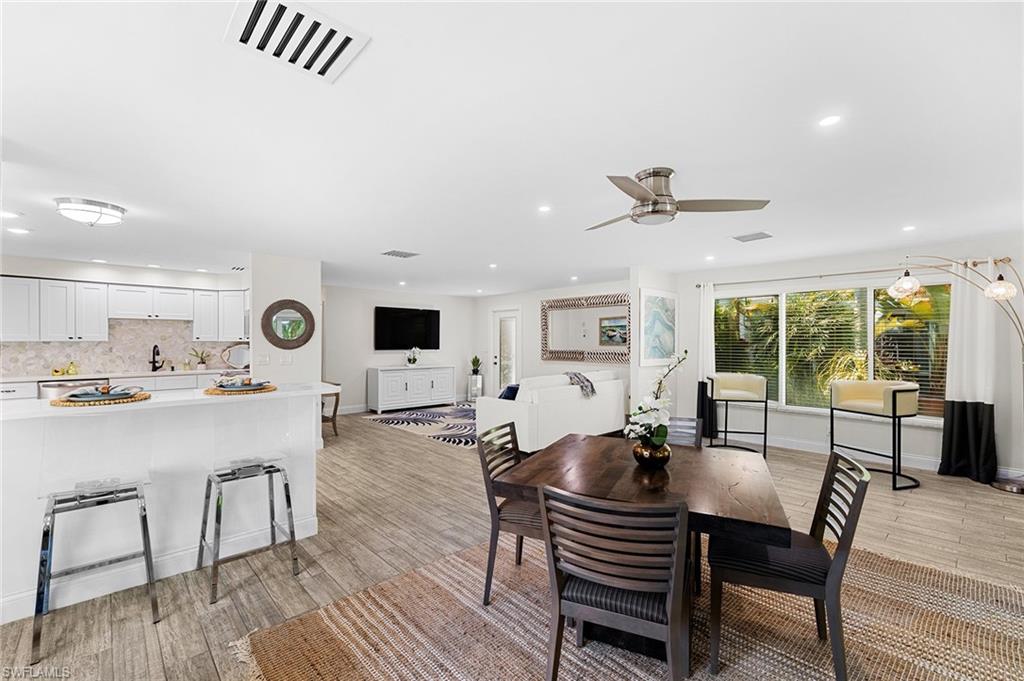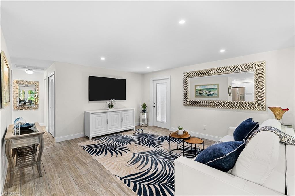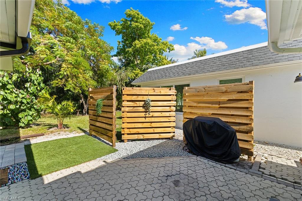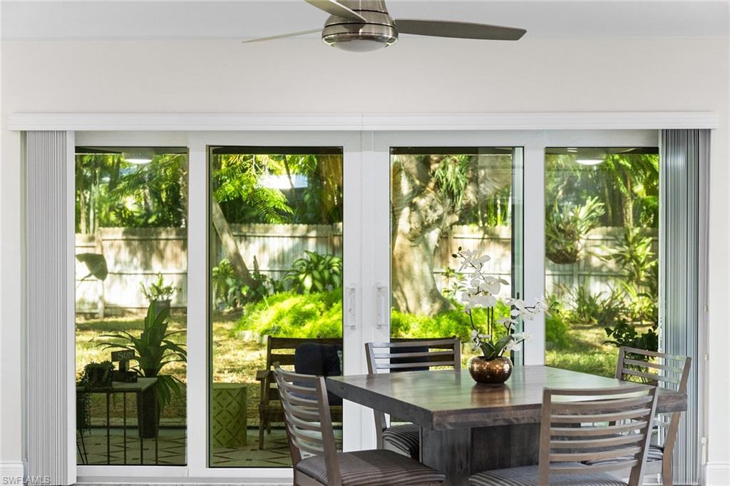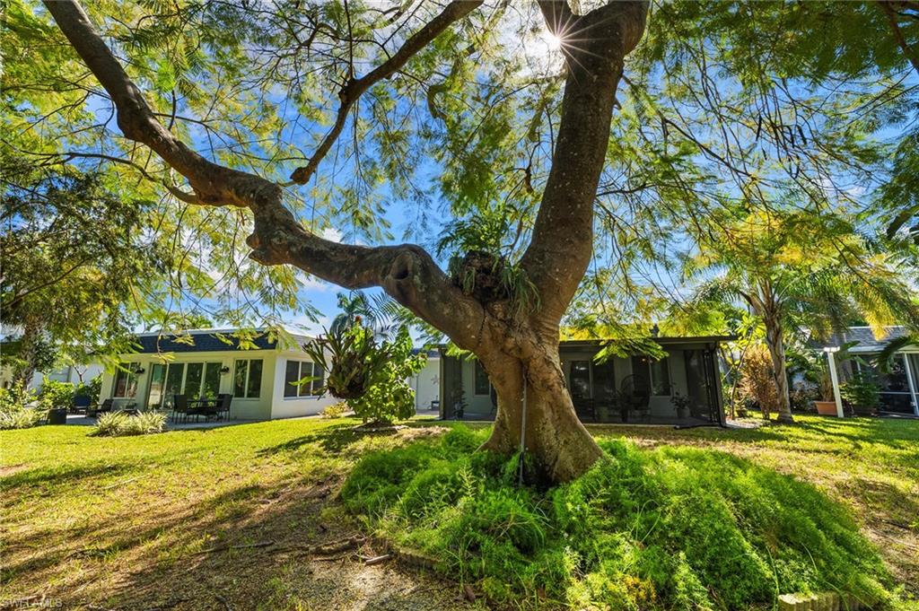 Discover a blend of single-family privacy and carefree condominium living in this stunningly renovated detached villa, move-in ready today! This light-filled two-bedroom, two-bath home (1, 296 square feet under air) showcases beautiful coastal-contemporary finishes throughout, with no detail overlooked. Hurricane-impact windows and doors provide peace of mind, energy efficiency and quiet comfort year-round. The wow factor is the new full-width screened lanai featuring panorama screening, your private front-row seat to one of Naples enchanting backyards. A majestic mature Royal Poinciana bursts with fiery red-orange blooms against a wide, completely private vista with no rear neighbors, just lush tropical landscaping and serene preserve-like views. Southern-exposure sunlight floods the lanai and interiors all day long. Moments to 5th Avenue South, celebrated dining, shopping and Naples legendary white-sand beaches. Low quarterly fees, pet-friendly, 30-day rentals permitted (three times a year). Rarely does a villa this updated and private become available, so schedule your private showing before it’s gone.