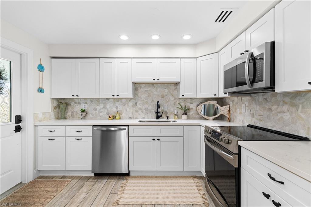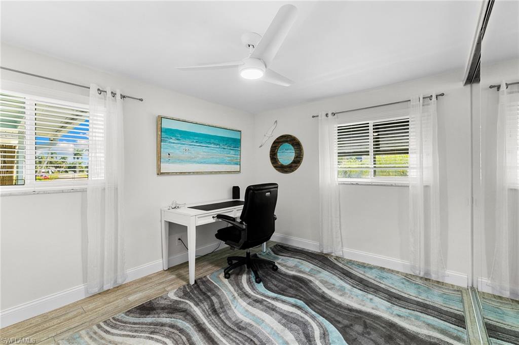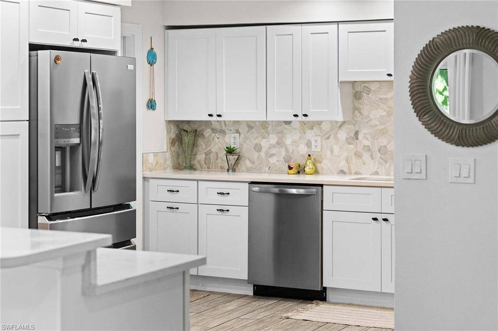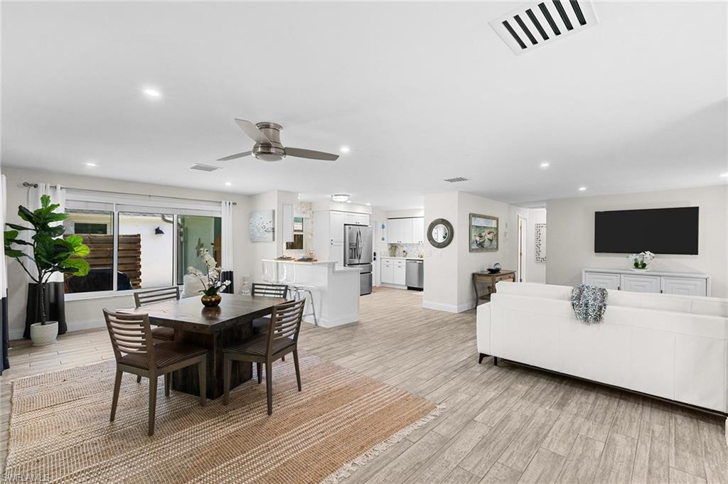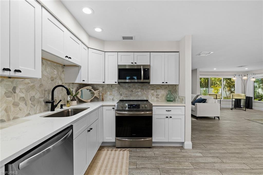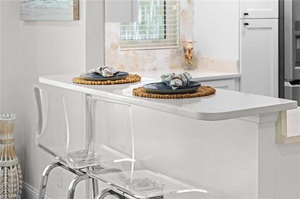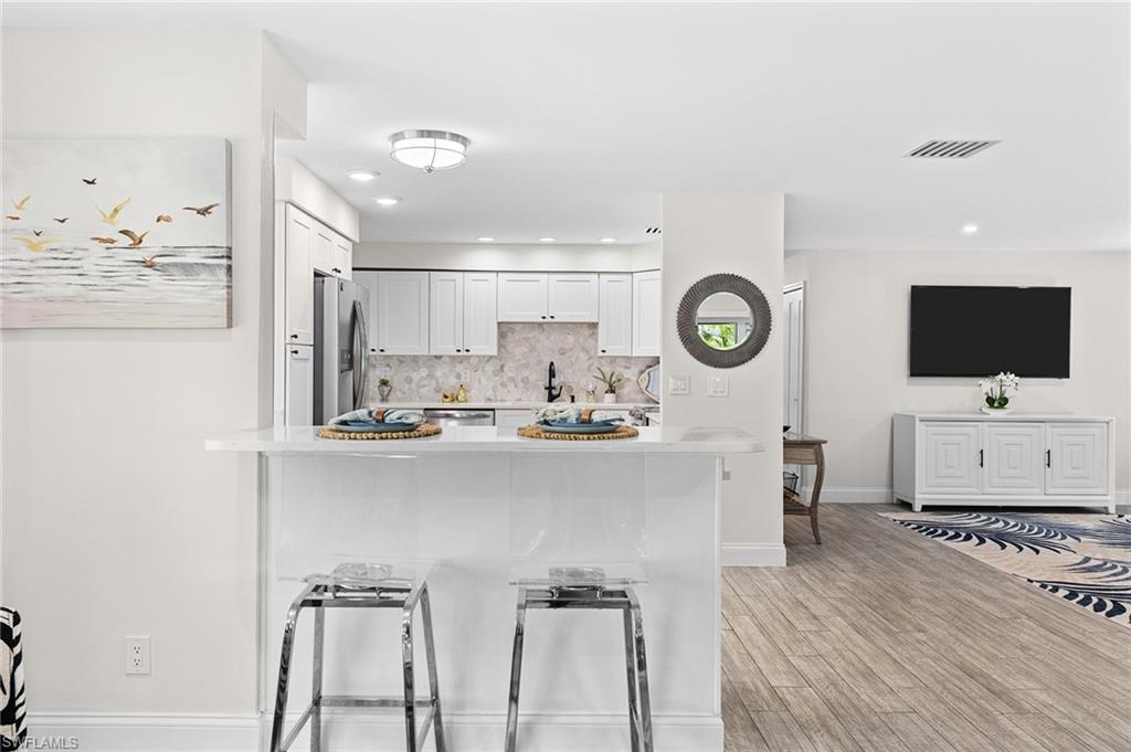 Discover a blend of single-family privacy and carefree condominium living in this stunningly renovated detached villa, move-in ready today! This light-filled two-bedroom, two-bath home (1, 296 square feet under air) showcases beautiful coastal-contemporary finishes throughout, with no detail overlooked. Hurricane-impact windows and doors provide peace of mind, energy efficiency and quiet comfort year-round. The wow factor is the new full-width screened lanai featuring panorama screening, your private front-row seat to one of Naples enchanting backyards. A majestic mature Royal Poinciana bursts with fiery red-orange blooms against a wide, completely private vista with no rear neighbors, just lush tropical landscaping and serene preserve-like views. Southern-exposure sunlight floods the lanai and interiors all day long. Moments to 5th Avenue South, celebrated dining, shopping and Naples legendary white-sand beaches. Low quarterly fees, pet-friendly, 30-day rentals permitted (three times a year). Rarely does a villa this updated and private become available, so schedule your private showing before it’s gone.