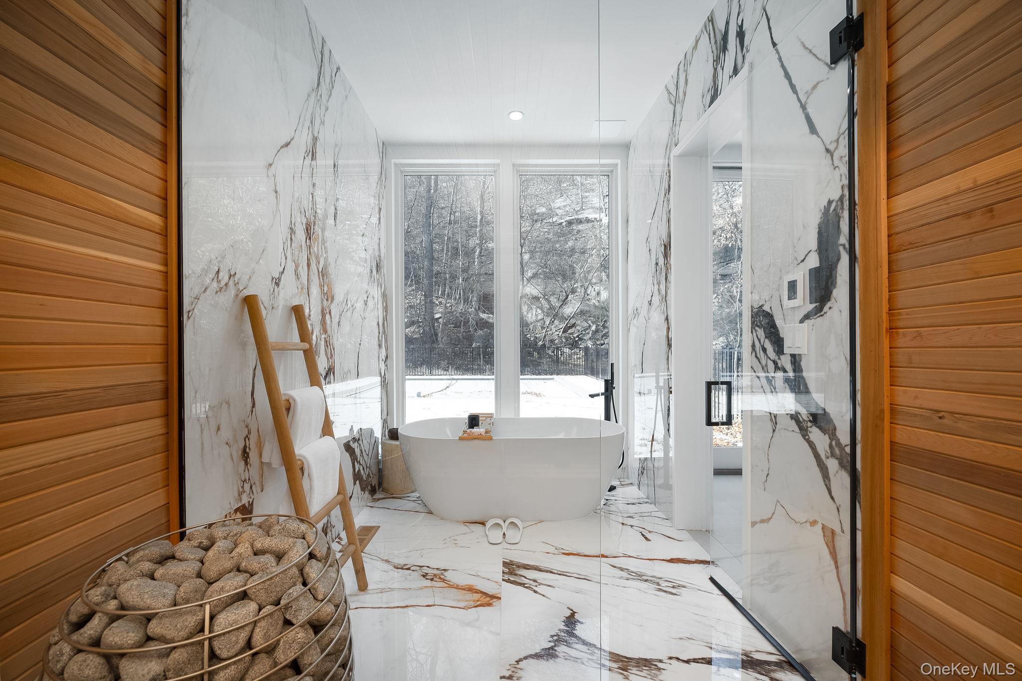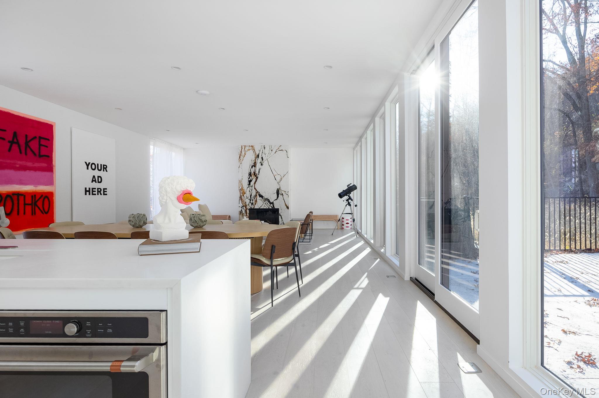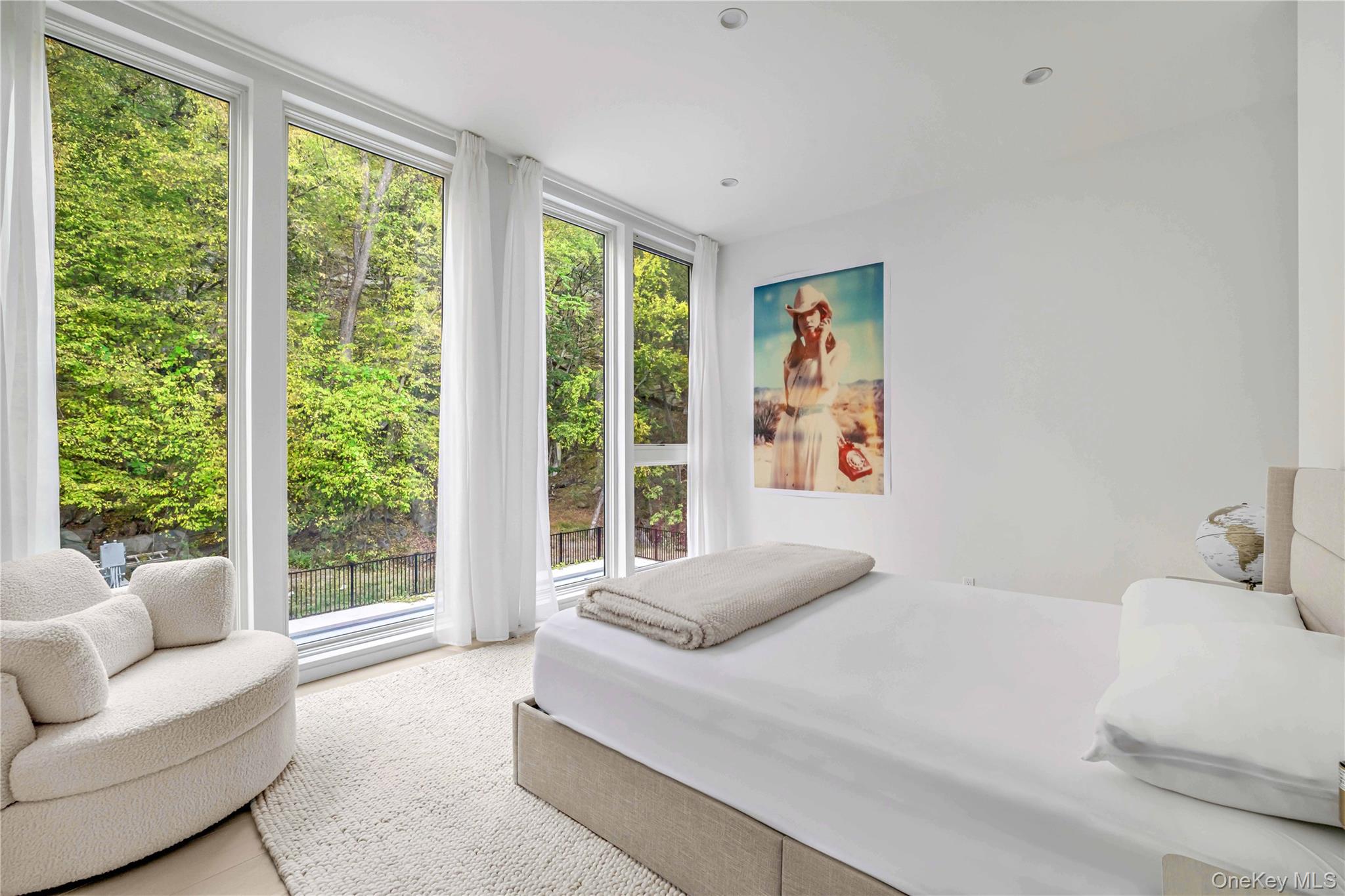A Modern Sanctuary of Glass, Light & Landscape – Minutes from Warwick Village Completed in 2025 and sculpted into a landscape of dramatic natural rock formations, this architecturally significant modern residence offers the rare experience of total privacy paired with refined, design-forward living. Every element of this 3, 564 sq ft home has been curated to deliver serenity, sophistication, and effortless luxury. The great room unfolds beneath 10-foot ceilings, framed by an entire wall of floor-to-ceiling glass that blurs the line between indoors and out. At its center, Porcelanosa-tiled wood-burning fireplace anchors the space with sculptural presence. The chef’s kitchen elevates daily life with custom cabinetry, a waterfall island, GE Cafe 6-burner gas range, double wall ovens, and integrated Bertazzoni appliances. The home features four private ensuite bedrooms, each crafted with spa-level materials. Bathrooms envelop you in Porcelanosa porcelain finishes, radiant heated floors, and refined fixtures—creating a quiet luxury experience throughout. A dedicated wellness wing includes a first-floor gym and a custom panoramic sauna and full bath, forming a personal retreat that rivals boutique resorts. Outdoors, the property opens to a 20' x 42' saltwater social pool, perfectly positioned among sweeping terrain and striking rock outcroppings—an unforgettable backdrop for gatherings or quiet weekends at home. All just 10 minutes from Warwick Village, with effortless access to Rt 17, I-87, and NYC/NJ. A truly exceptional offering for the buyer seeking modern architecture, privacy, and luxury without compromise.