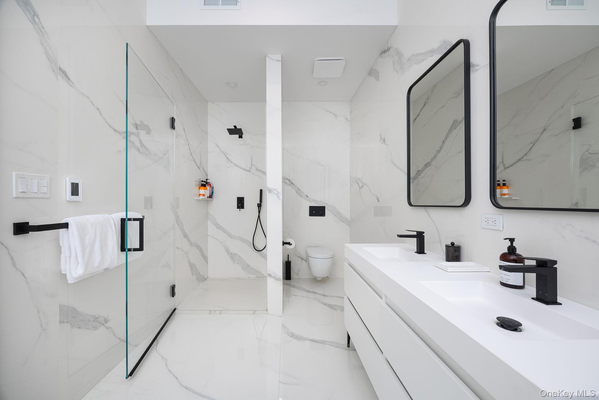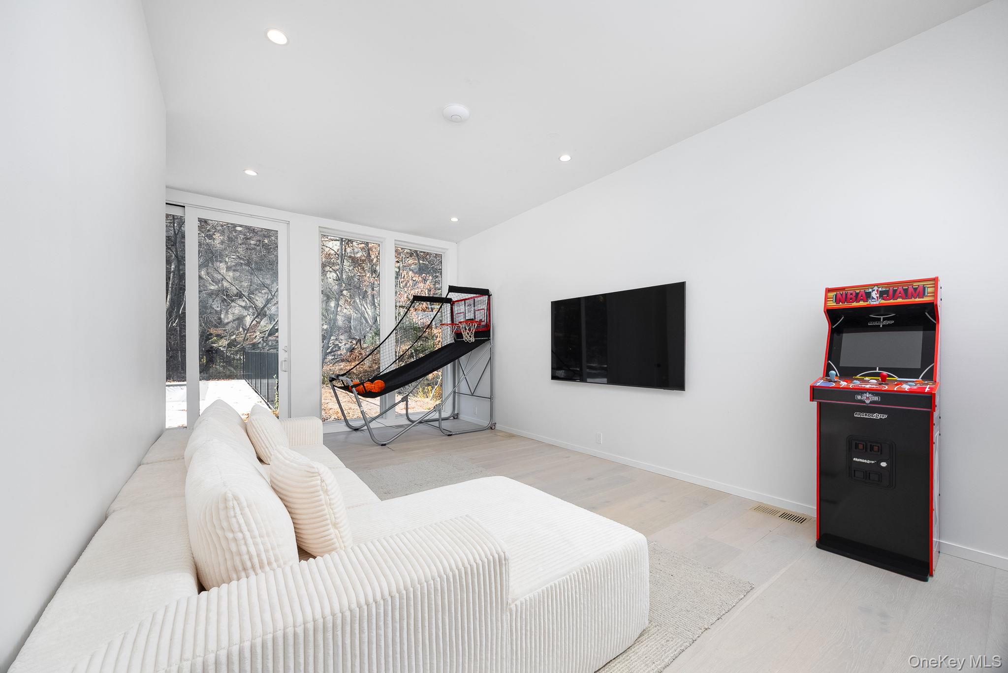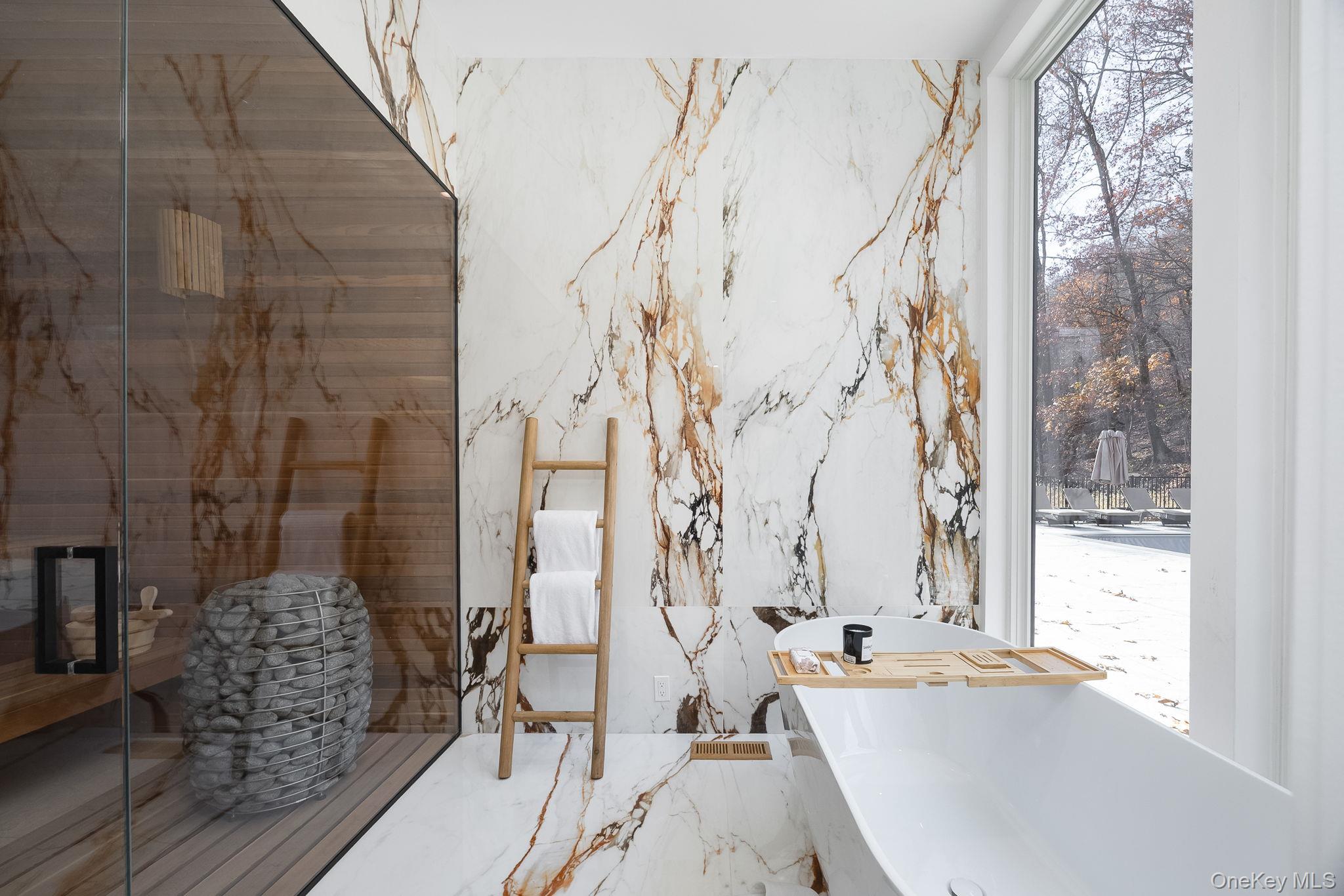 A Modern Sanctuary of Glass, Light & Landscape – Minutes from Warwick Village Completed in 2025 and sculpted into a landscape of dramatic natural rock formations, this architecturally significant modern residence offers the rare experience of total privacy paired with refined, design-forward living. Every element of this 3, 564 sq ft home has been curated to deliver serenity, sophistication, and effortless luxury. The great room unfolds beneath 10-foot ceilings, framed by an entire wall of floor-to-ceiling glass that blurs the line between indoors and out. At its center, Porcelanosa-tiled wood-burning fireplace anchors the space with sculptural presence. The chef’s kitchen elevates daily life with custom cabinetry, a waterfall island, GE Cafe 6-burner gas range, double wall ovens, and integrated Bertazzoni appliances. The home features four private ensuite bedrooms, each crafted with spa-level materials. Bathrooms envelop you in Porcelanosa porcelain finishes, radiant heated floors, and refined fixtures—creating a quiet luxury experience throughout. A dedicated wellness wing includes a first-floor gym and a custom panoramic sauna and full bath, forming a personal retreat that rivals boutique resorts. Outdoors, the property opens to a 20' x 42' saltwater social pool, perfectly positioned among sweeping terrain and striking rock outcroppings—an unforgettable backdrop for gatherings or quiet weekends at home. All just 10 minutes from Warwick Village, with effortless access to Rt 17, I-87, and NYC/NJ. A truly exceptional offering for the buyer seeking modern architecture, privacy, and luxury without compromise.