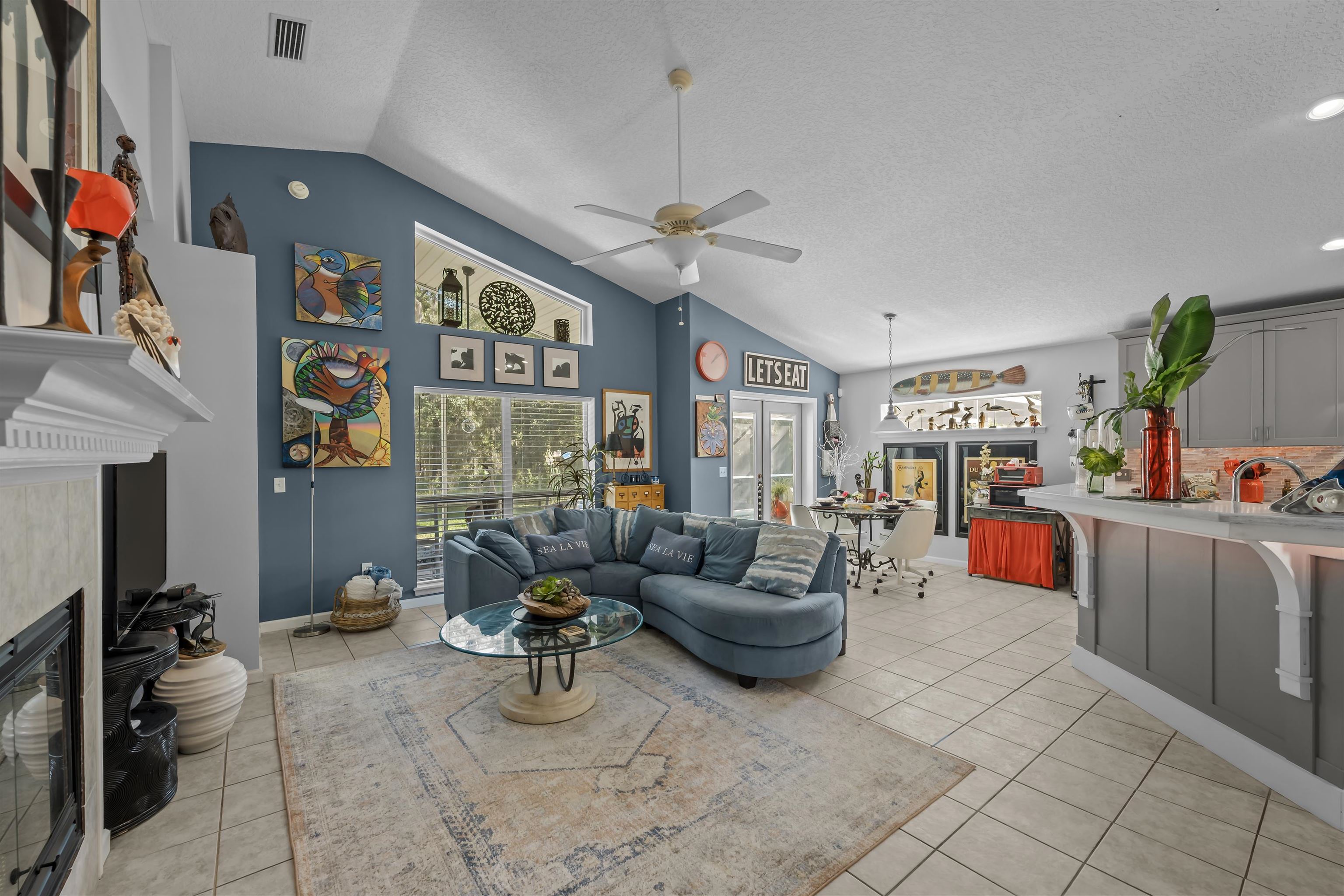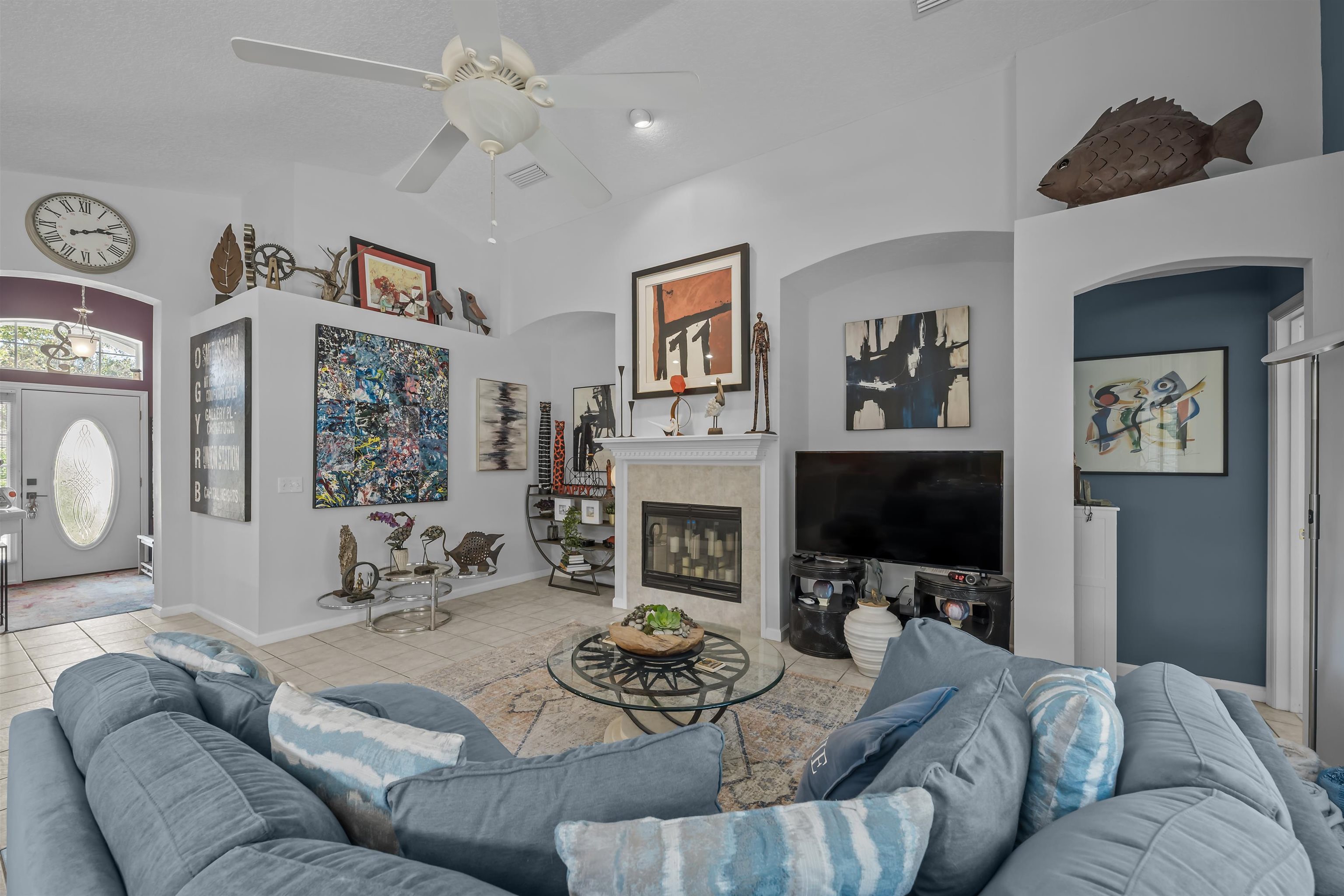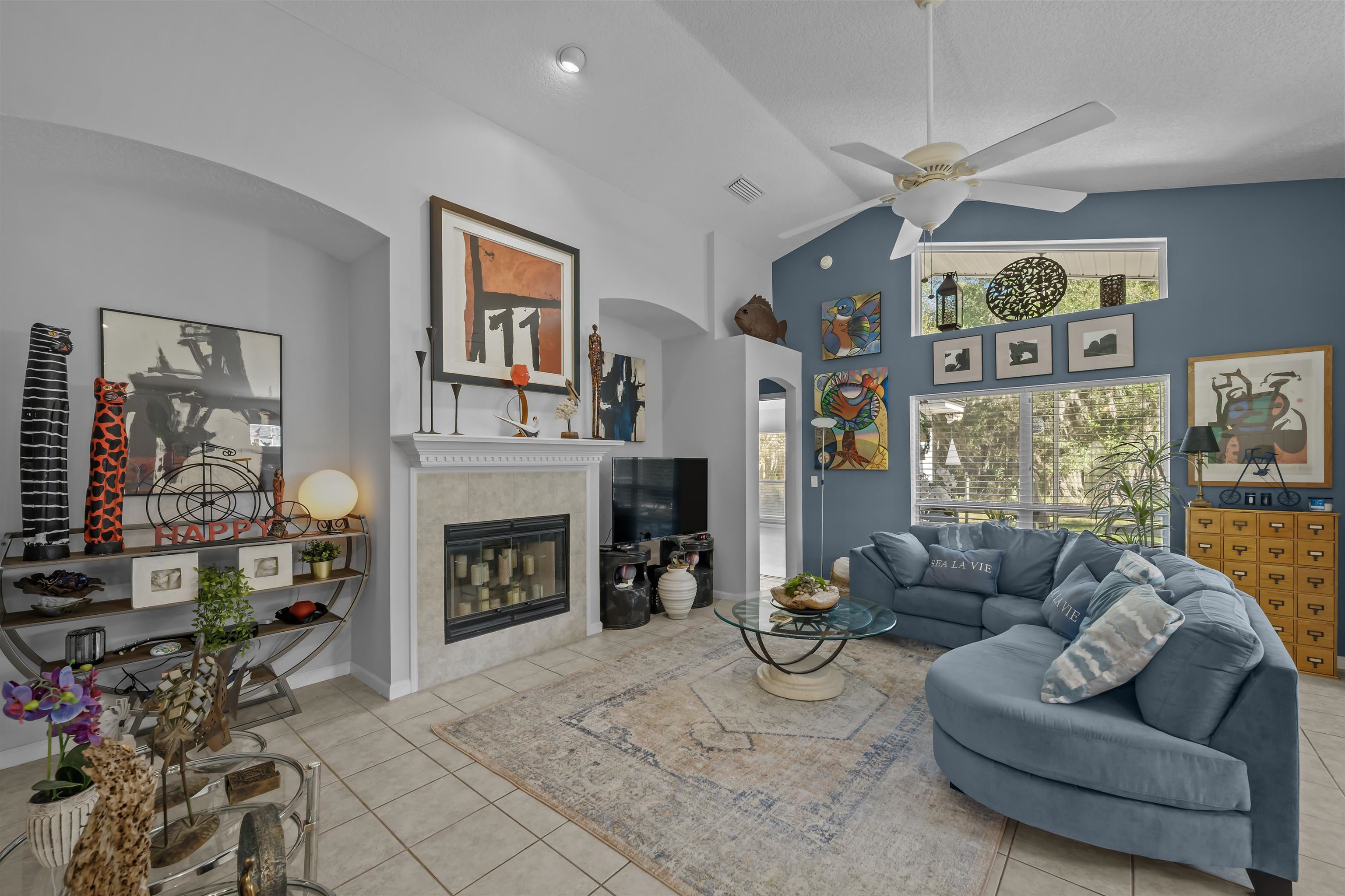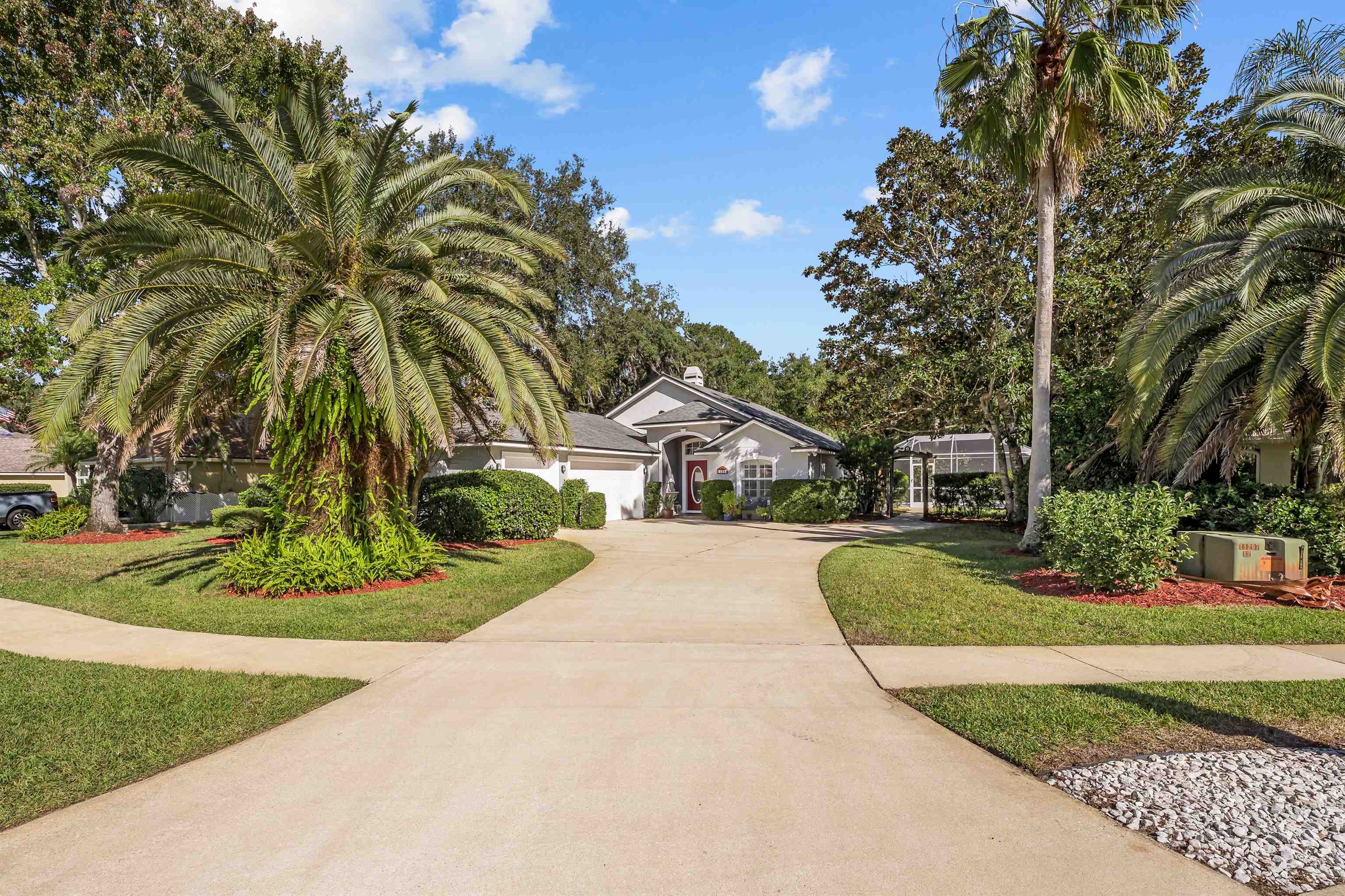 Discover this beautifully maintained three-bedroom, two-bath, three-car garage, concrete block, pool home tucked away on a quiet cul-de-sac, offering peaceful preserve views and an inviting outdoor living space. Designed with an open-concept layout and filled with upgrades, this move-in ready residence combines style, comfort, and low-maintenance living. The well-appointed kitchen features solid surface countertops, new custom cabinetry, recessed and under cabinet lighting, tiled backsplash, a separate pantry, and a raised breakfast bar overlooking the sun lit breakfast area. The adjacent formal dining room creates opportunities to add a special touch of magic to holidays and special dates in your family's life. The spacious great room is bright and airy with volume ceilings, custom fireplace. and French doors that lead to the screened lanai and sparkling pool. The private primary suite, located in its own wing of the home, boasts backyard preserve views, a walk-in closet, and a luxurious bath with dual vanity, a soaking tub, and a tiled walk in shower. Two additional oversized bedrooms and a beautifully upgraded guest bath provide comfort for family and guests. A separate laundry room, attic storage, and a three-car garage with extended parking further enhance the home’s functionality. The outdoor living space is surrounded by nature and features a screened lanai. extended patio, sparkling pool and spa, upgraded landscaping, beautiful trellis, and a fenced backyard offering shade and privacy. Additional features include a newly painted interior, ceiling fans throughout, quality ceramic tile flooring, striking wood floors, and ample storage. Nestled within the desirable Tuscany Community, residents enjoy a pool, clubhouse, RV/boat parking, sidewalks, a playground, and are conveniently located near the beaches, great schools, shopping, hospitals, and historic downtown. Don’t miss your chance to call this stunning home yours—schedule your private tour today!
