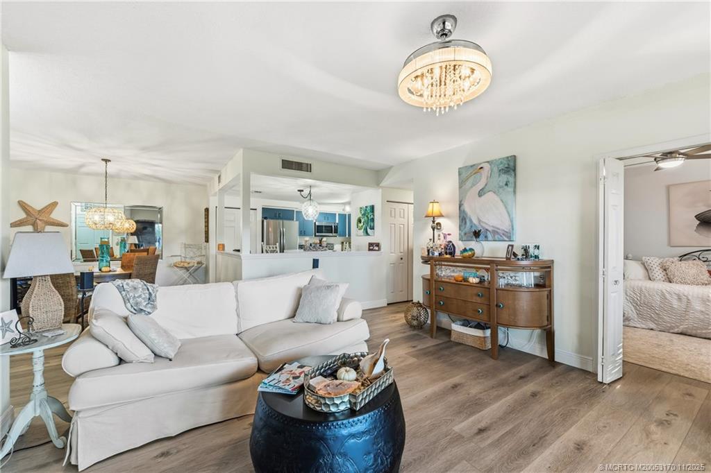 Welcome home to this charming 2 bed, 2 bath ground-floor condo located in an inviting all-ages community just minutes from the beach, downtown Stuart’s great restaurants, shopping, and the Lyric Theater. Step inside to an open, comfortable layout that is beautifully decorated with a coastal vibe and comes partially furnished making it feel like you’re on vacation every day. Enjoy a large primary suite with a walk-in closet, an in-unit laundry center, and a covered, screened lanai perfect for sipping morning coffee or unwinding at the end of the day. A metal roof and covered parking add extra peace of mind and convenience. Residents enjoy fantastic amenities included in the monthly fee such as a heated pool, cable, internet, water, landscaping, exterior maintenance, building insurance, and more—all designed to make coastal living easy and carefree. Whether you're looking for a full-time home or a seasonal retreat, this condo offers the ideal blend of comfort, location, and value.