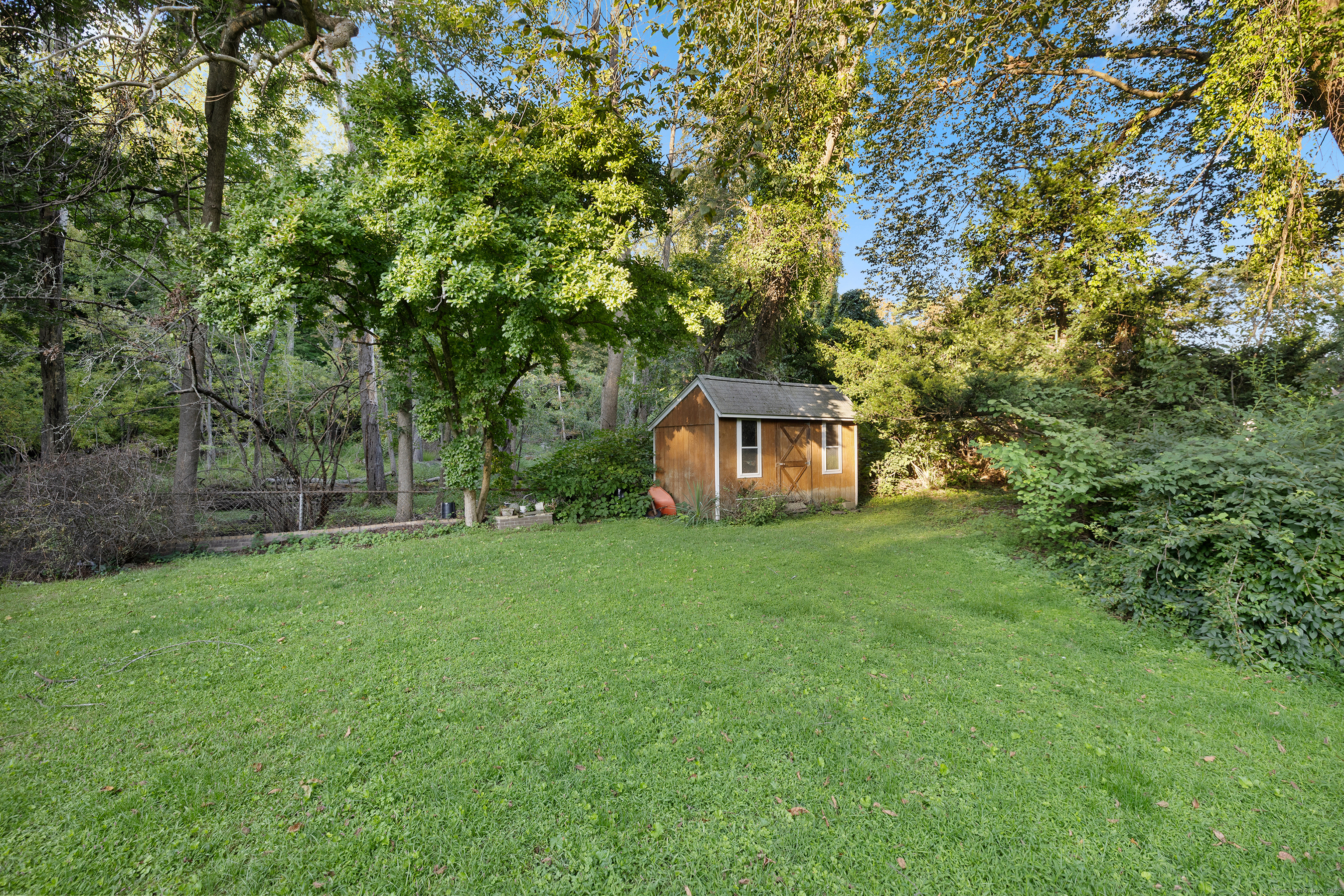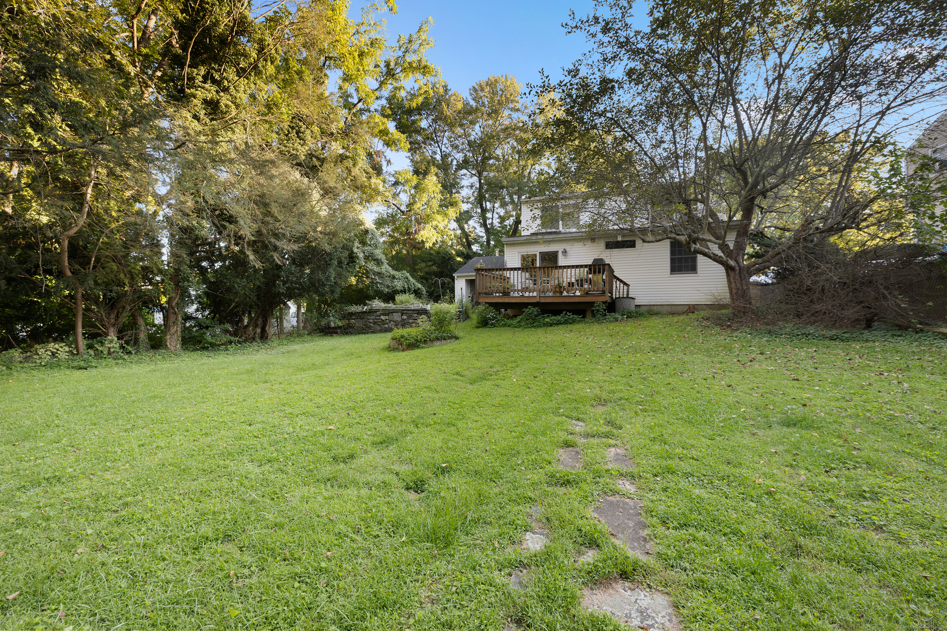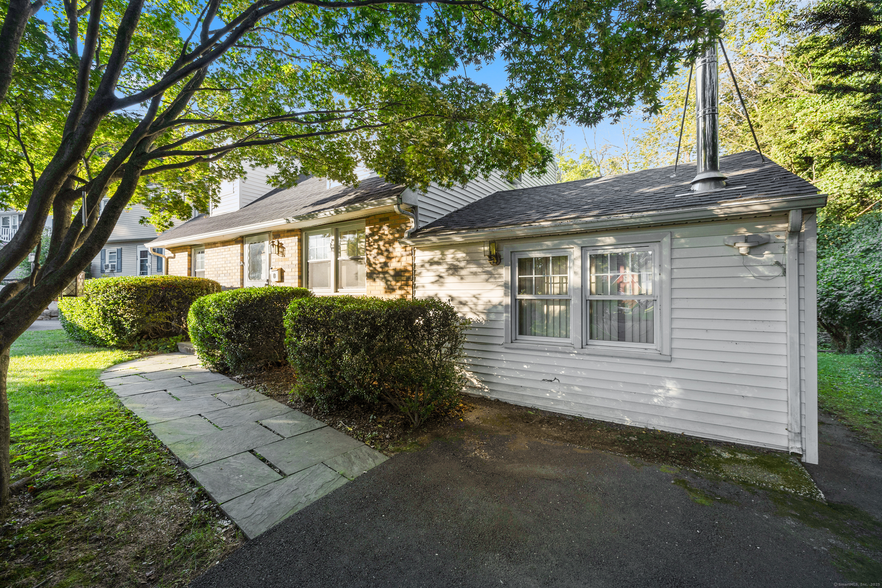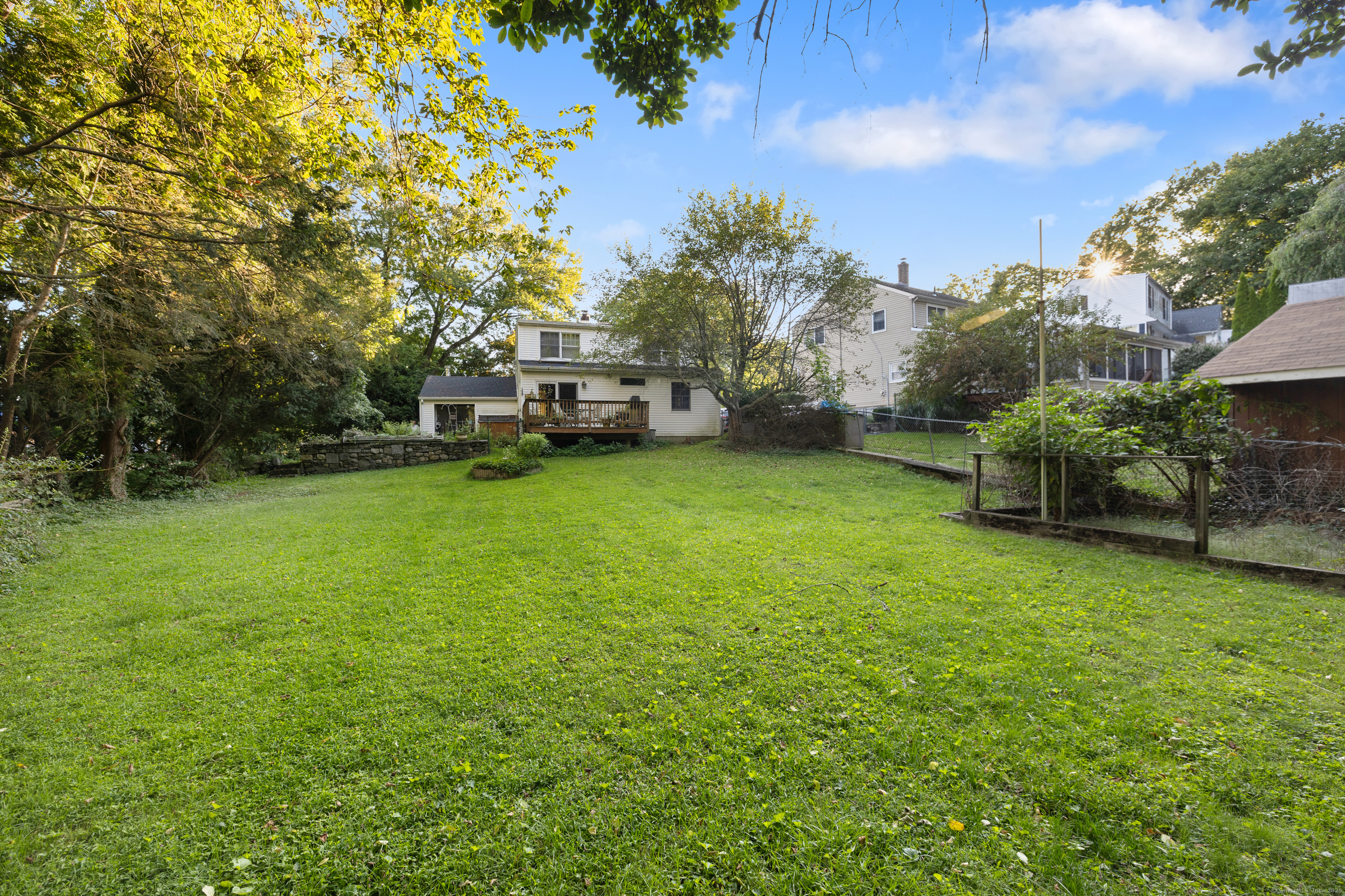 Welcome to your outdoor oasis at 17 Old Barn Road South! This charming Bull's Head Cape offers a serene retreat with exceptional outdoor living space, yet only minutes from all that downtown Stamford has to offer. The three-bedroom home has been lovingly cared for by the same owner for over 50 years. The front yard presents desirable curb appeal with its manicured lawn, mature plantings and location opposite trees & greenery. Step through the front door and into a living room or dining room, depending on one's needs, with a parquet floor and recessed lighting. A step down family room provides a quiet sanctuary with a wood burning stove and sliders overlooking the spacious backyard. The kitchen features a terra-cotta tile floor, all stainless-steel appliances, loads of counter space, a large skylight and plenty of room for a kitchen table or breakfast nook set. Sliders to the wooden deck provide a lovely view of the backyard and mature McIntosh apple tree. The convenience of a newer washer & dryer, tucked away behind bi-fold doors, completes the kitchen. The main level primary bedroom is large and boasts an ensuite bath, hardwood floor and ample closet space. There's also an additional room, which could serve as a possible guest bedroom or home office. Radiant heat floors cover most of this level. A second full bath completes the main level floor plan. Ascend the carpeted staircase, and there's another full bath, with bedrooms on either side, featuring hardwood floors, providing both privacy and convenience. The expansive backyard is perfect for gardening, playing catch, relaxing or entertaining friends and family. An older shed completes the yard, which can house lawn care equipment or gardening supplies. The home's entire roof was replaced in 2023 and the oil burner is approximately 5 years old. Within one mile from UCONN'S Stamford campus, restaurants and shopping. Ridgeway Shopping Center and Scalzi Park are also in close proximity. Use your imagination and you can turn this cozy Mid-City house into a gem. Home and shed are being sold AS IS.