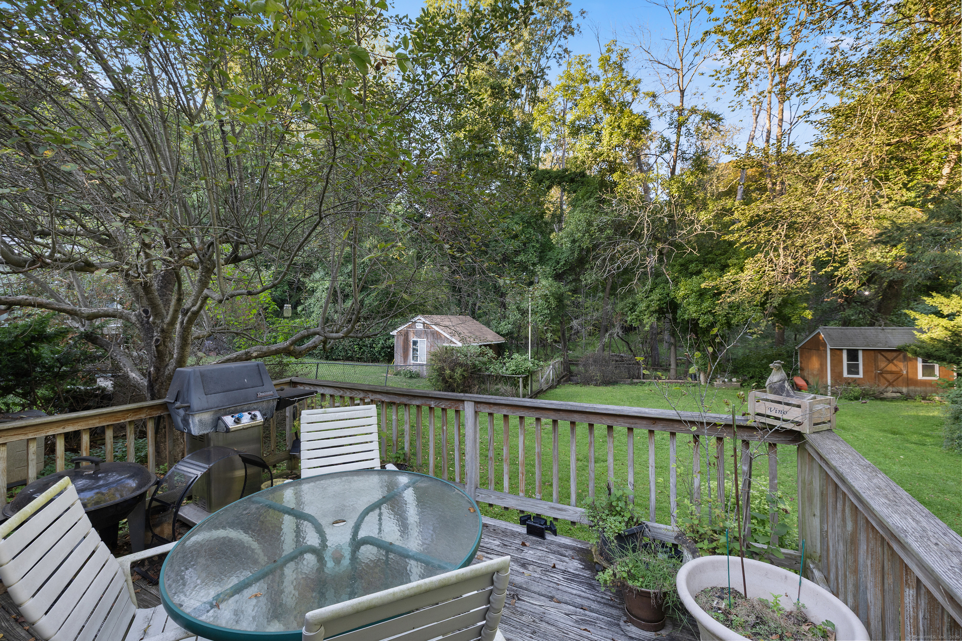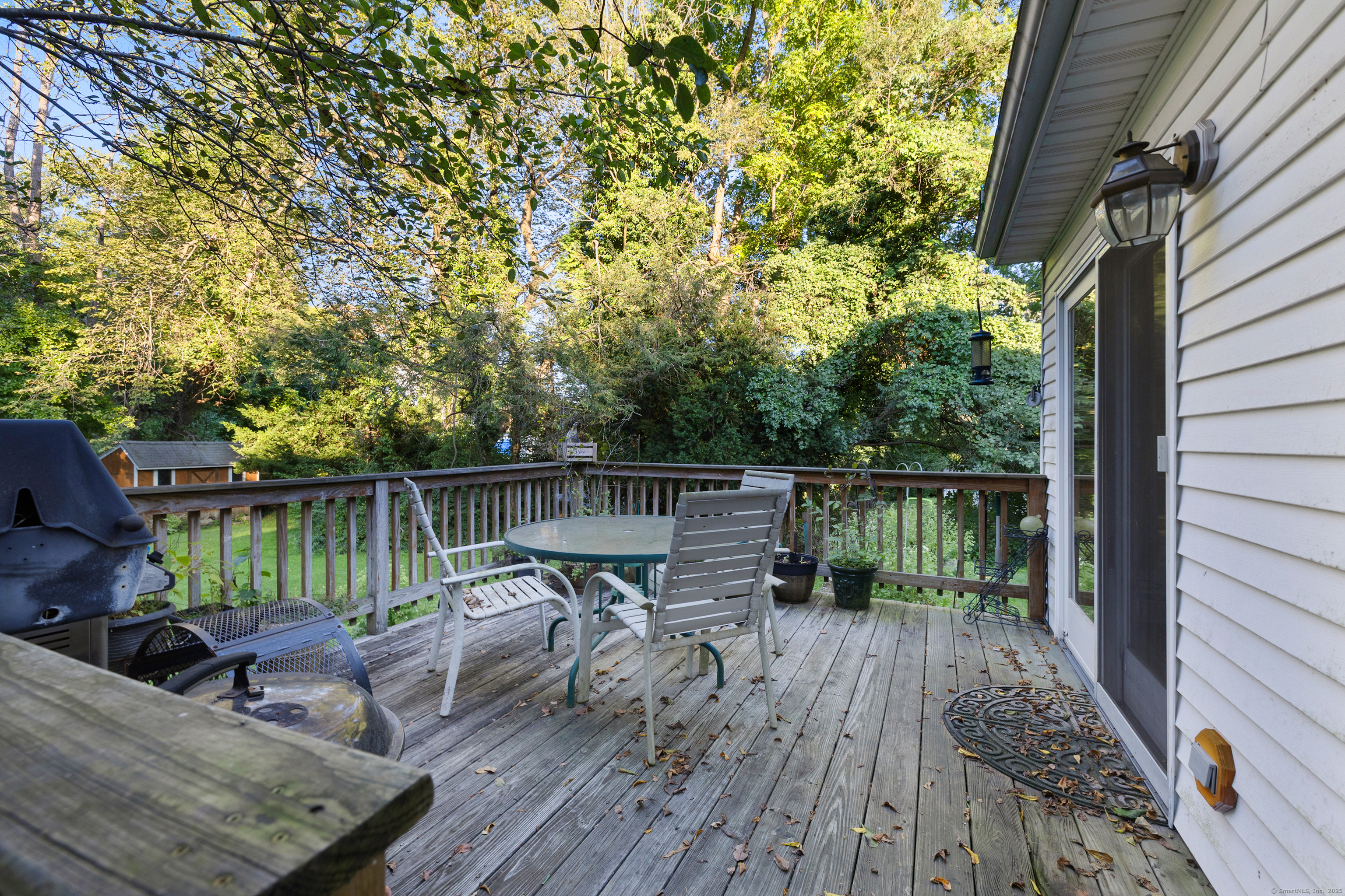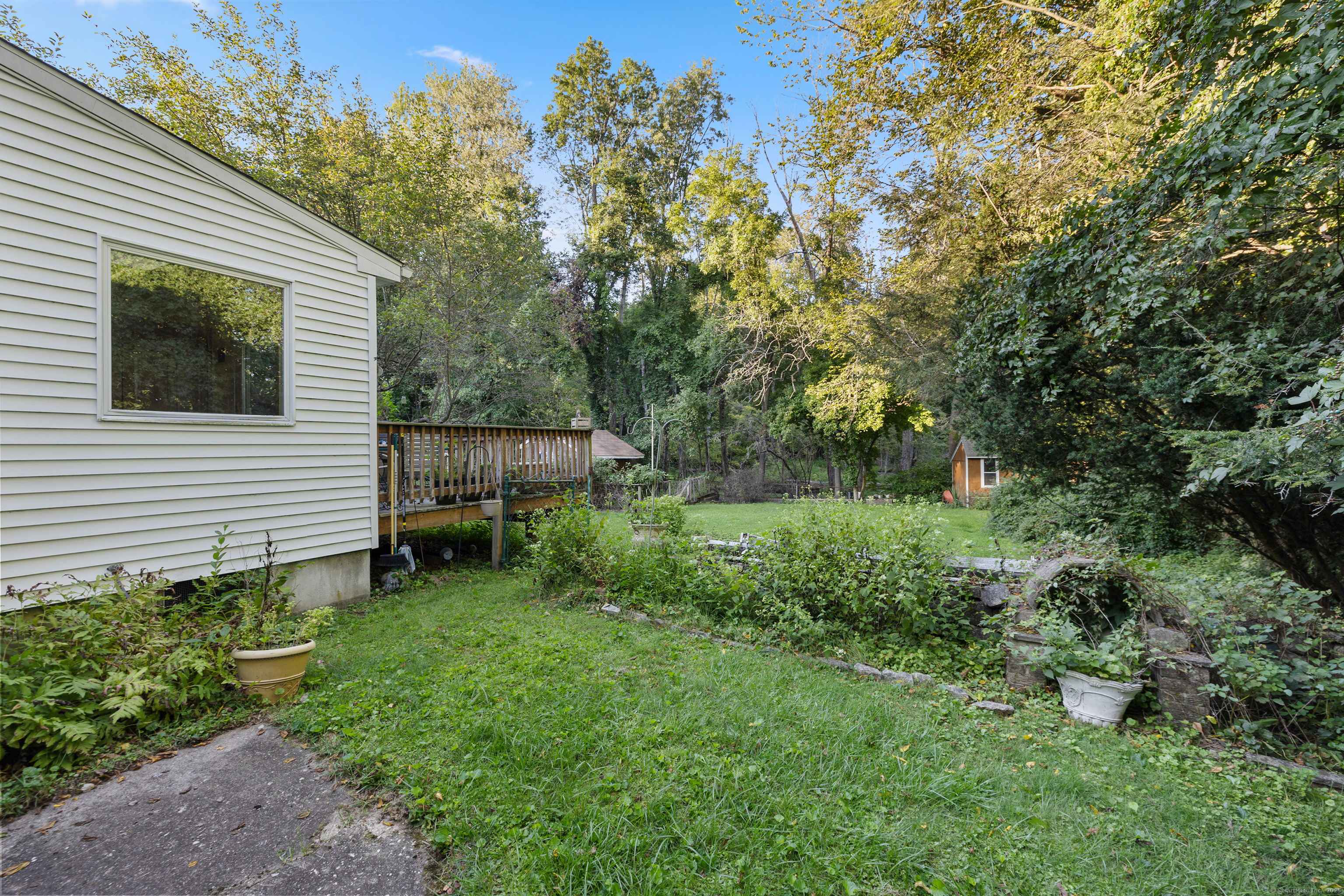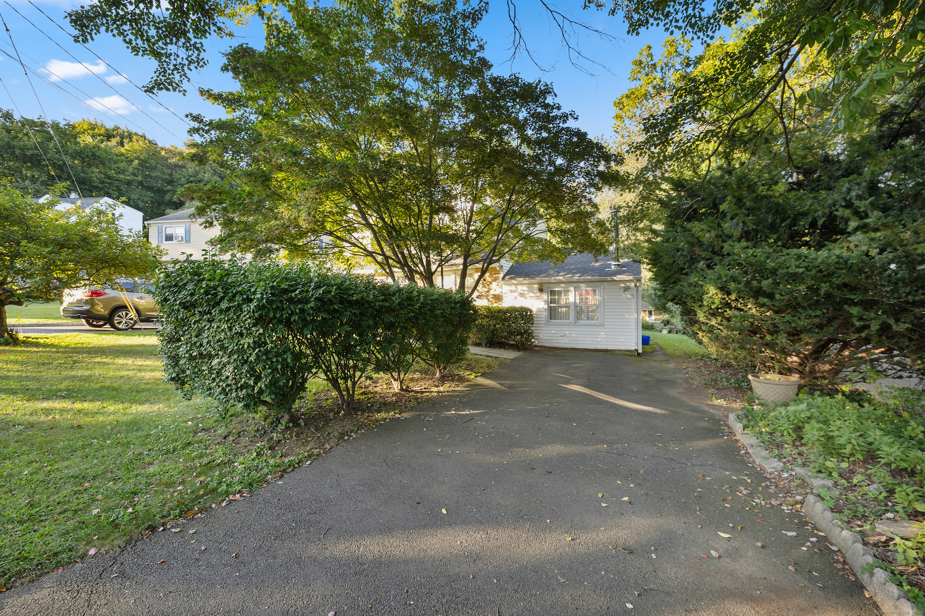 Welcome to your outdoor oasis at 17 Old Barn Road South! This charming Bull's Head Cape offers a serene retreat with exceptional outdoor living space, yet only minutes from all that downtown Stamford has to offer. The three-bedroom home has been lovingly cared for by the same owner for over 50 years. The front yard presents desirable curb appeal with its manicured lawn, mature plantings and location opposite trees & greenery. Step through the front door and into a living room or dining room, depending on one's needs, with a parquet floor and recessed lighting. A step down family room provides a quiet sanctuary with a wood burning stove and sliders overlooking the spacious backyard. The kitchen features a terra-cotta tile floor, all stainless-steel appliances, loads of counter space, a large skylight and plenty of room for a kitchen table or breakfast nook set. Sliders to the wooden deck provide a lovely view of the backyard and mature McIntosh apple tree. The convenience of a newer washer & dryer, tucked away behind bi-fold doors, completes the kitchen. The main level primary bedroom is large and boasts an ensuite bath, hardwood floor and ample closet space. There's also an additional room, which could serve as a possible guest bedroom or home office. Radiant heat floors cover most of this level. A second full bath completes the main level floor plan. Ascend the carpeted staircase, and there's another full bath, with bedrooms on either side, featuring hardwood floors, providing both privacy and convenience. The expansive backyard is perfect for gardening, playing catch, relaxing or entertaining friends and family. An older shed completes the yard, which can house lawn care equipment or gardening supplies. The home's entire roof was replaced in 2023 and the oil burner is approximately 5 years old. Within one mile from UCONN'S Stamford campus, restaurants and shopping. Ridgeway Shopping Center and Scalzi Park are also in close proximity. Use your imagination and you can turn this cozy Mid-City house into a gem. Home and shed are being sold AS IS.