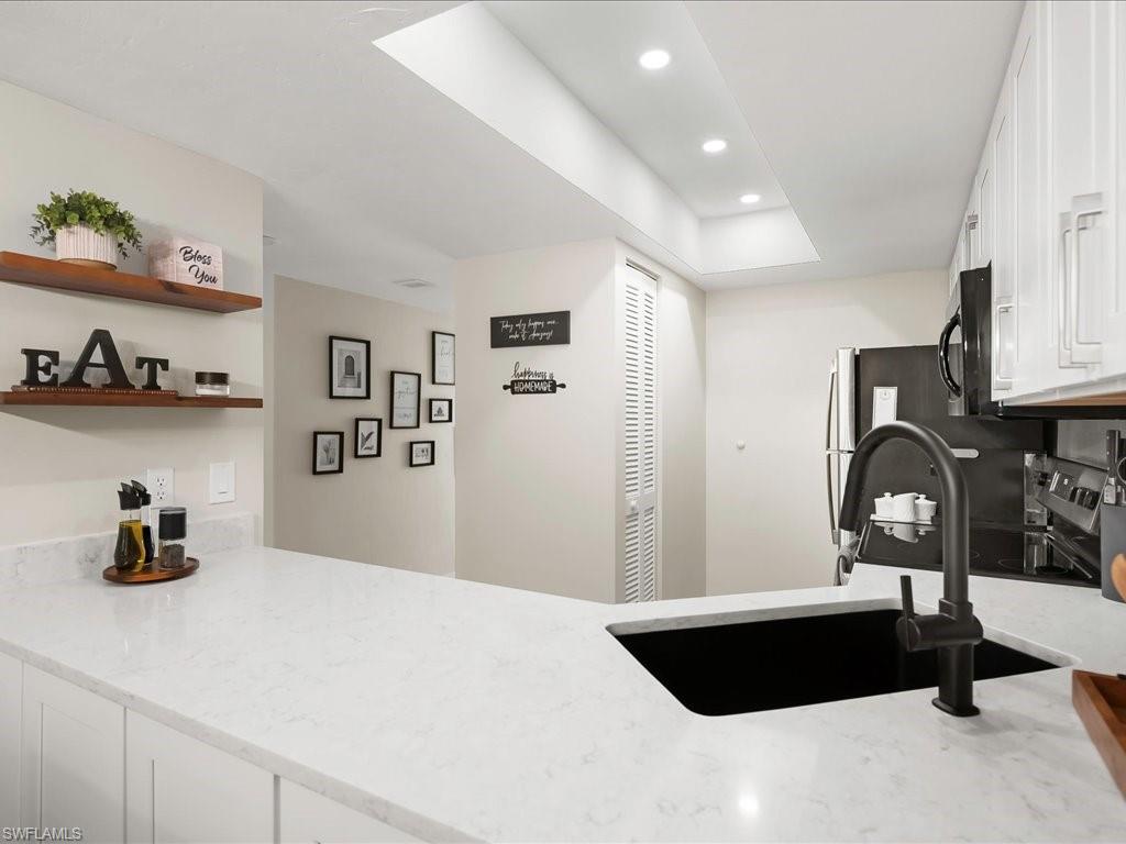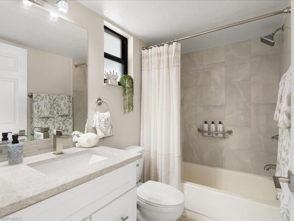 Welcome to this chic retreat. This corner residence is an excellent rental income generator at Park Shore Resort, located in the desirable Gulf of Mexico/Park Shore corridor west of Hwy. 41. Offers a prime location nearby to the tennis/pickleball courts and racquetball, providing a perfect setting for the active lifestyle enthusiast. Step inside to discover newly updated bathrooms and flooring, complemented by sleek white cabinets and quartz countertops in the kitchen. The lanai newly renovated with new floors, screens and impact slider doors providing a tranquil spot to unwind and take in the tropical landscape surrounding the 13-acre oasis. Park Shore Resort offers an array of amenities, including a heated pool, hot tub, grill/BBQ area, tennis courts, racquetball, shuffleboard, and a fitness center. Additionally, the on-site restaurant, Hogfish Harry's, presents a delightful menu for both residents and guests to savor. Owners with pets will appreciate the pet-friendly policy. Investors will find the flexible rental policy to be a valuable asset, with an excellent rental history and ease of booking. Don't miss out on this opportunity to own a stylish and conveniently located residence.