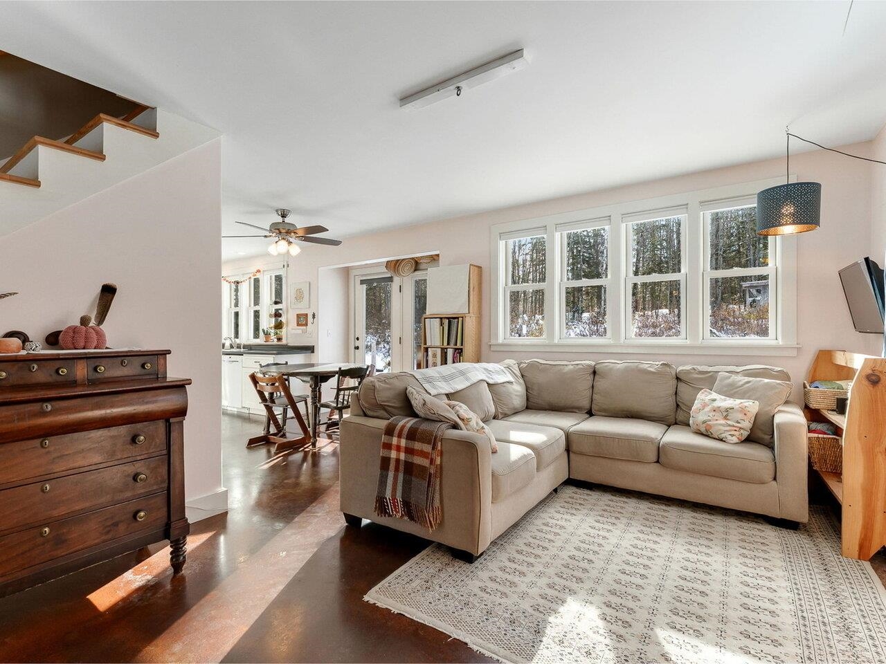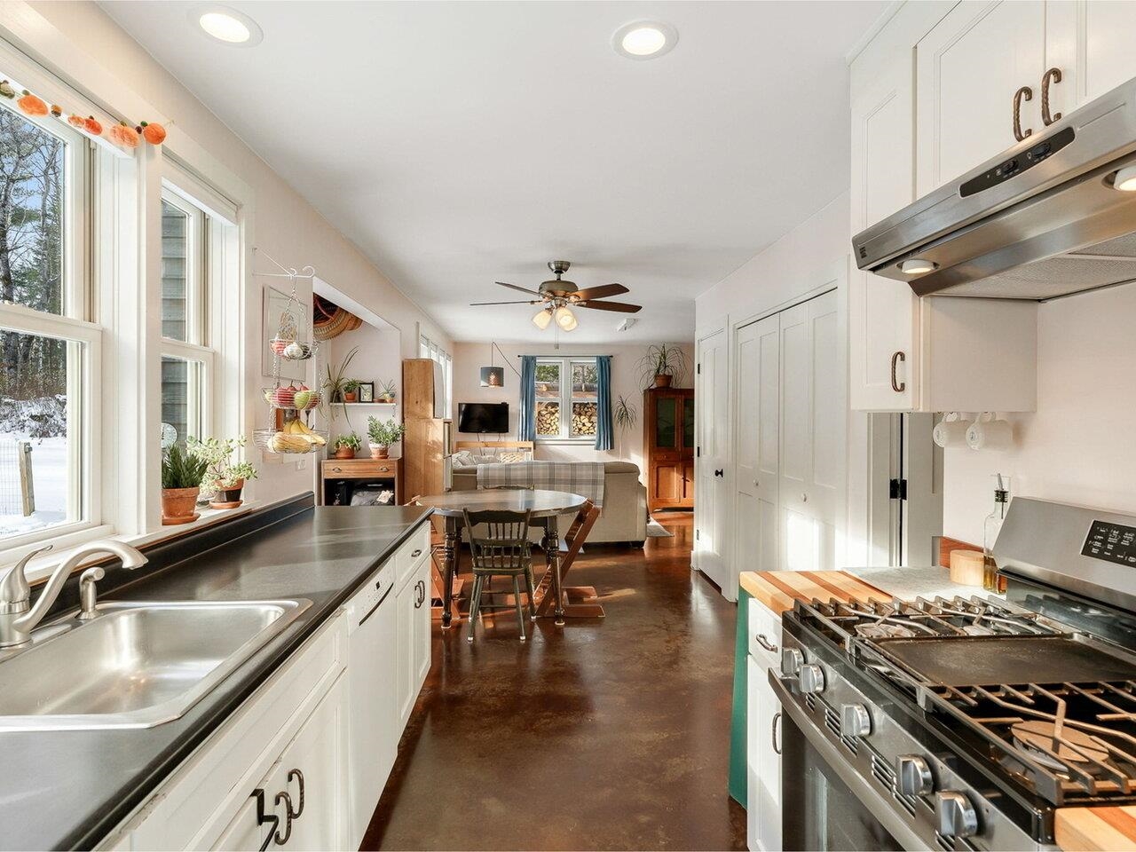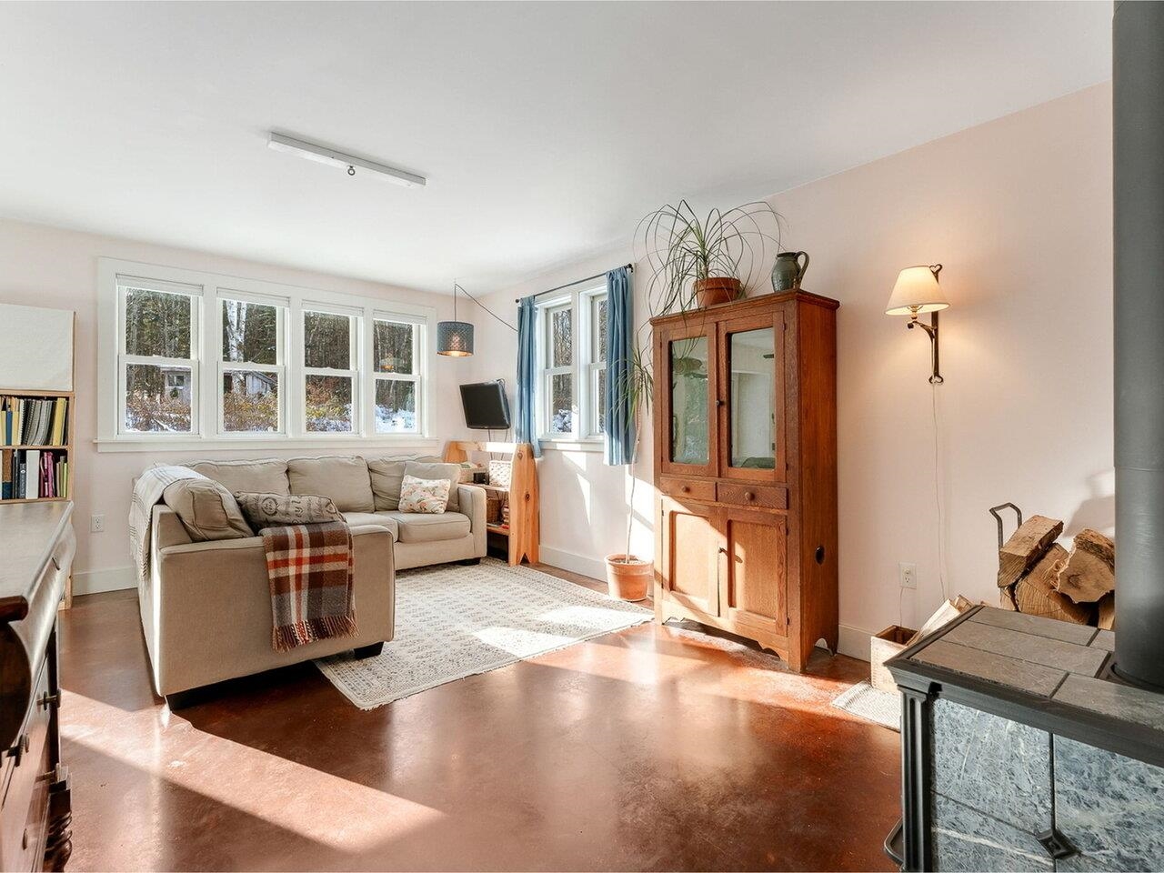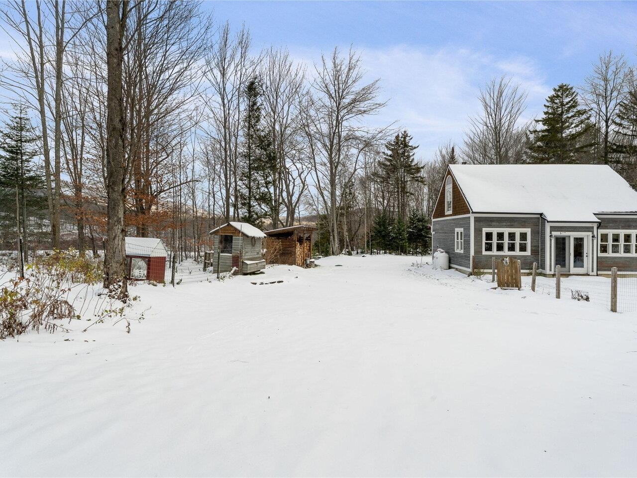 Just down the road from Maple Corner, discover this charming home surrounded by an abundance of natural beauty in all seasons. Built in 2016 and set well back from the road, this thoughtfully designed Cape blends modern efficiency with warmth and character. Step inside to polished concrete floors with radiant heat, sun-filled living spaces, and an inviting open layout anchored by a cozy wood stove. Extremely energy-efficient. Sunny southern exposure. First-floor living is easy with a bedroom, full bath, and laundry on the main level. The second floor features hardwood floors, two bright bedrooms, and another full bath. CV Fiber for your high-speed internet needs. A detached two-car garage offers 220-amp service, workshop space, and generous storage with a full loft above. Enjoy a beautifully landscaped yard, fenced garden beds, berry bushes, a goat barn, and chicken coop. Easy access to the VAST trail network, offering endless outdoor exploration. Time to break out your skis and snowshoes! Ideally located just 1. 5 miles from idyllic Maple Corner and right in the middle of hiking, biking, swimming & skating ponds, mountains, and outdoor adventures. Just a 15-minute drive to Montpelier. This is the lifestyle you’ve been waiting for.