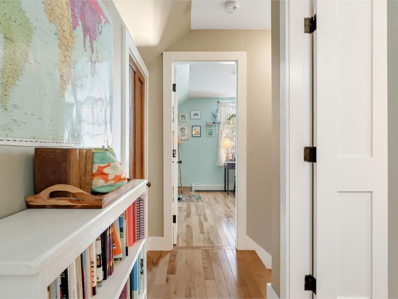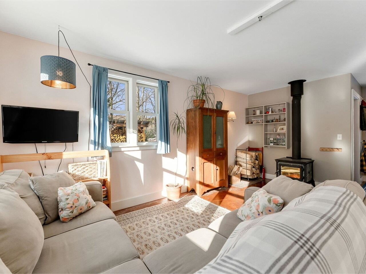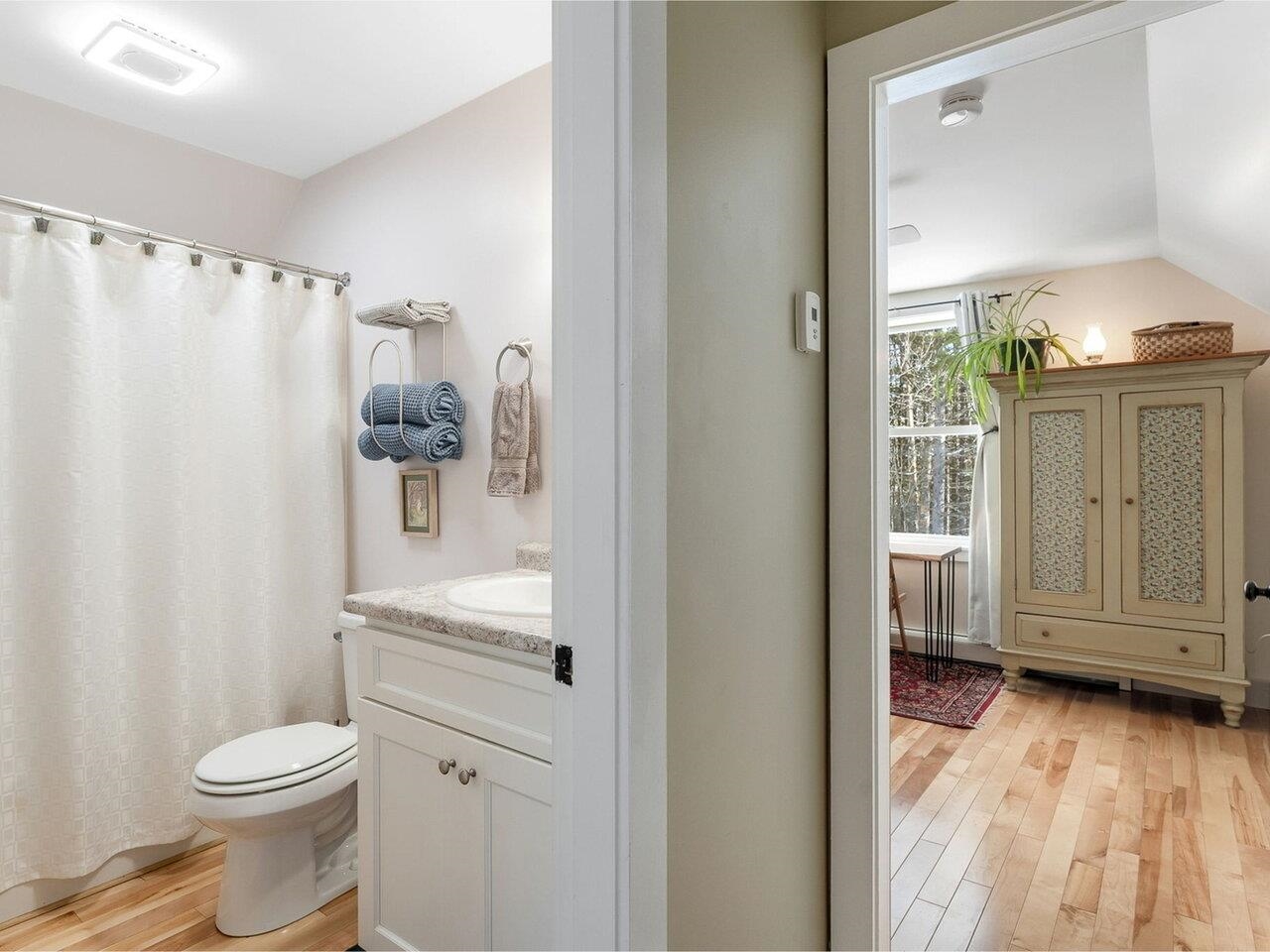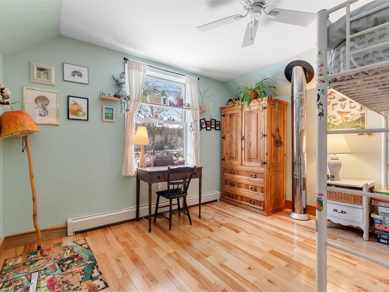 Just down the road from Maple Corner, discover this charming home surrounded by an abundance of natural beauty in all seasons. Built in 2016 and set well back from the road, this thoughtfully designed Cape blends modern efficiency with warmth and character. Step inside to polished concrete floors with radiant heat, sun-filled living spaces, and an inviting open layout anchored by a cozy wood stove. Extremely energy-efficient. Sunny southern exposure. First-floor living is easy with a bedroom, full bath, and laundry on the main level. The second floor features hardwood floors, two bright bedrooms, and another full bath. CV Fiber for your high-speed internet needs. A detached two-car garage offers 220-amp service, workshop space, and generous storage with a full loft above. Enjoy a beautifully landscaped yard, fenced garden beds, berry bushes, a goat barn, and chicken coop. Easy access to the VAST trail network, offering endless outdoor exploration. Time to break out your skis and snowshoes! Ideally located just 1. 5 miles from idyllic Maple Corner and right in the middle of hiking, biking, swimming & skating ponds, mountains, and outdoor adventures. Just a 15-minute drive to Montpelier. This is the lifestyle you’ve been waiting for.
