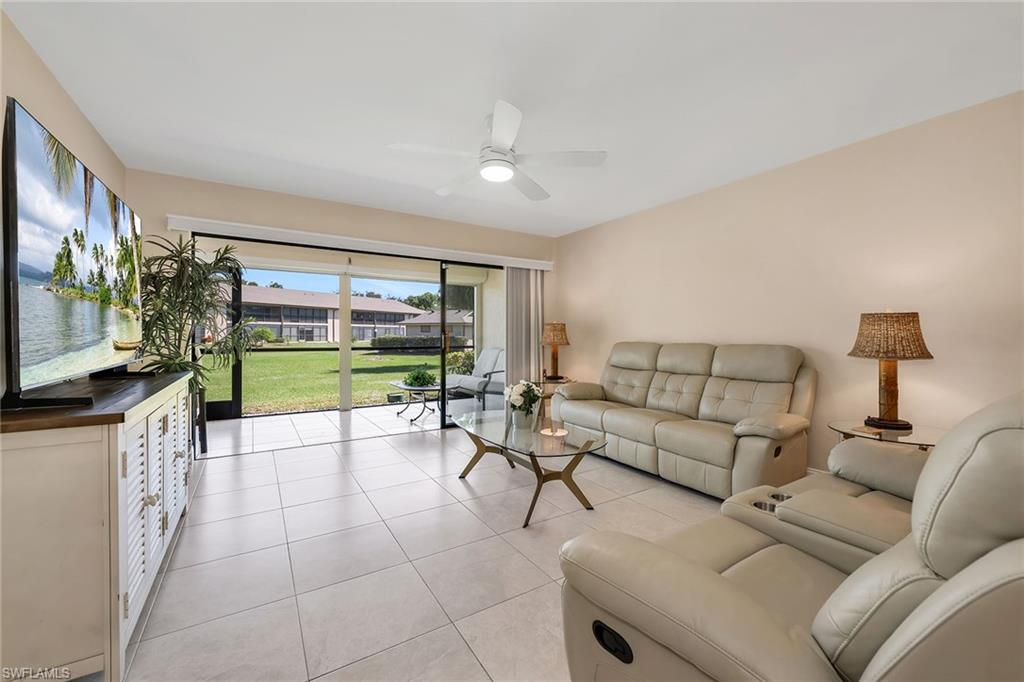 Discover a beautifully renovated first-floor residence in a rarely available enclave of Abbington Village in Lely Golf Estates, offering desirable eastern exposure, low HOA fees and an excellent Naples location just minutes from everything. This light and bright two-bedroom, two-bath home lives comfortably with new tile flooring, freshly painted interiors, renovated baths, newer ceiling fans, a new air-conditioning unit and a refreshed designer feel throughout. Set in a quiet neighborhood only 15 minutes from downtown Naples, this condominium provides effortless living with immediate access to dining, beaches and entertainment. The spacious floor plan features an inviting living and dining area with tile flooring, a ceiling fan, and sliding glass doors that open to the screened lanai, where peaceful garden views and covered outdoor living create the perfect retreat. The lanai offers electric storm shutters, extended tile flooring, and plenty of room to relax or entertain year-round. The renovated kitchen is appointed with white cabinetry, quartz countertops, a T-bar counter and newer stainless steel appliances including an electric range, microwave, dishwasher and refrigerator with icemaker. An adjacent breakfast area with a floor-to-ceiling window fills the space with natural light. The owner’s suite enjoys private lanai access and features wood-look vinyl flooring, a walk-in closet with built-ins and wood shelving, and an updated en-suite bath with a walk-in shower finished floor-to-ceiling with tile, a bench and niche. The guest bedroom is positioned near a beautifully updated bath offering a similar walk-in shower design with a bench and niche for added comfort and style. A dedicated laundry room with a Maytag washer and dryer enhances everyday convenience, and a covered carport space is included. Set in a peaceful and well-kept community, residents have access to a resort-style pool and meticulously maintained grounds. Its prime Naples location offers quick connectivity to Interstate 75, the U. S. Open Pickleball Center, vibrant downtown district and Naples renowned white-sand beaches. Enjoy effortless living close to world-class restaurants, boutique shopping and cultural attractions, all from a beautifully updated home in a sought-after neighborhood.