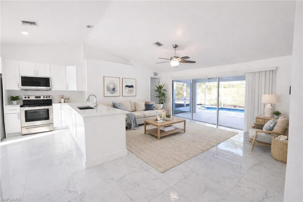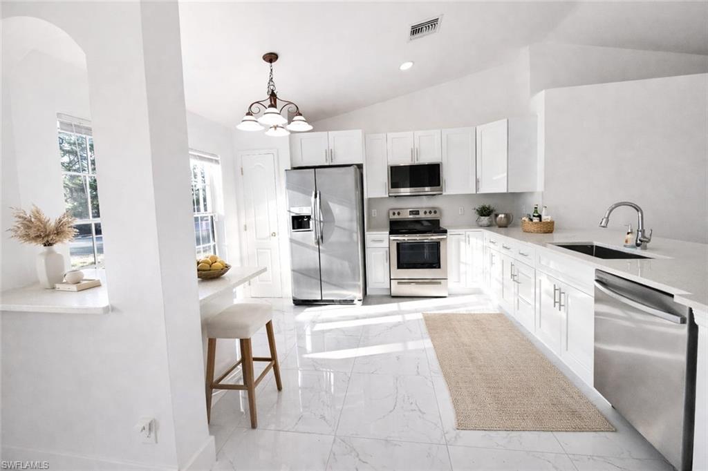 SELLER OFFERING 10K BACK FOR CLOSING COST ASSISTANCE!!! Fully renovated -move-in ready and designed for modern living. The kitchen features brand-new cabinets, countertops, and appliances, making meal prep a pleasure, while the bathrooms have been completely updated with new tile, stylish shower heads, and modern fixtures. Tile flooring flows throughout the home, complementing the bright, open layout with cathedral ceilings and a split-bedroom design for added privacy. Step outside to a private, screened-in pool and spacious lanai, perfect for entertaining or relaxing in the Florida sun. Additional upgrades include an epoxy-coated garage floor, wall-mounted pest tubes, and a roof approximately 9 years old, offering peace of mind.