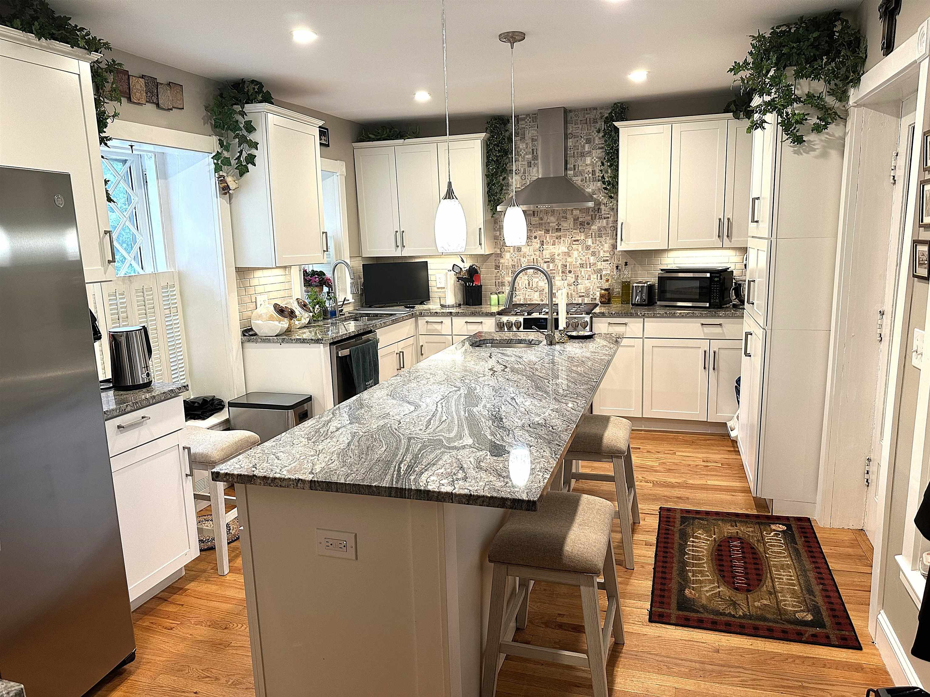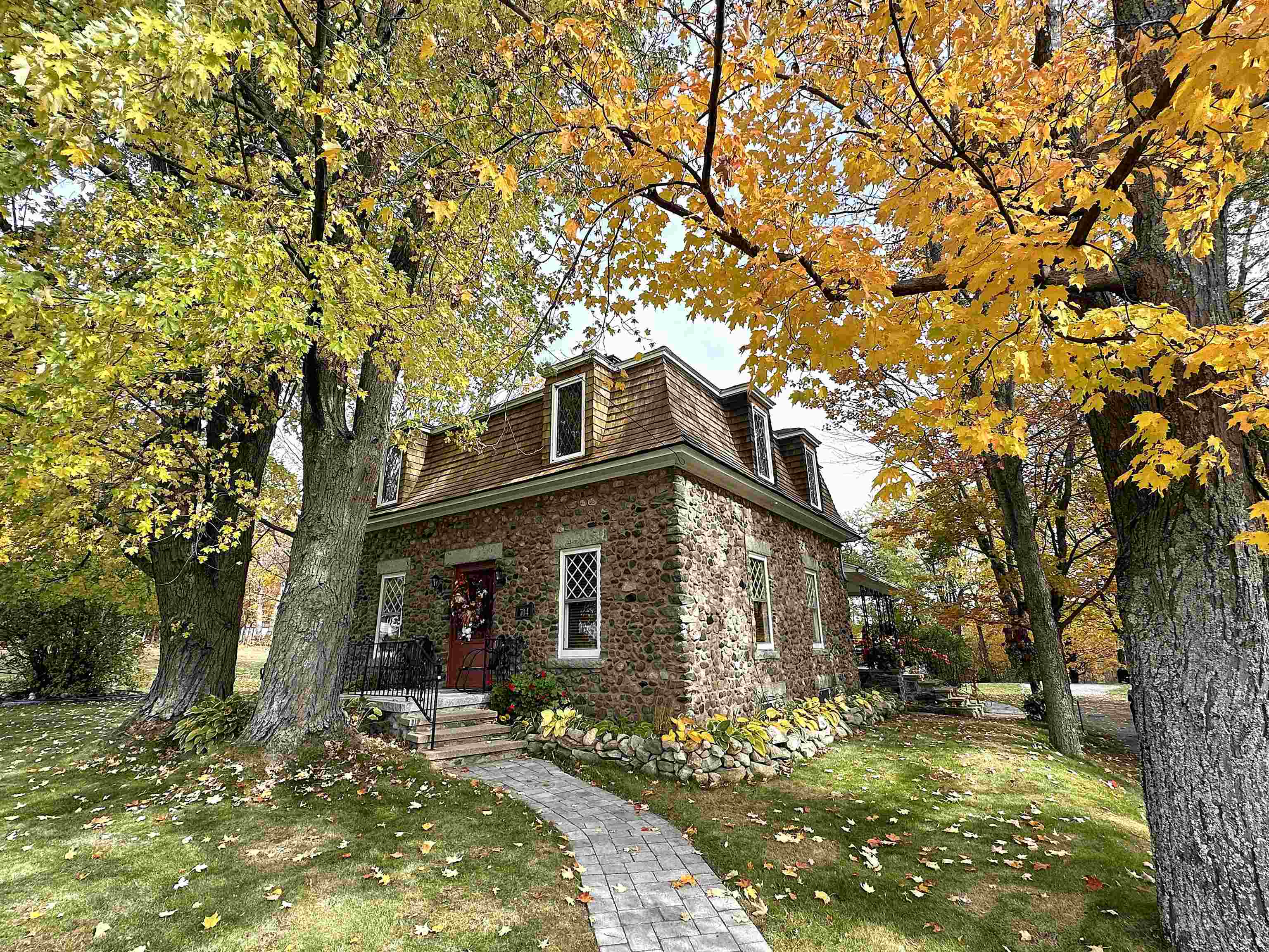 Beautiful FRENCH PROVINCIAL home in Berlins’ Estate, on an expansive level 1. 2 acre lot. This 125 yr old Riverstone 2 story home has been completely renovated to blend historic charm w/ modern comfort. Original leaded glass windows, ornate wood crafted interior staircase w/ intricately carved woodwork showcase the craftsmanship of a bygone era. 2' deep windowsills, 100 year old maple trees & scenic views create a picturesque setting. New high efficient propane FHW heating, mini-split a/c, extensive new wiring & electrical. 3 bdrms, 3 baths, laundry facility, cleaning closet & b basement offering storage & workbench. Detached single-car garage. Enjoy the quiet neighborhood, w/ wild game passing through. Nestled in a serene setting providing stunning views of the Presidential Mountains. Well landscaped and meticulously maintained.