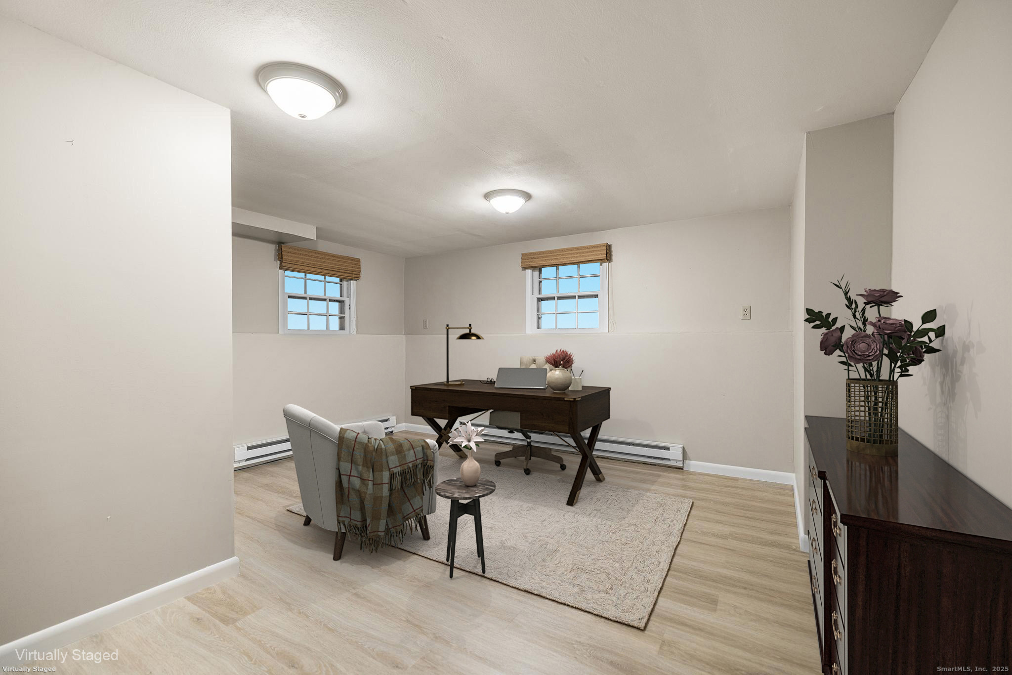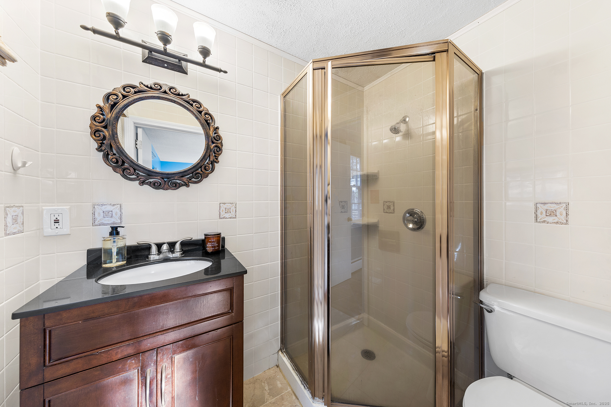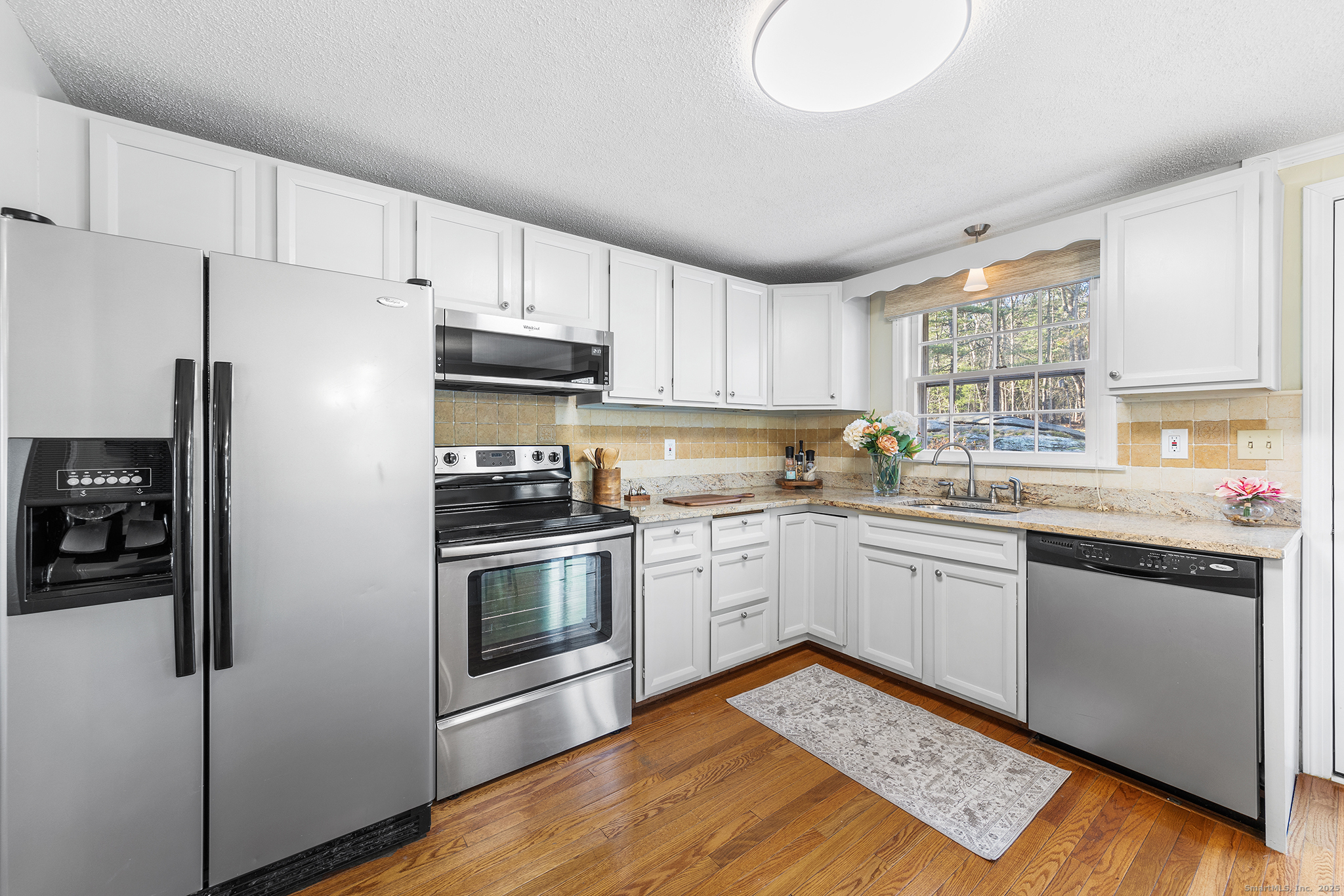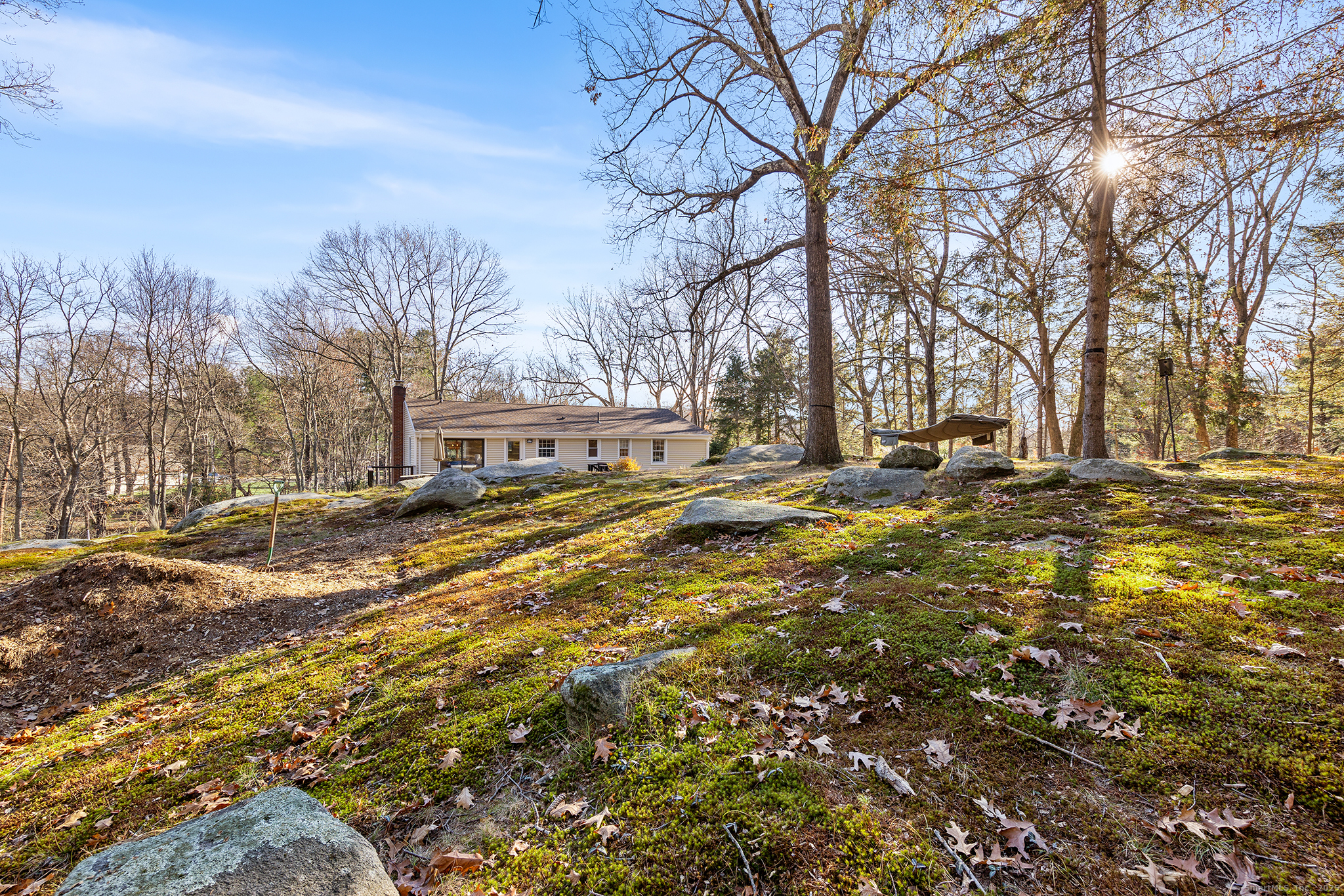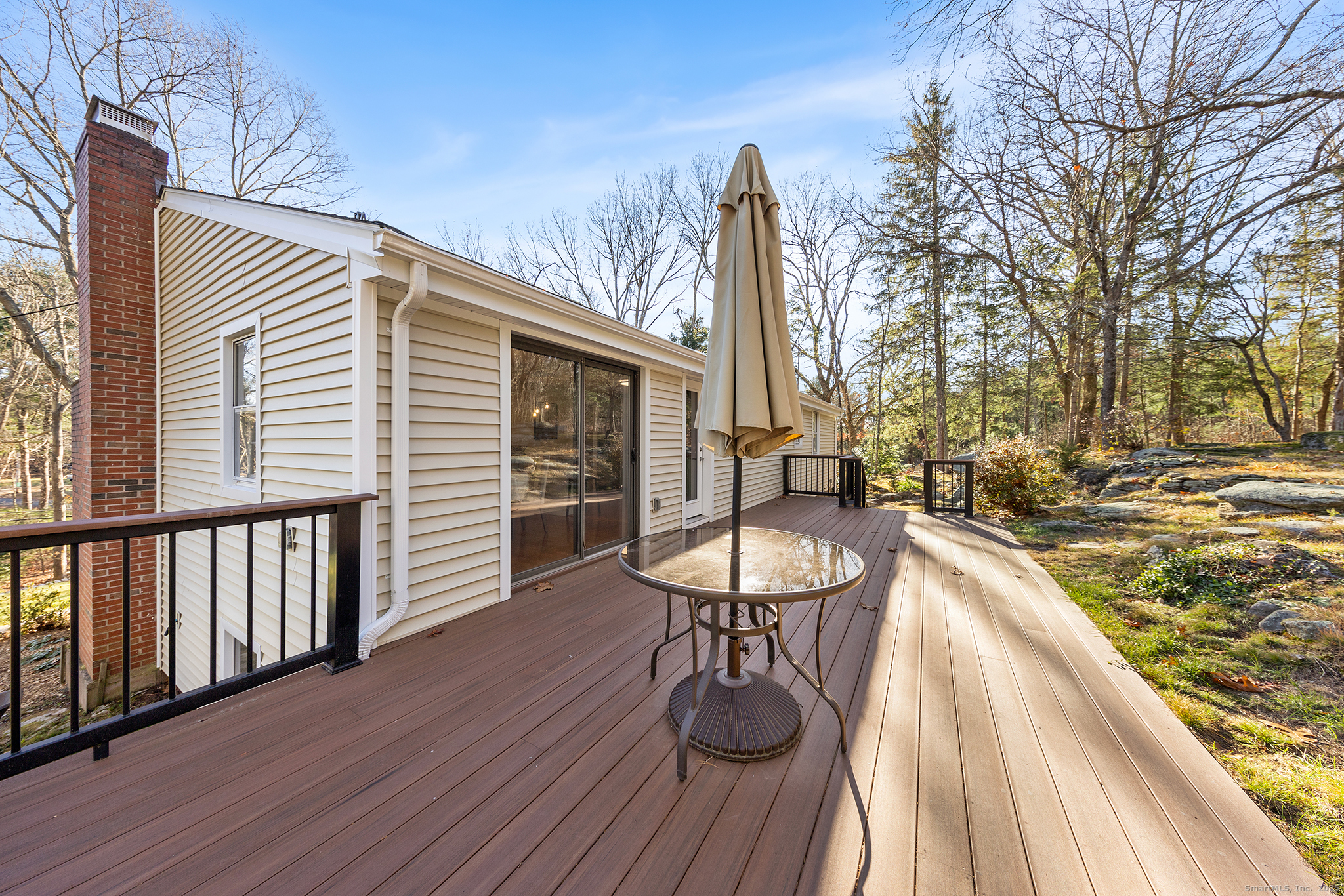 Serenity in South Glastonbury! Tucked away from the road in a gorgeous natural setting, stunning stone walls and mature landscaping deliver a quintessential New England welcome, hinting that something truly special awaits. This turnkey home boasts over 140k of recent improvements! Featuring a new roof, new siding, and crisp white trim, the handsome facade is matched perfectly by the immaculately maintained, fresh & airy interior, setting the stage for a seamless move-in! Gleaming hardwood floors and abundant natural light usher you in to explore the spacious, versatile floorplan. The generously-sized living room is framed by a lovely bay window and striking fireplace. Entertaining is a breeze with the cabinet-packed kitchen, featuring S/S appliances and a wonderful granite peninsula, opening to the charming dining area. Enjoy effortless indoor/outdoor living with the space flowing easily to the oversized composite deck overlooking a sprawling, natural yard-an ideal landscape for even the most adventurous 2 and 4-legged explorers! The primary on the main level includes a full ensuite bath, and two addl well-sized BRs share a large tiled hall bath. The lower level includes a home office or guest BR, along with a separate flex room-perfect for a playroom or media room! Handy mud area off the attached garage. Newer boiler, updated electrical & lighting. Comprehensive list of improvements available! Pack your bags & get ready to make the new year your BEST year in this spectacular List of improvements in MLS / see agent for more info. Ideal South Glastonbury location offering a pastoral feel while still ultra-convenient to shopping, dining, & commuting (1 traffic light stands between you and Rt 2!). Path through woods provides direct access to Woodledge Pool Club! Garage is configured as 1 bay, but is the size of a 2 car garage. Custom window treatments throughout.