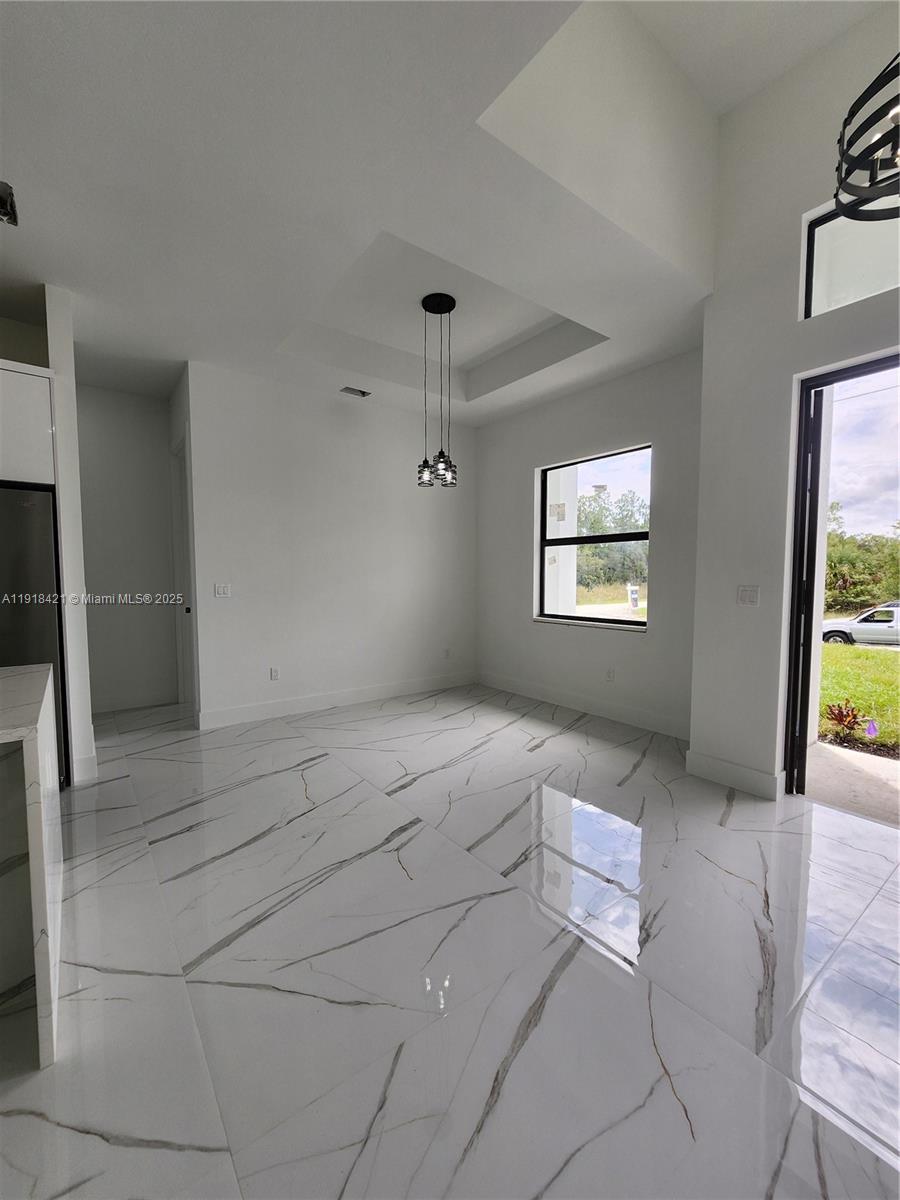 READY NEW CONSTRUCTION HOME 2025! 4 Bed / 2 baths - Discover this stunning brand-new construction home in the fast-growing community of Lehigh Acres! On an open floor plan with countless upgrades with 2371 Total Sqft. This single-family home offers luxury features throughout along with quality high-end construction-Double Door Entry, Open Concept Floor, Impact Windows and Doors, Cathedral Ceilings, Smoke Detectors, LED lighting, porcelain tile floors Throughout, Utility Sink. Kitchen Island with room for seating, Wood Cabinets with soft close doors and Quartz Countertops. Stainless Steel Kitchen Appliances. Spacious Master Suite with Cathedral Ceiling, Walk-In-Closets, Dual Sinks, Glass Door. Two Car Garage, Driveway in Pavers, sprinkles Large and Relaxing Lanai. Wonderful and quiet neighborhood, NO HOA fees! This Property is ready to live and enjoy now!