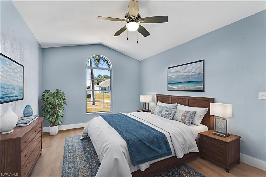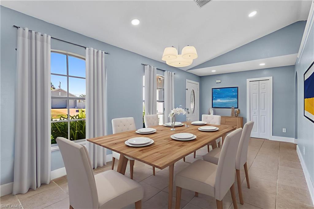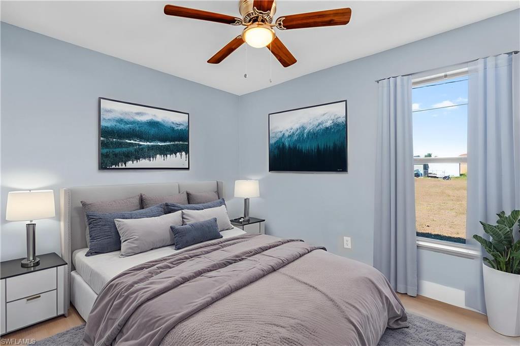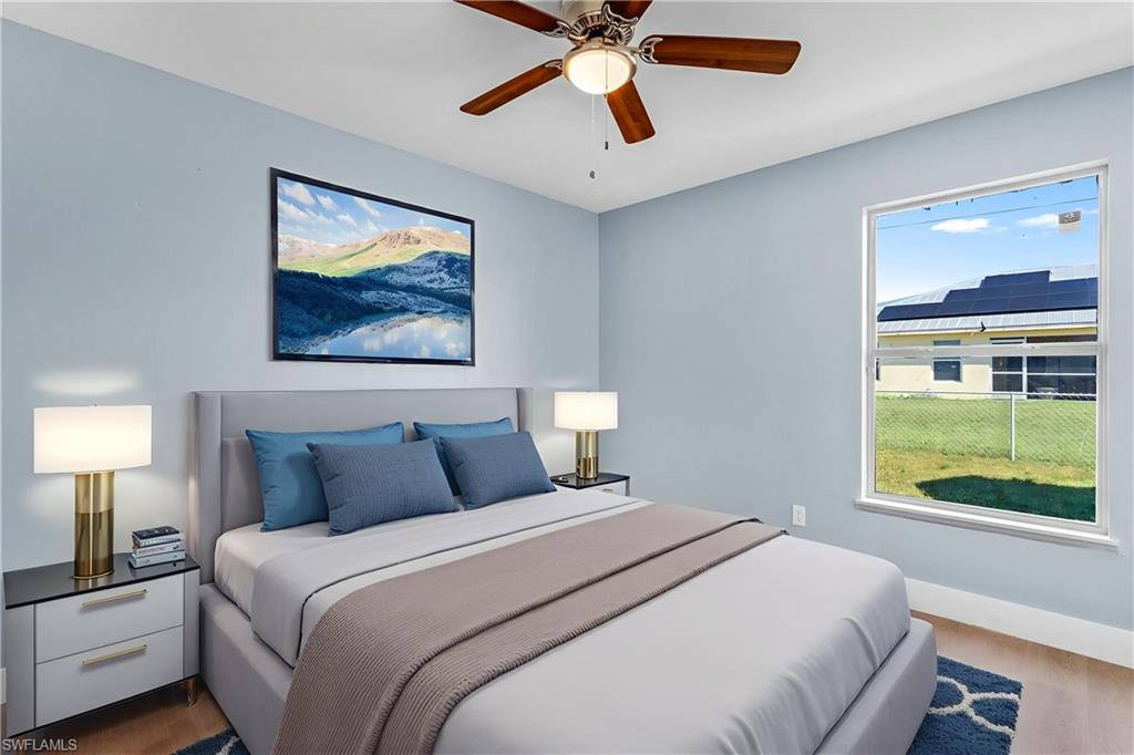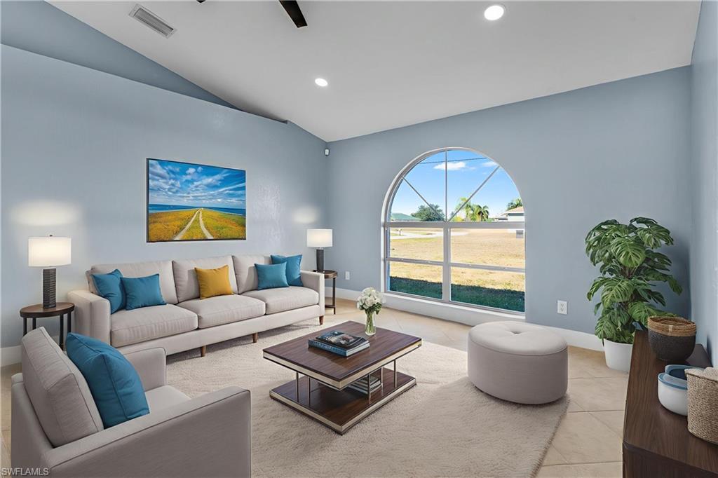 SPACIOUS SPLIT-FLOOR PLAN HOME WITH NEW 2024 ROOF & A/C, FULLY FENCED YARD, AND PRIME CAPE CORAL LOCATION! This well-designed 4-bedroom home features a true split-floor plan, with the owner’s suite situated privately on one side and three additional bedrooms on the opposite end. The guest bathroom also offers convenient access to the backyard—perfect for entertaining or future pool use. Recent upgrades include a NEW 2024 roof, NEW 2024 A/C, fresh interior and exterior paint, updated LED lighting, and newer appliances including the microwave, range, and ceiling fans. Oversized windows throughout the home fill the spacious living areas with abundant natural light, complemented by separate living and dining rooms plus a large family room that provides excellent flexibility for everyday living. The property sits on a generous . 34-acre lot—larger than most in the area—and features a fully fenced backyard with a covered patio and storage shed, offering a move-in-ready outdoor space with plenty of room to add a pool. Built in 1993 with durable CBS construction, this home is located in a desirable and growing area of Cape Coral, close to schools, parks, shopping, restaurants, and major roadways, making it an ideal option for families, investors, or anyone seeking comfort, space, and long-term value in Southwest Florida. THIS PROPERTY QUALIFIES FOR A 1% LENDER INCENTIVE IF USING PREFERRED LENDER, INQUIRE FOR MORE DETAILS** Renderings that showcase furniture have been virtually staged