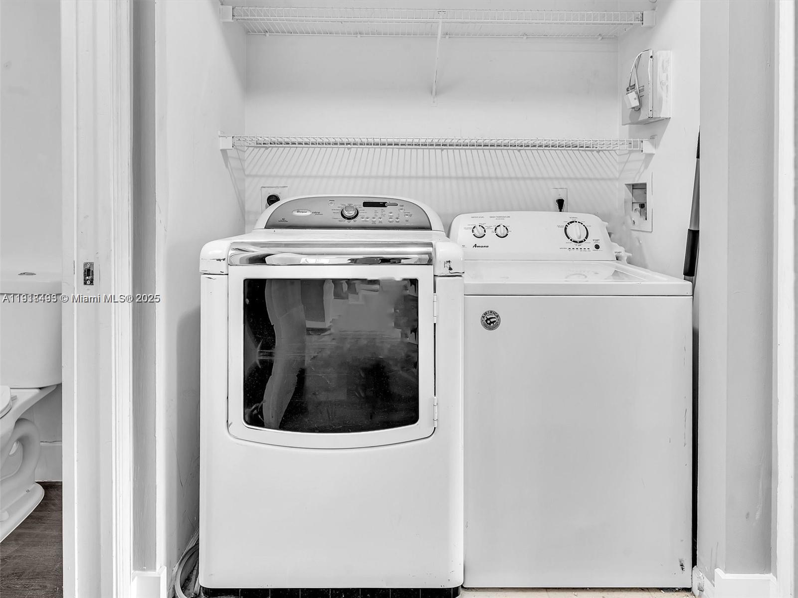 Enjoy modern, low-maintenance living in this beautifully updated 2-bed, 2-bath top-floor condo in the gated Enclave at Miramar. This bright and spacious home features high ceilings, new laminate flooring, fresh neutral paint, and a private balcony with peaceful views. The split-bedroom layout offers excellent privacy, and the primary suite includes a walk-in closet and full-size washer & dryer for added convenience.