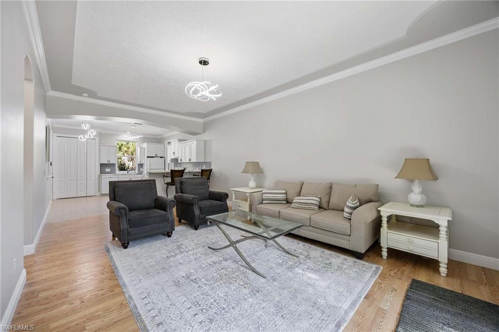 The main home features 3, 721 sq. ft. of living area with an open, light-filled layout. Highlights include an expansive chef’s kitchen with waterfall Quartz counters, designer backsplash, premium appliances including a Viking gas range, GE Profile wall oven, and generous cabinetry. A wet bar with wine fridge, formal dining room, large pantry, built-in desk space, and a spacious family room with fireplace create an ideal environment for everyday living and entertaining. The primary suite offers two walk-in closets and direct lanai access. Additional features include updated lighting, plumbing, electrical, luxury vinyl flooring throughout, a large laundry room with sink, and a split floor plan providing privacy for guest bedrooms—each with access to a private side lanai.