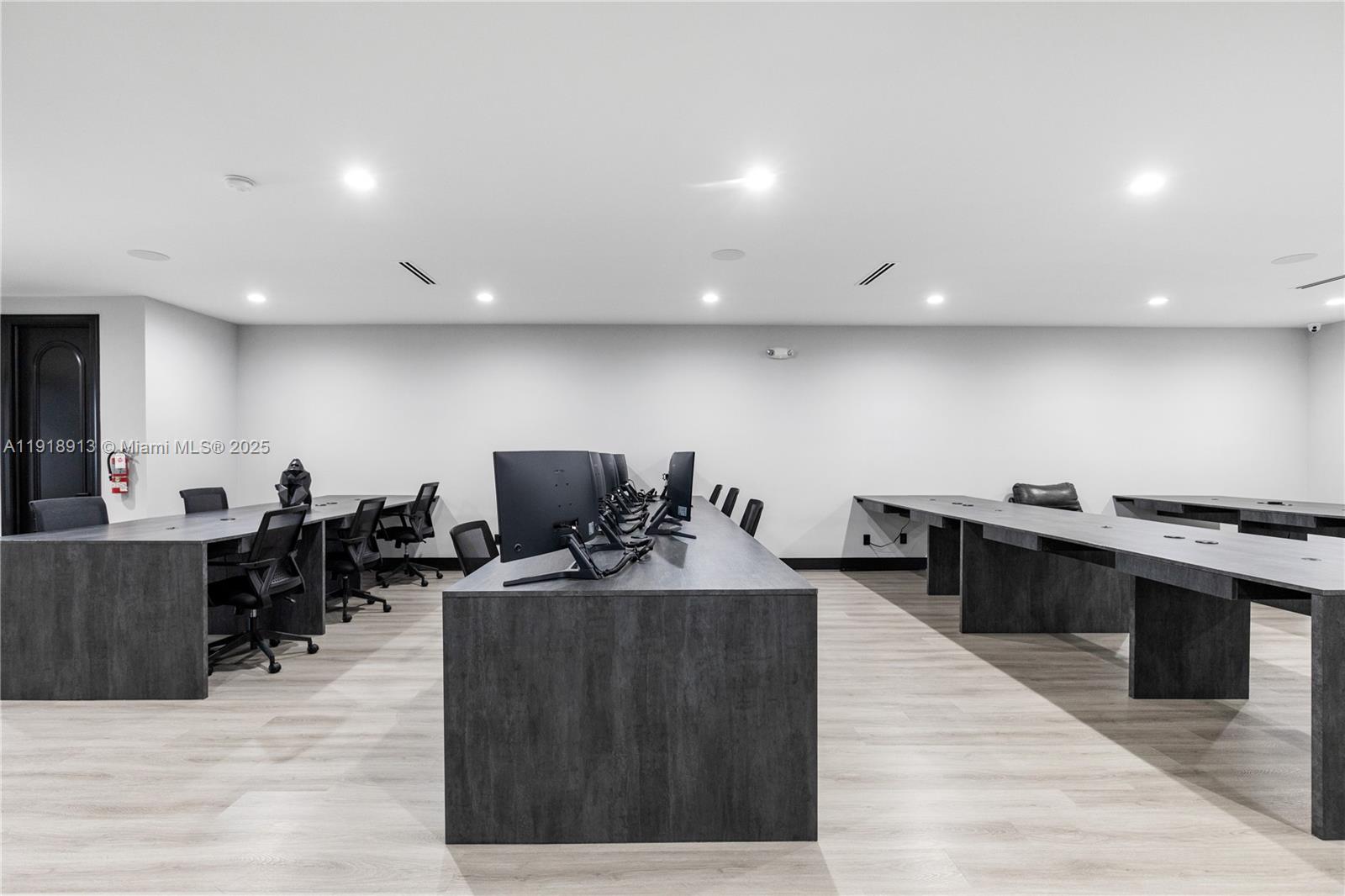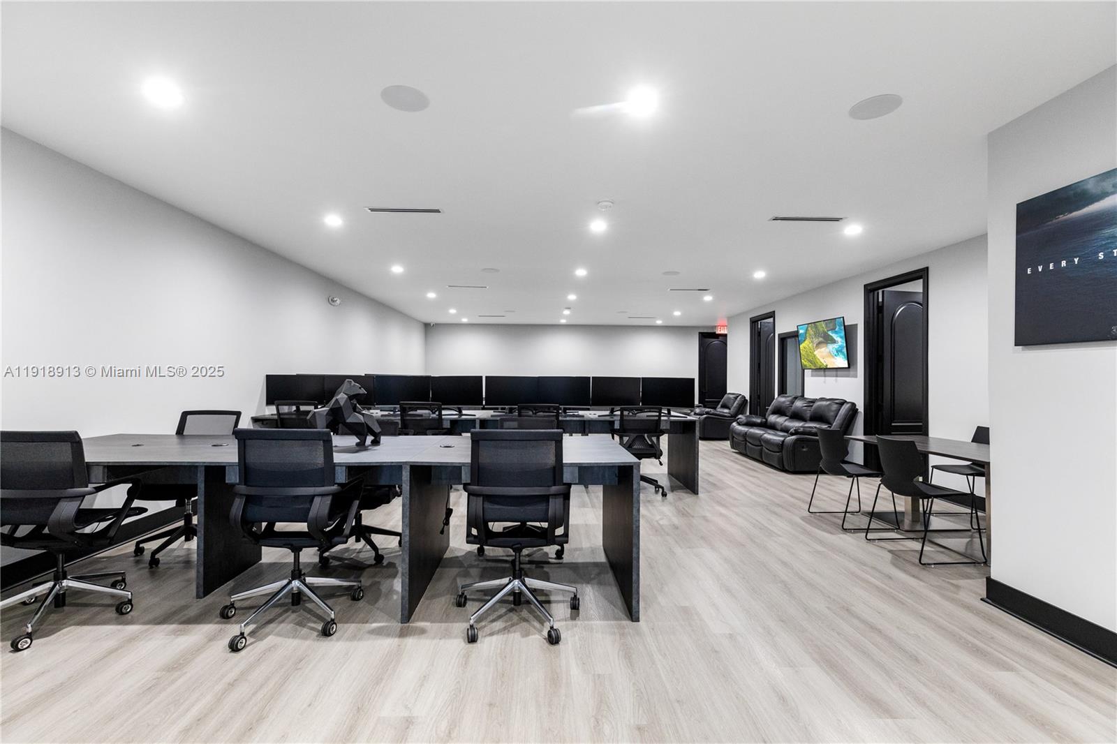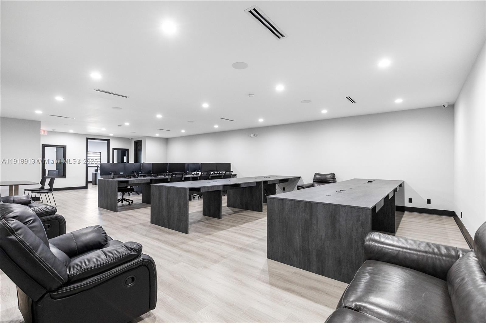 Step into a beautifully remodeled, modern professional flex space located on the corner. Designed with productivity and presentation in mind, this build-out features luxury finishes throughout, secure key fob entries, smart features/lighting, cameras installed throughout, ceiling speakers/sound system, custom walls with LED lighting, and ample on-site parking.